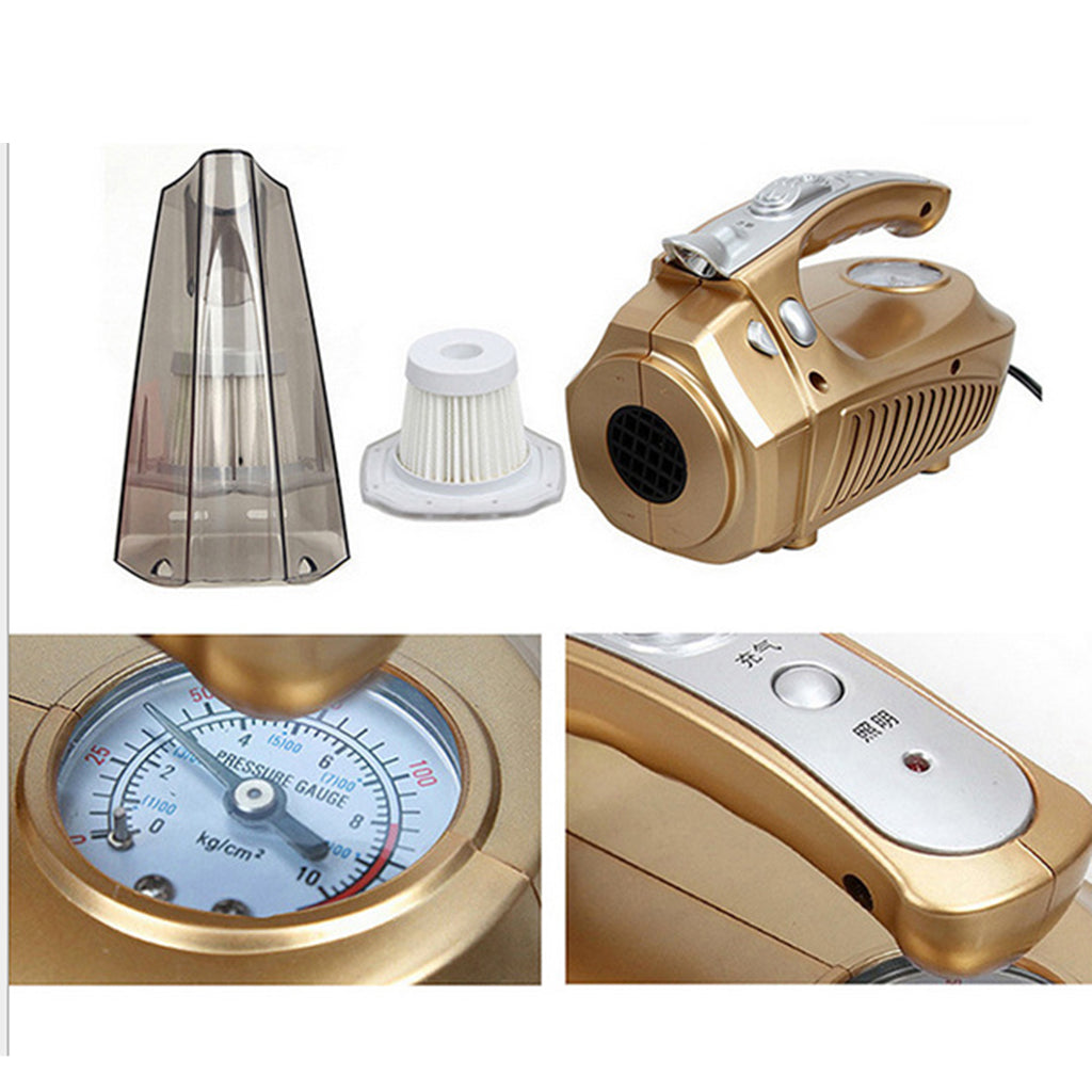 Powerful Wet/Dry 12V 100W Car Vacuum; Tire Inflator helps you inflate tires anytime anyhere