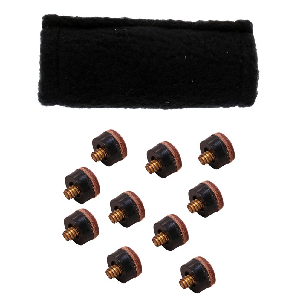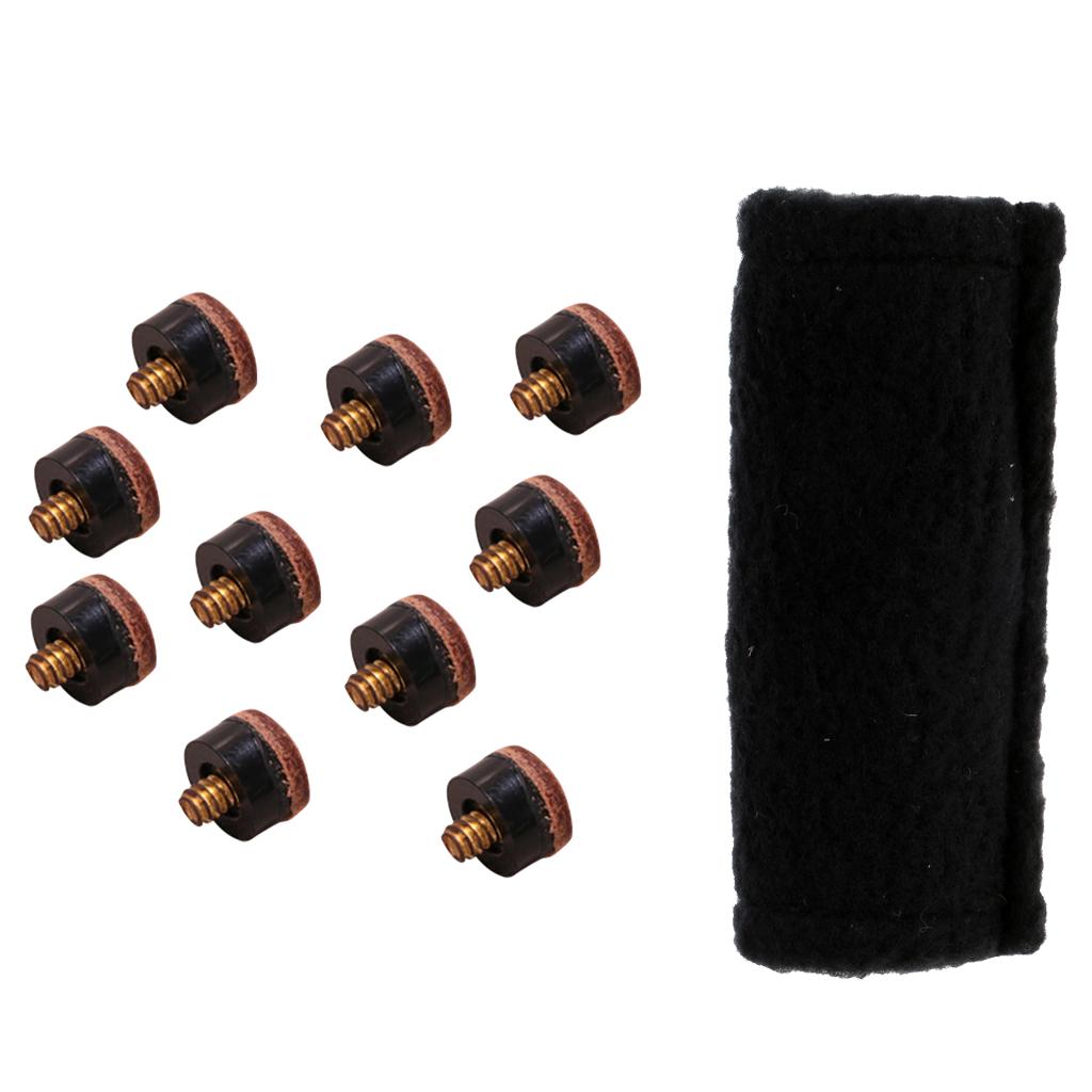10 Pieces 12mm screw-on pool cue tips with a pool cue cleaner