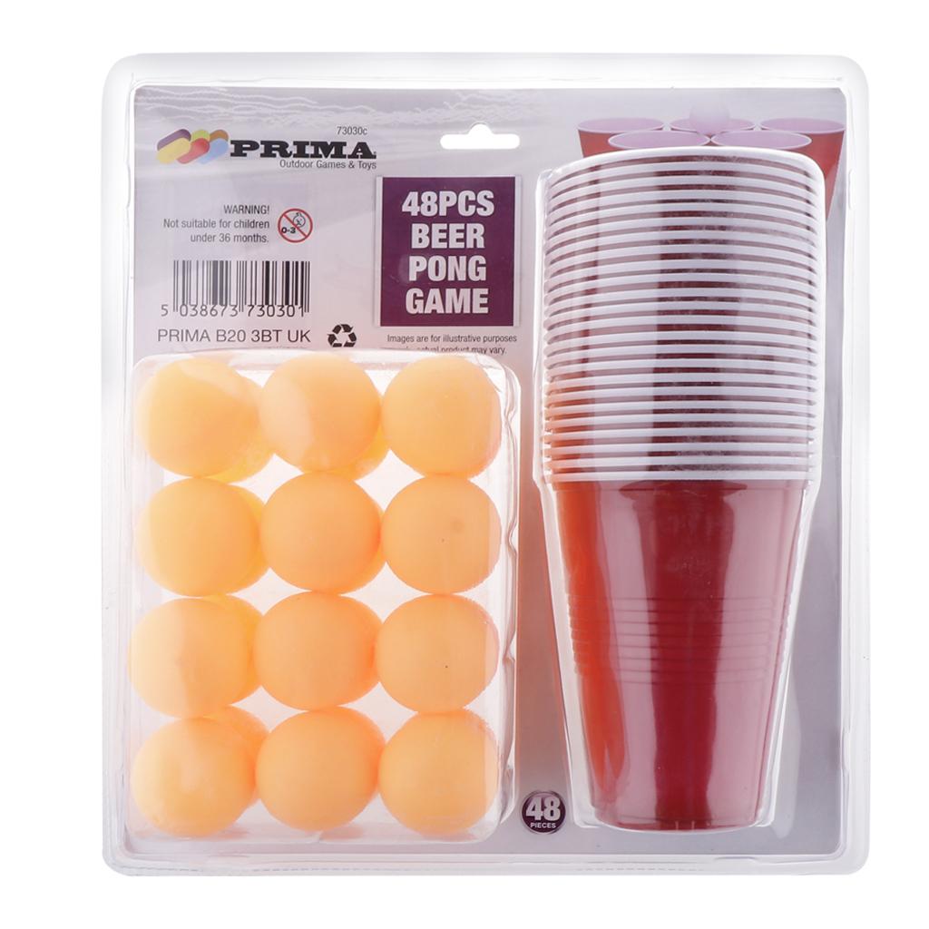 Set contains 24 red cups and 24 yellow ping pong balls.