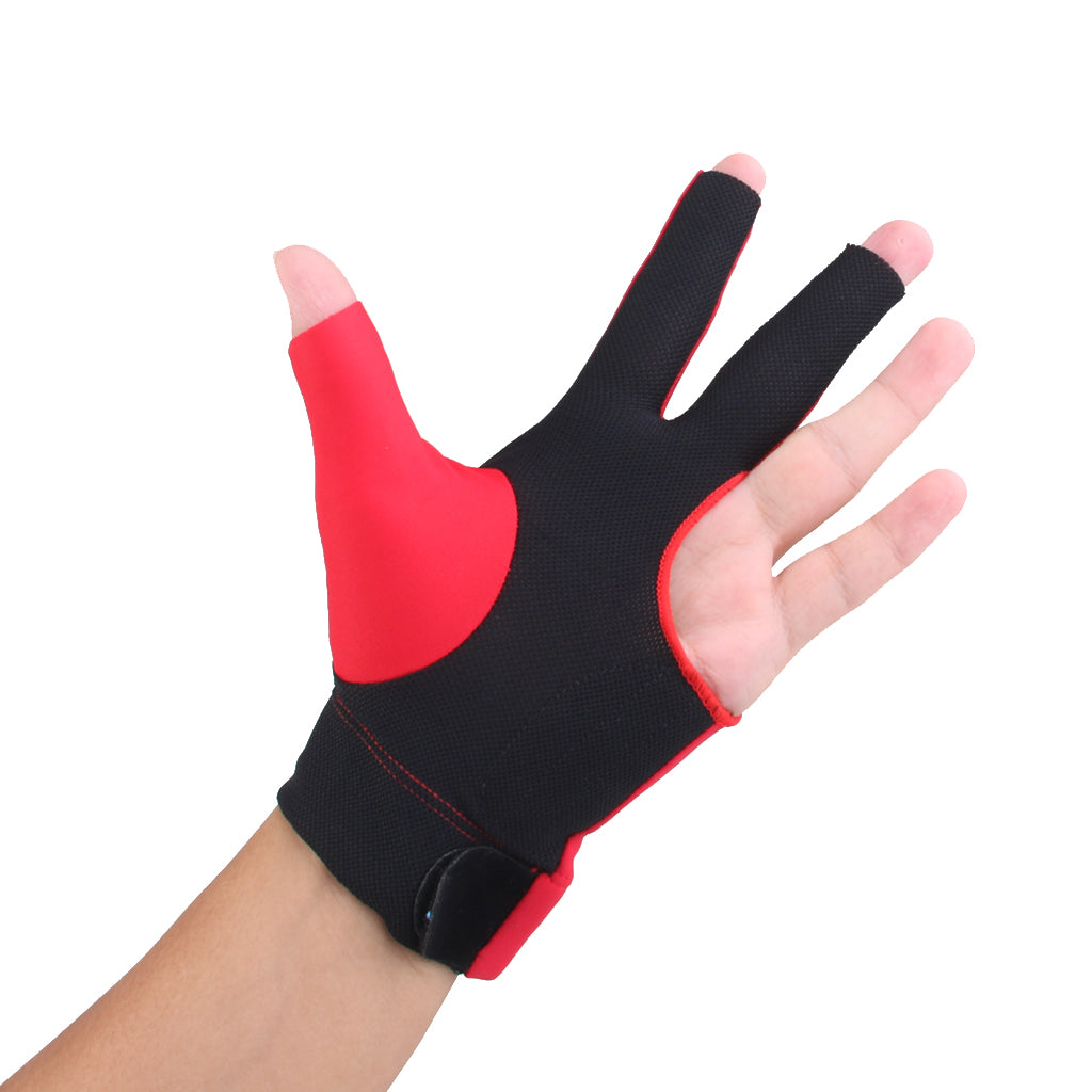 Professional Billiards Left Hand 3 Fingers Stretchable Gloves Snooker Pool Cue Shooters Glove Red