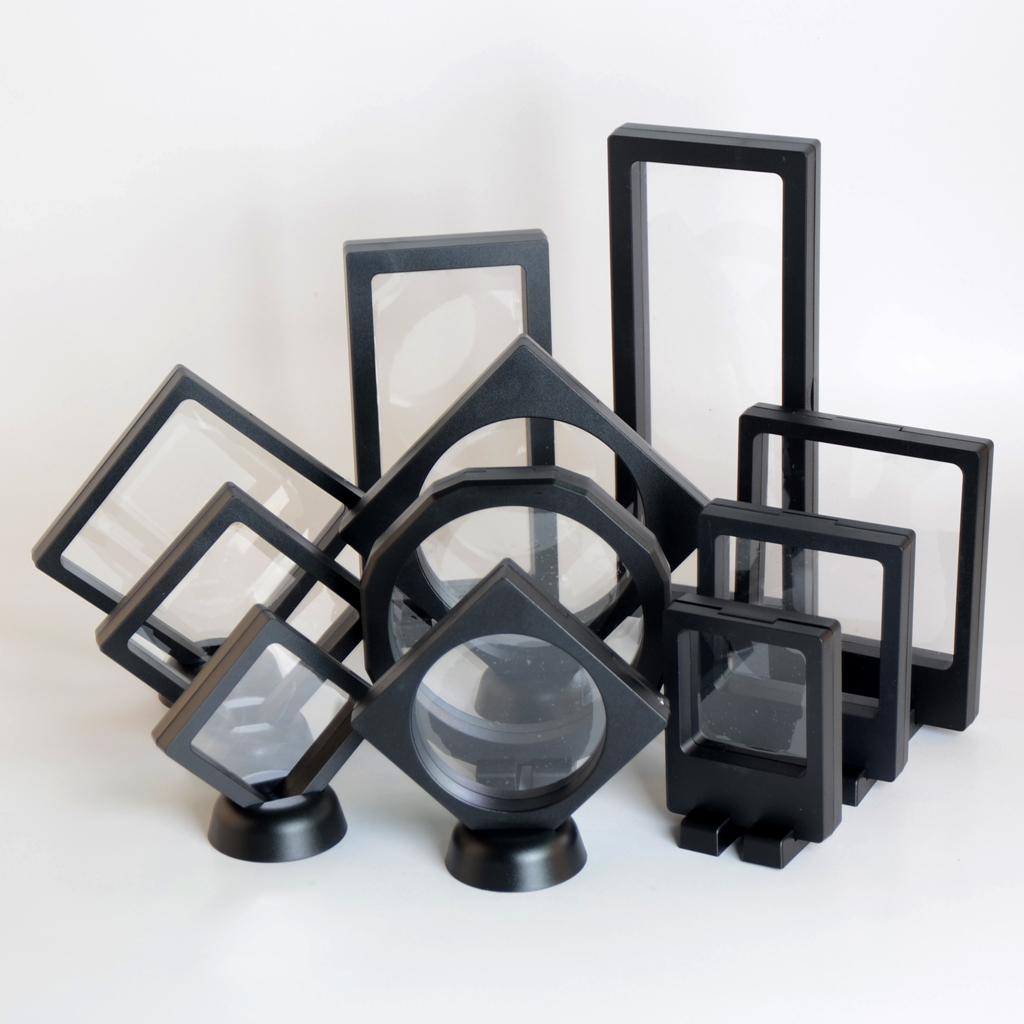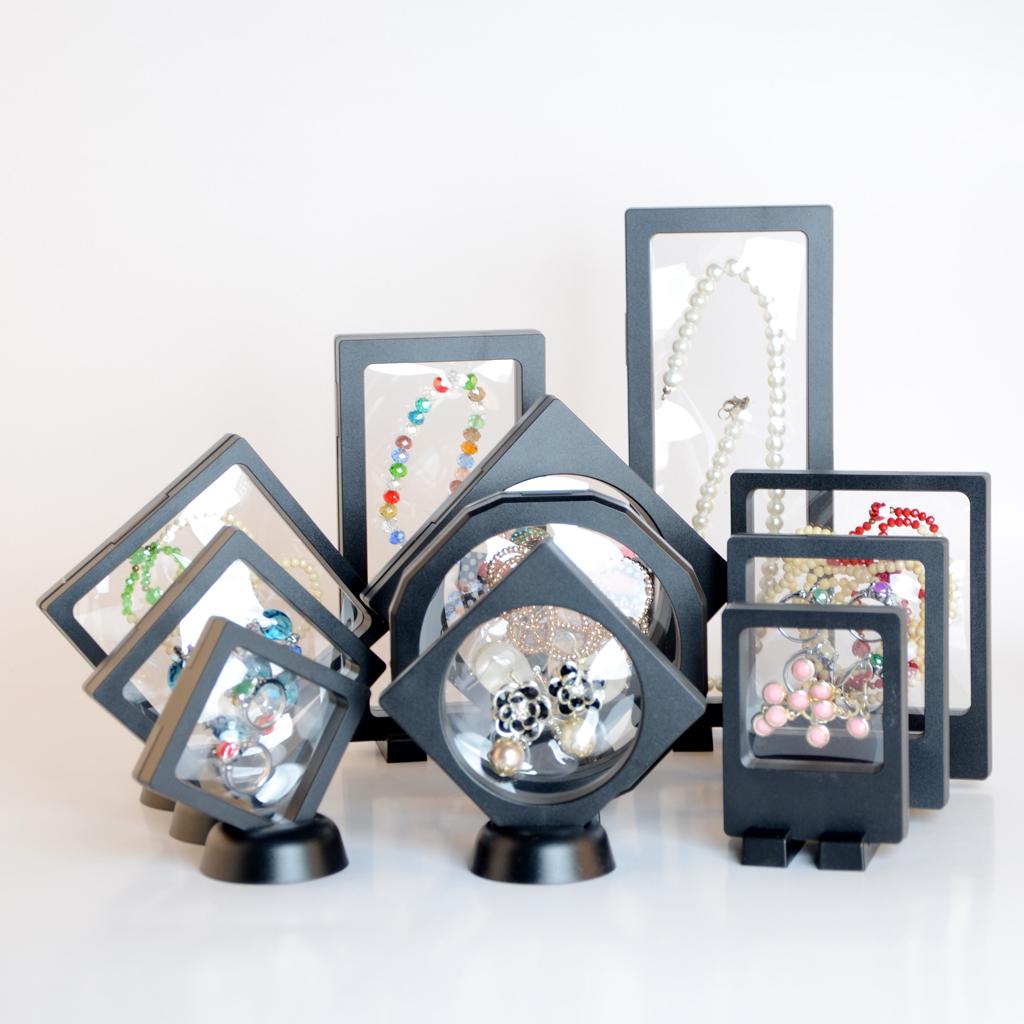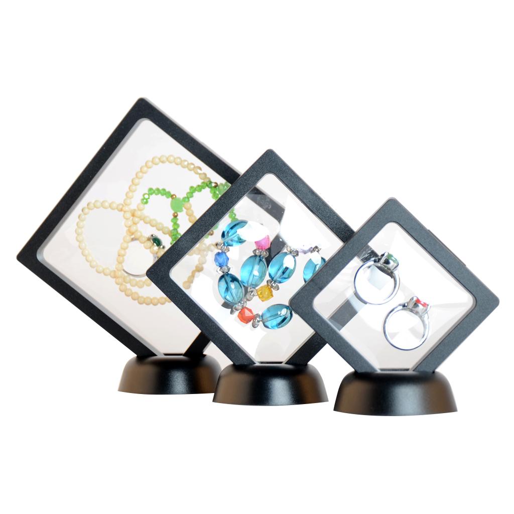 3 Pieces S M L (Each size One Piece )Transparent Levitate Jewelry Display Box Show Rack Packing Case, with its unique and Transparent Levitate design, can give an overall display to your jewelry, eg. necklace, earrings, bracelets, etc. and any other precious items. Specimens of rare and precious cultural relics.