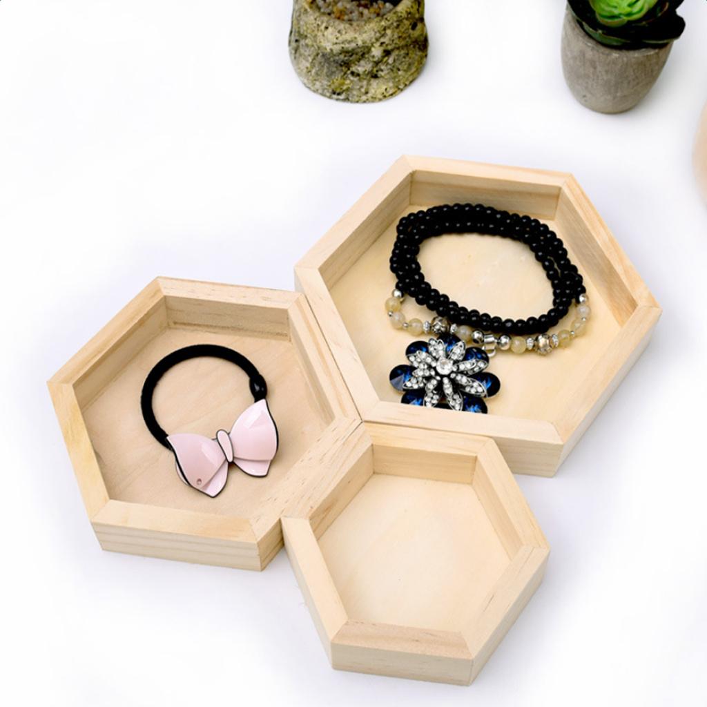 Natural unpainted solid wood jewelry display holder tray showcase, also for DIY painting, staining handmde crafts;Specification: