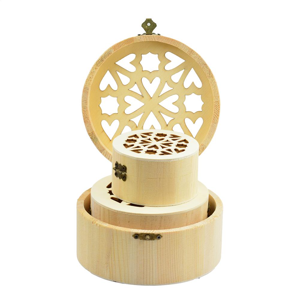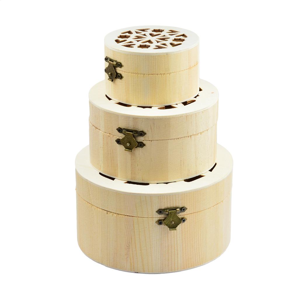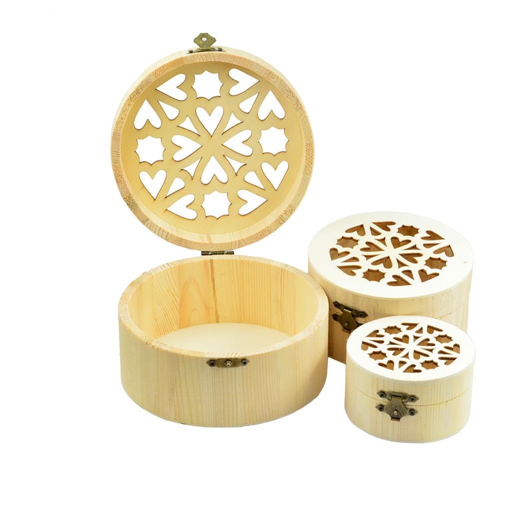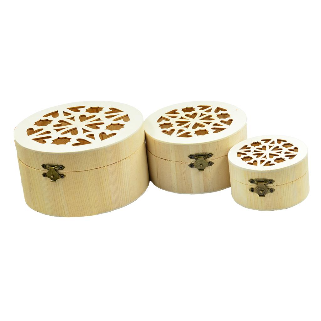 3Pcs Flower And Flower Hollow Pattern Cap Plain Wood Jewelry Case Storage Box Memorial Keepsake Box Gift for Women Men
