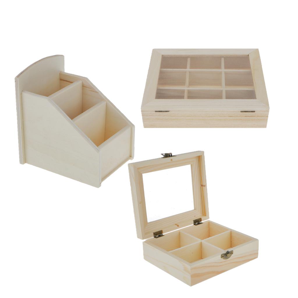 3Pcs Unfinished Plain Wooden Jewelry Box Case Handmade Unpainted Wood Craft