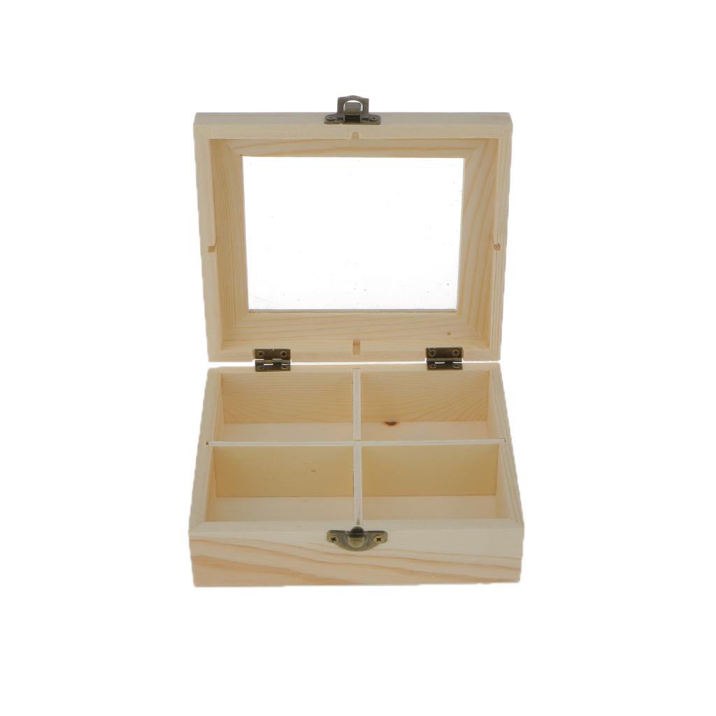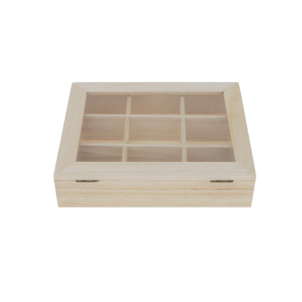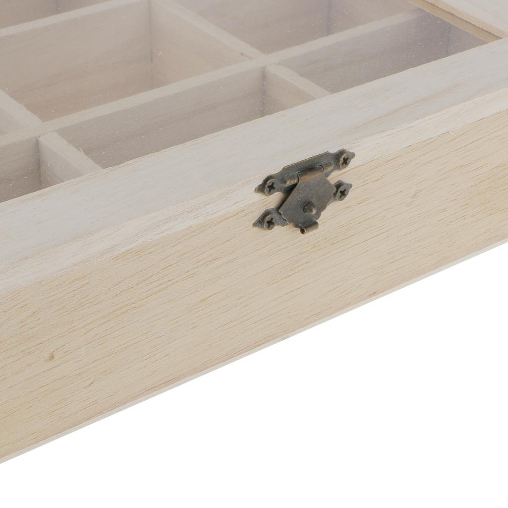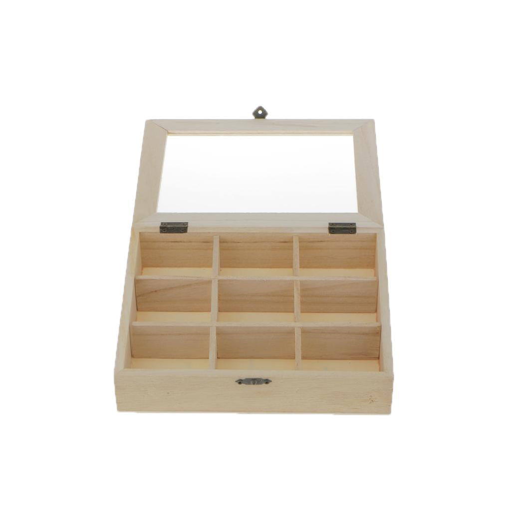 Plain unfinished wooden jewellery case / storage box 9/4 grids with glass cover and 3 layers storage box