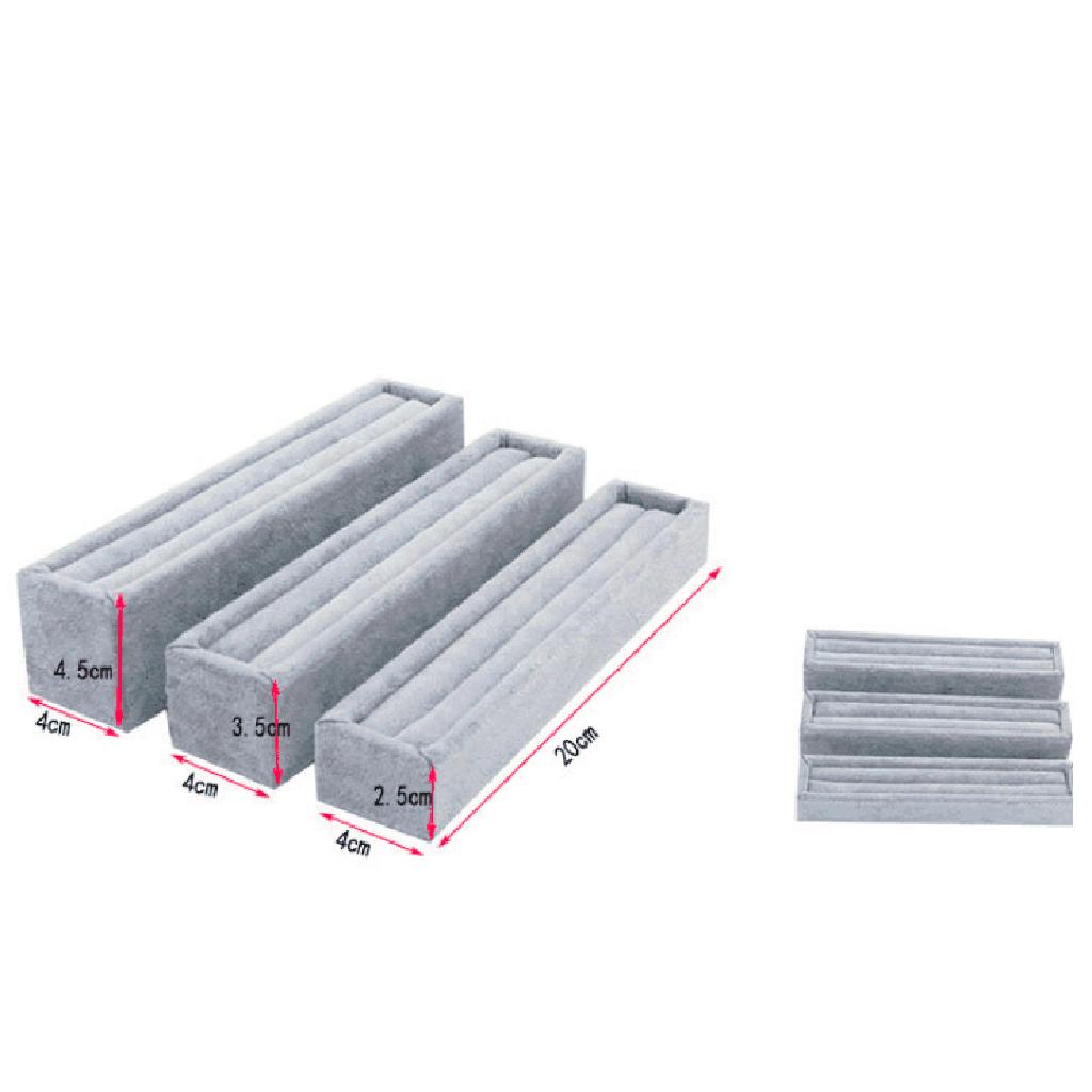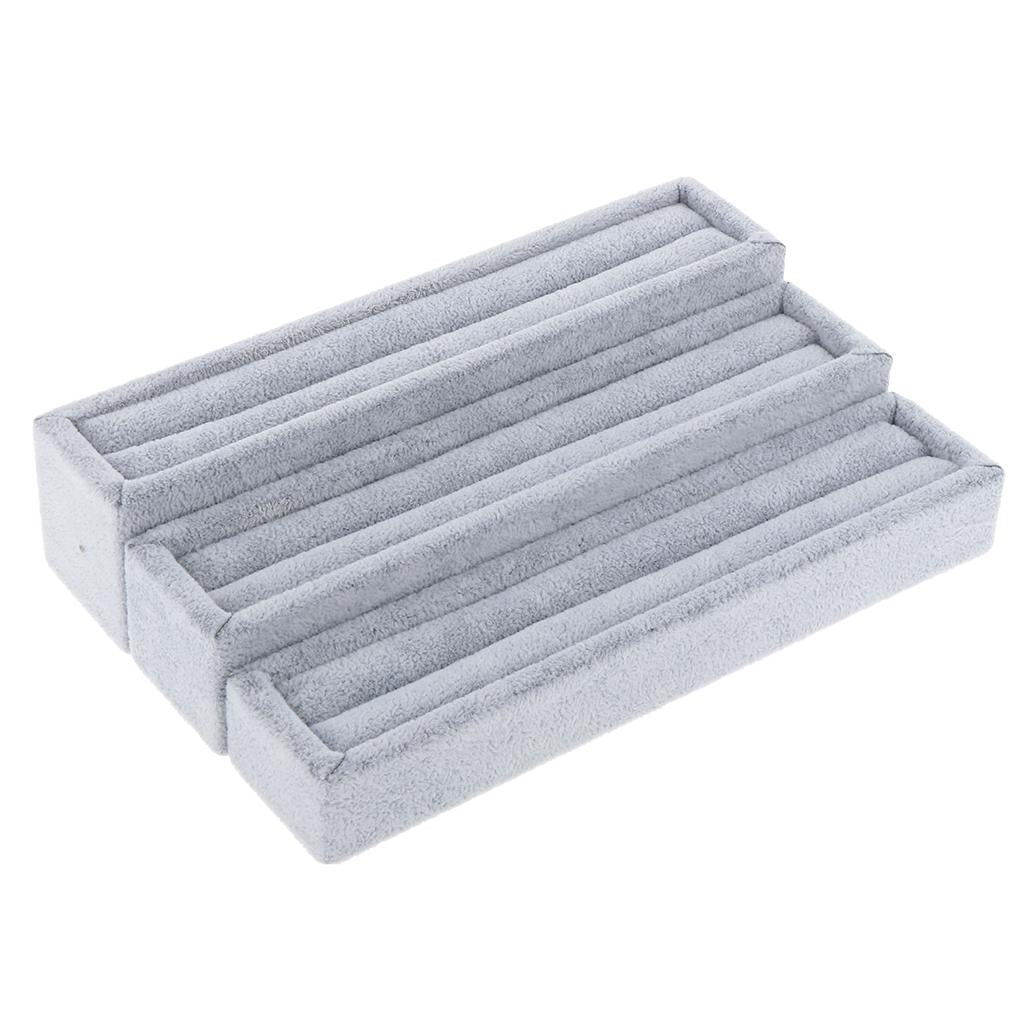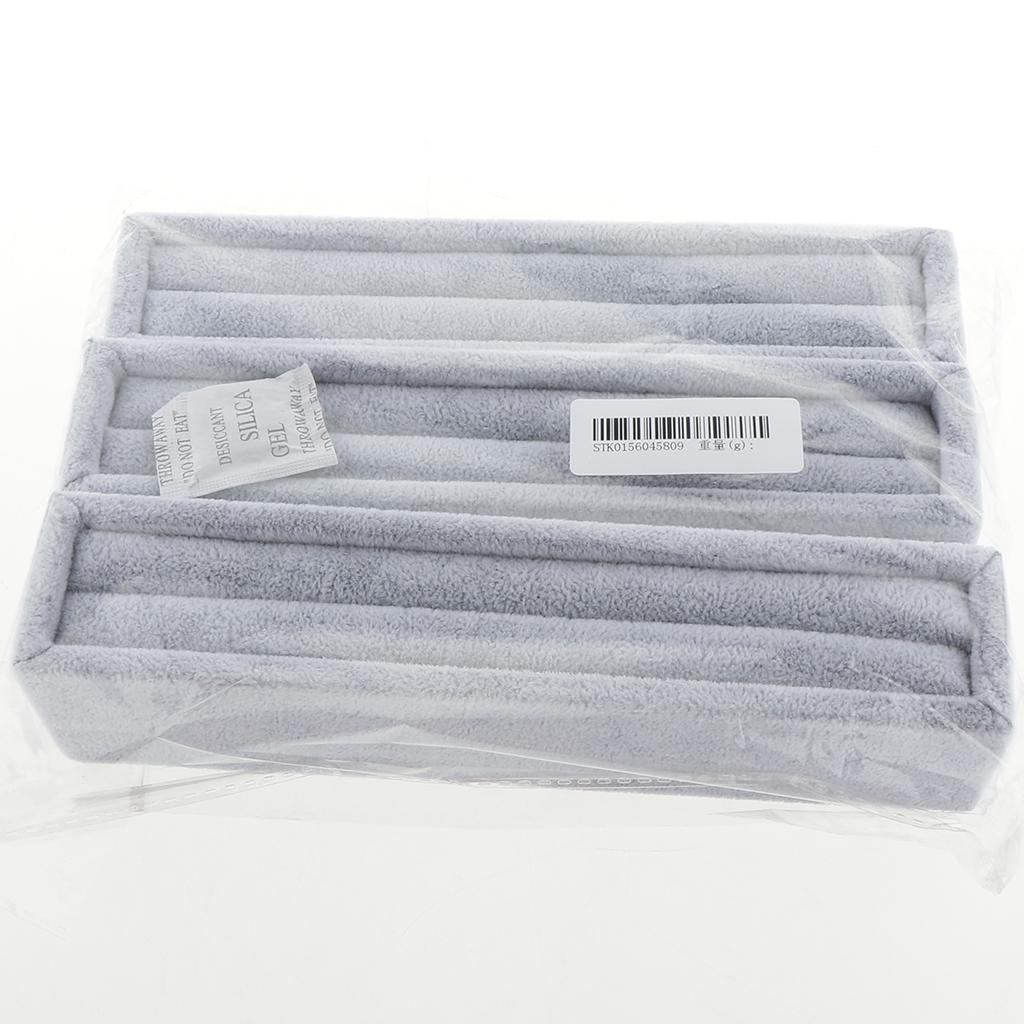 3pcs Velvet Ring Trays Showcase Display Jewelry Organizer Holder Gray