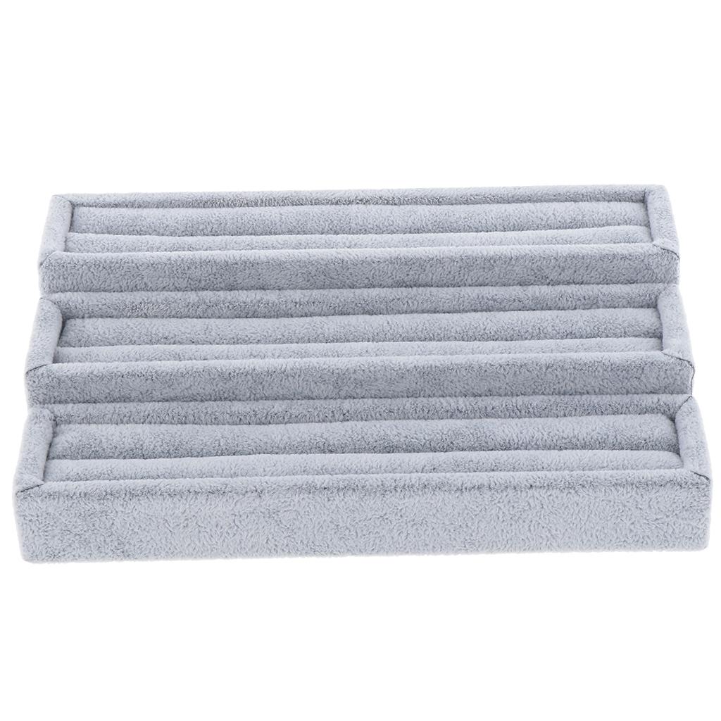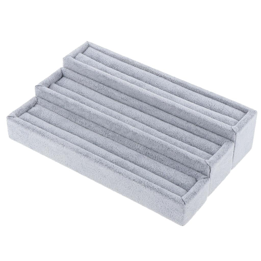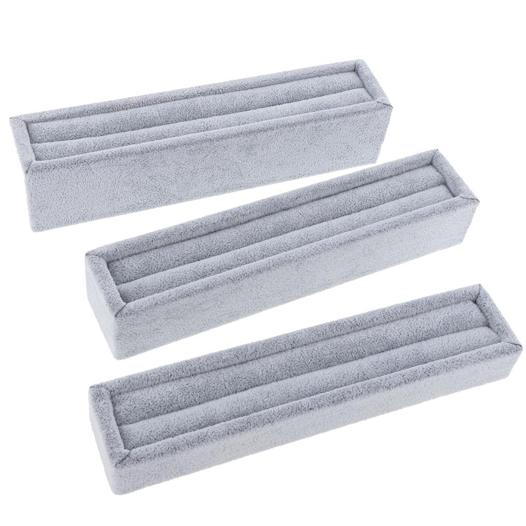 3pcs Velvet Ring Trays Showcase Display Jewelry Organizer Holder Gray