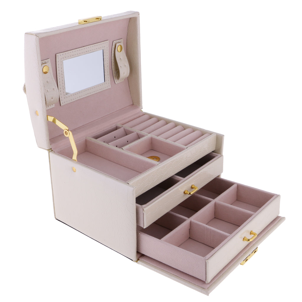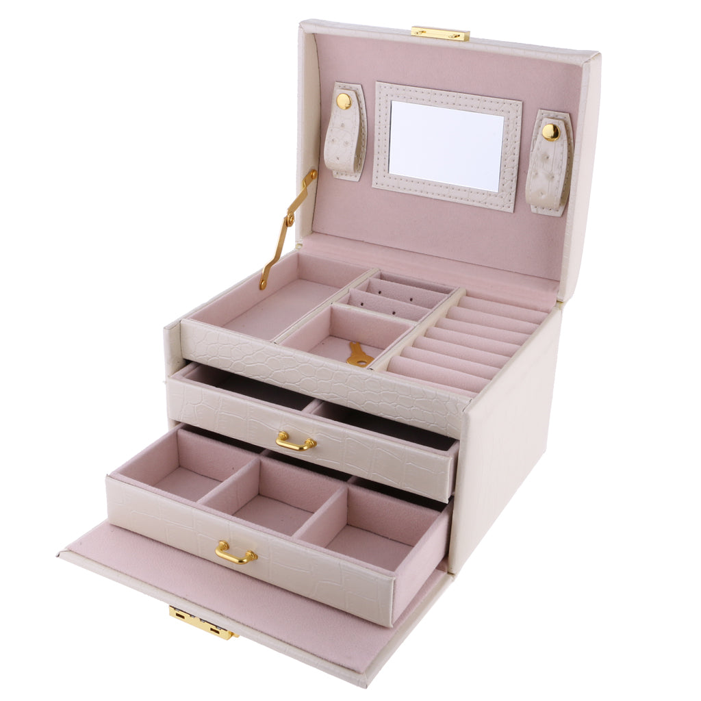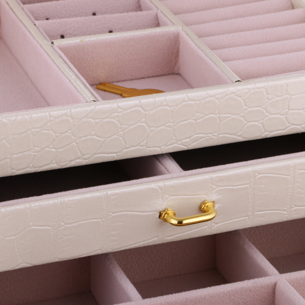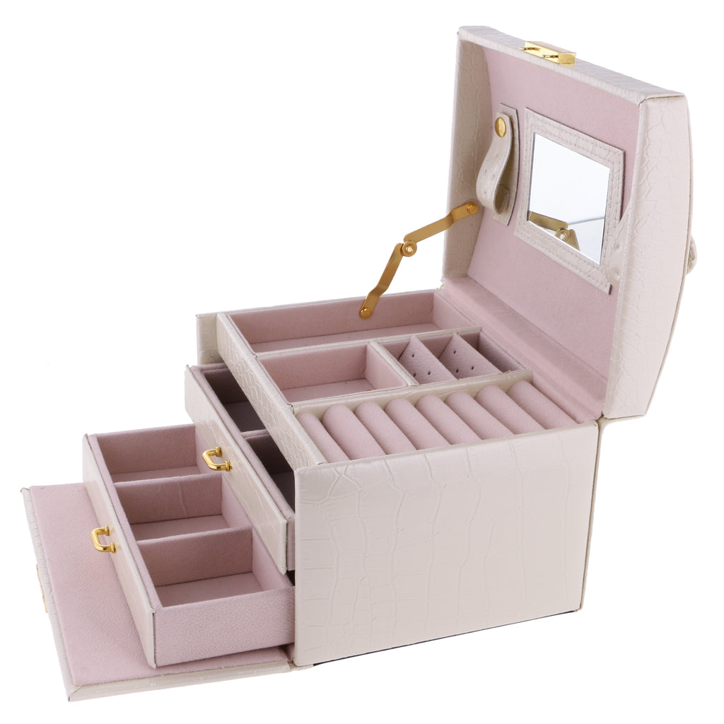 Three Layers jewellery storage box unit is crafted of soft artifical leather and a velvet lined interior