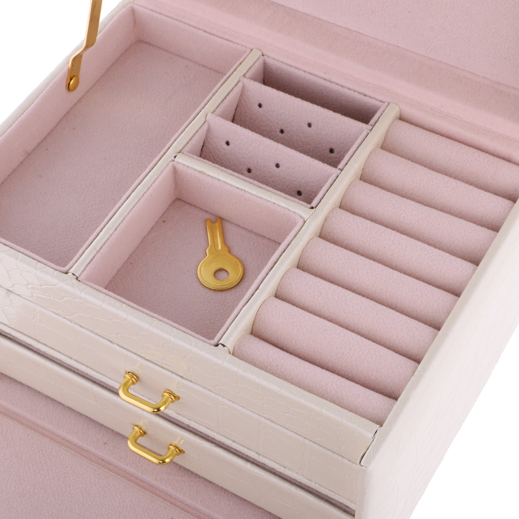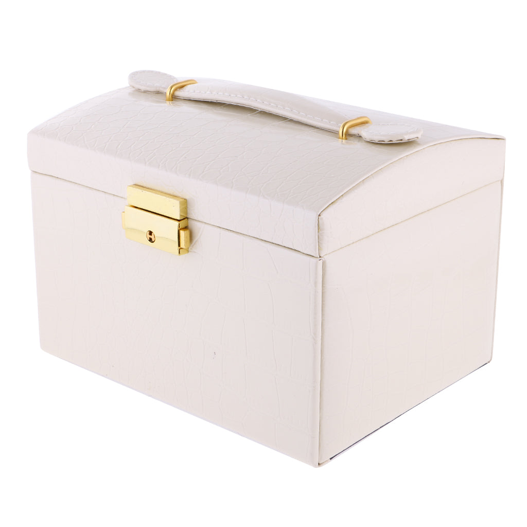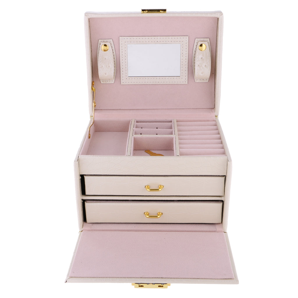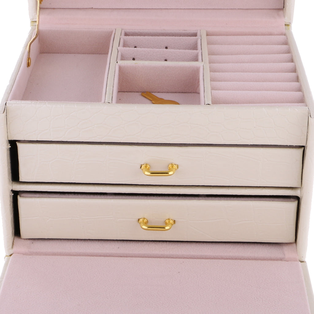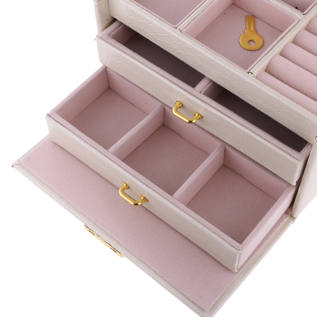 Three Layers jewellery storage box unit is crafted of soft artifical leather and a velvet lined interior