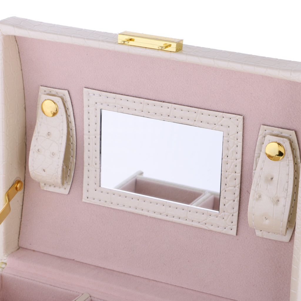 The case comes with a lock and key,a mirror on top lid