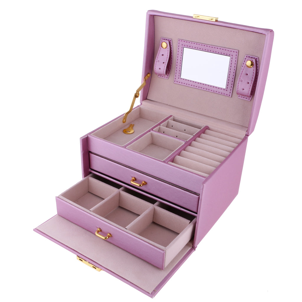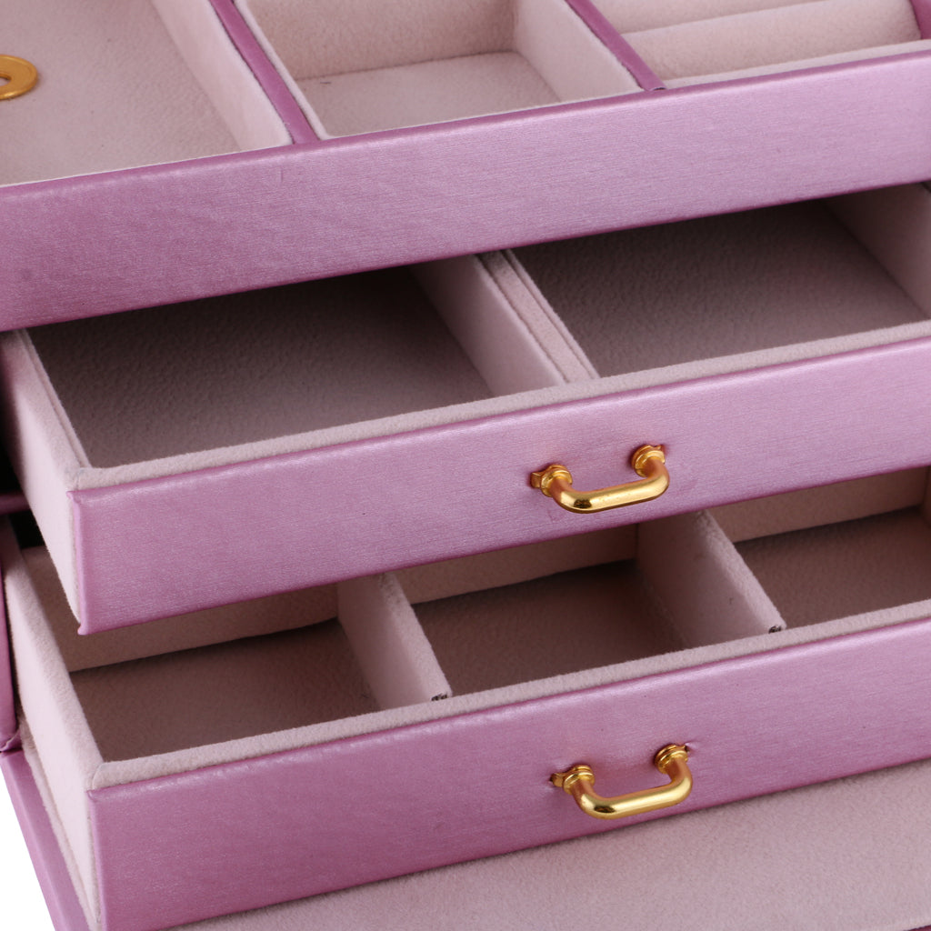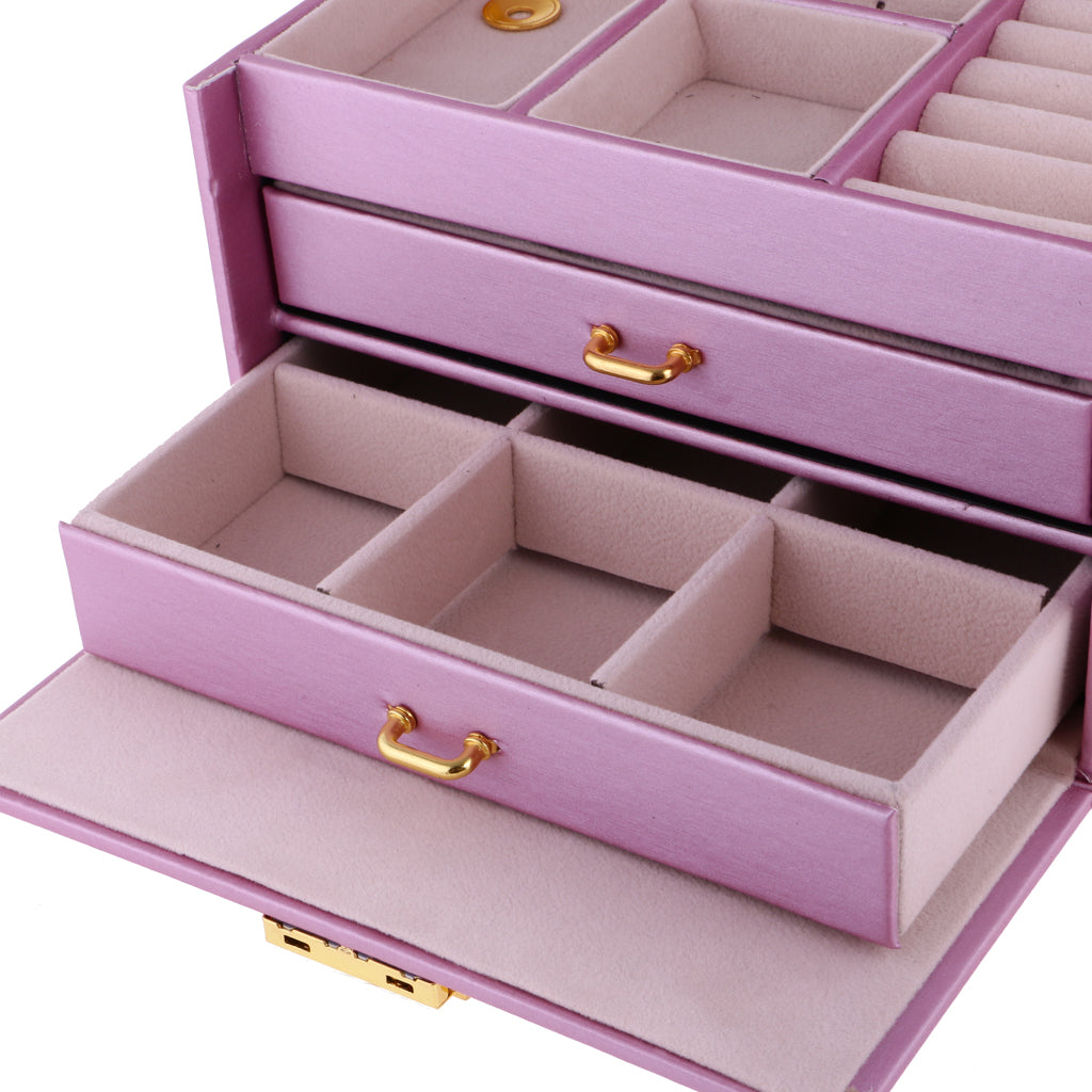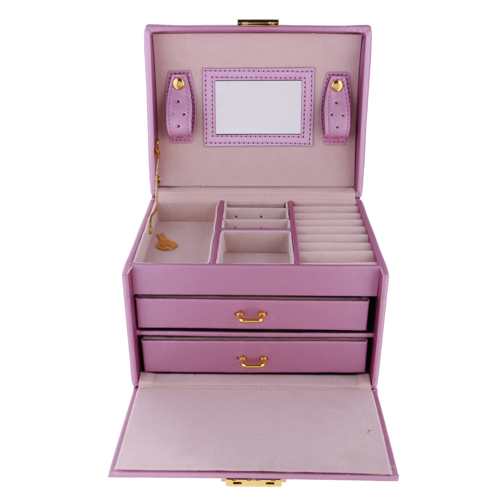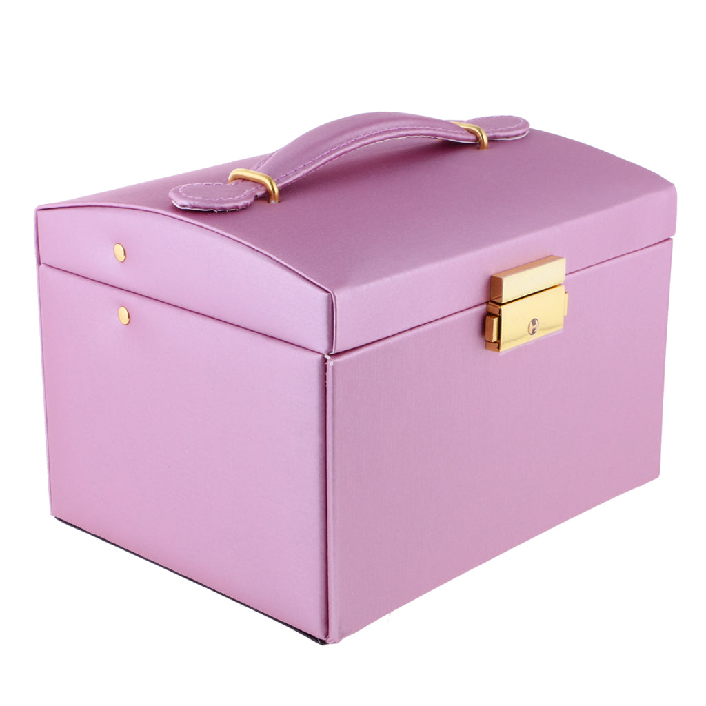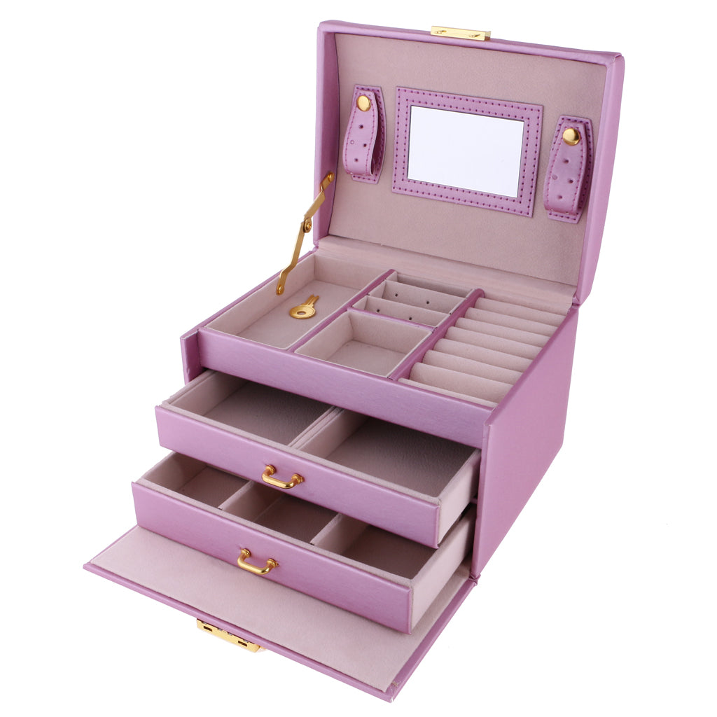 Artifical Leather Jewellery Box Beauty Case Holder Storage Organizer Purple