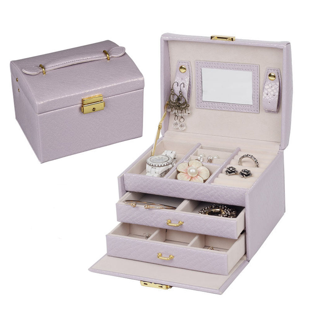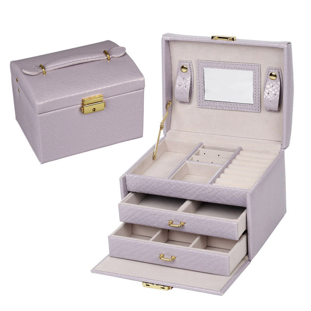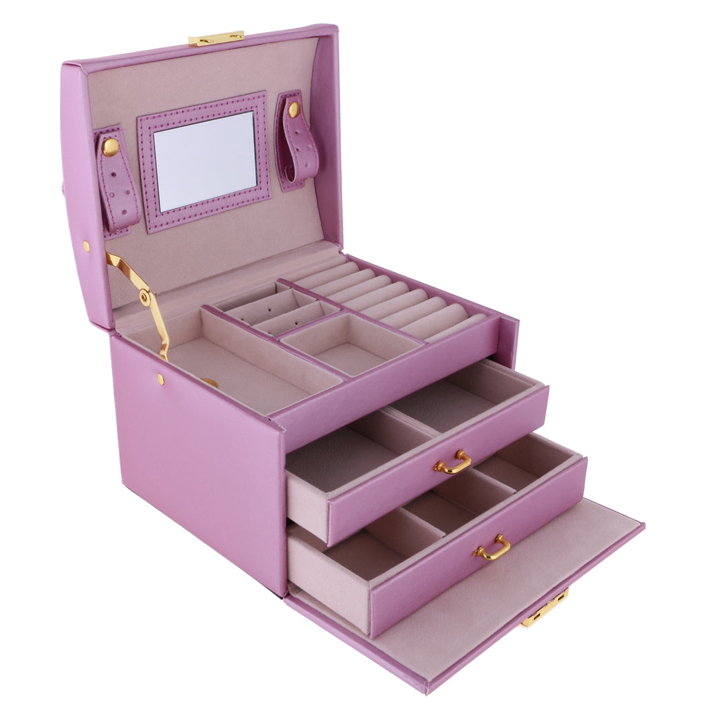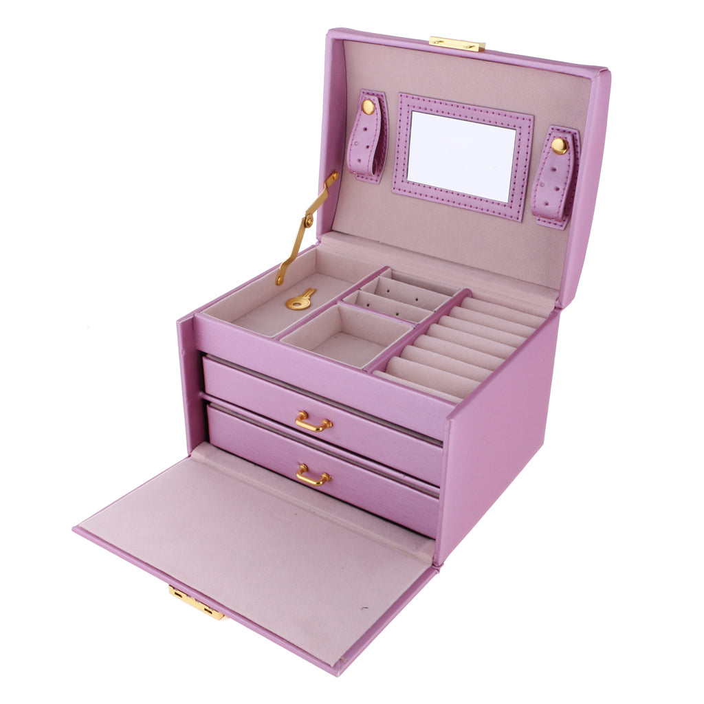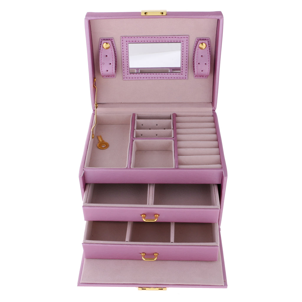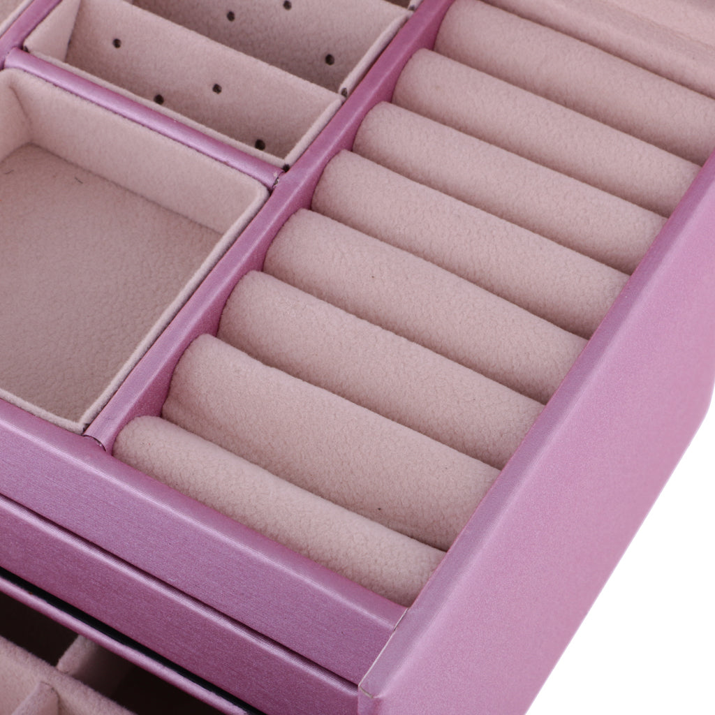 Artifical Leather Jewellery Box Beauty Case Holder Storage Organizer Purple