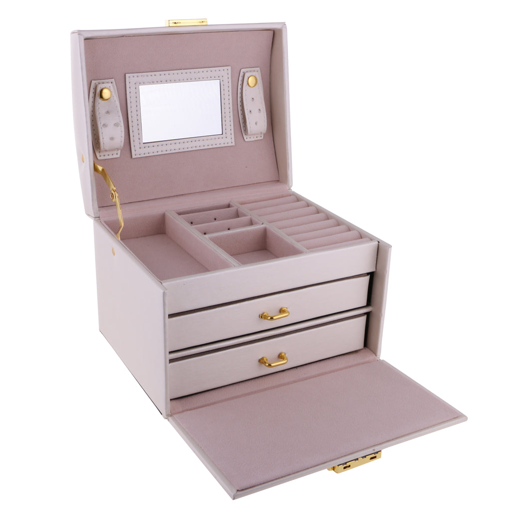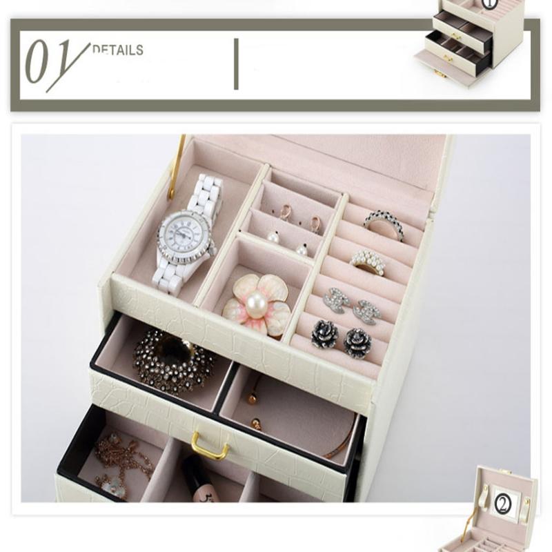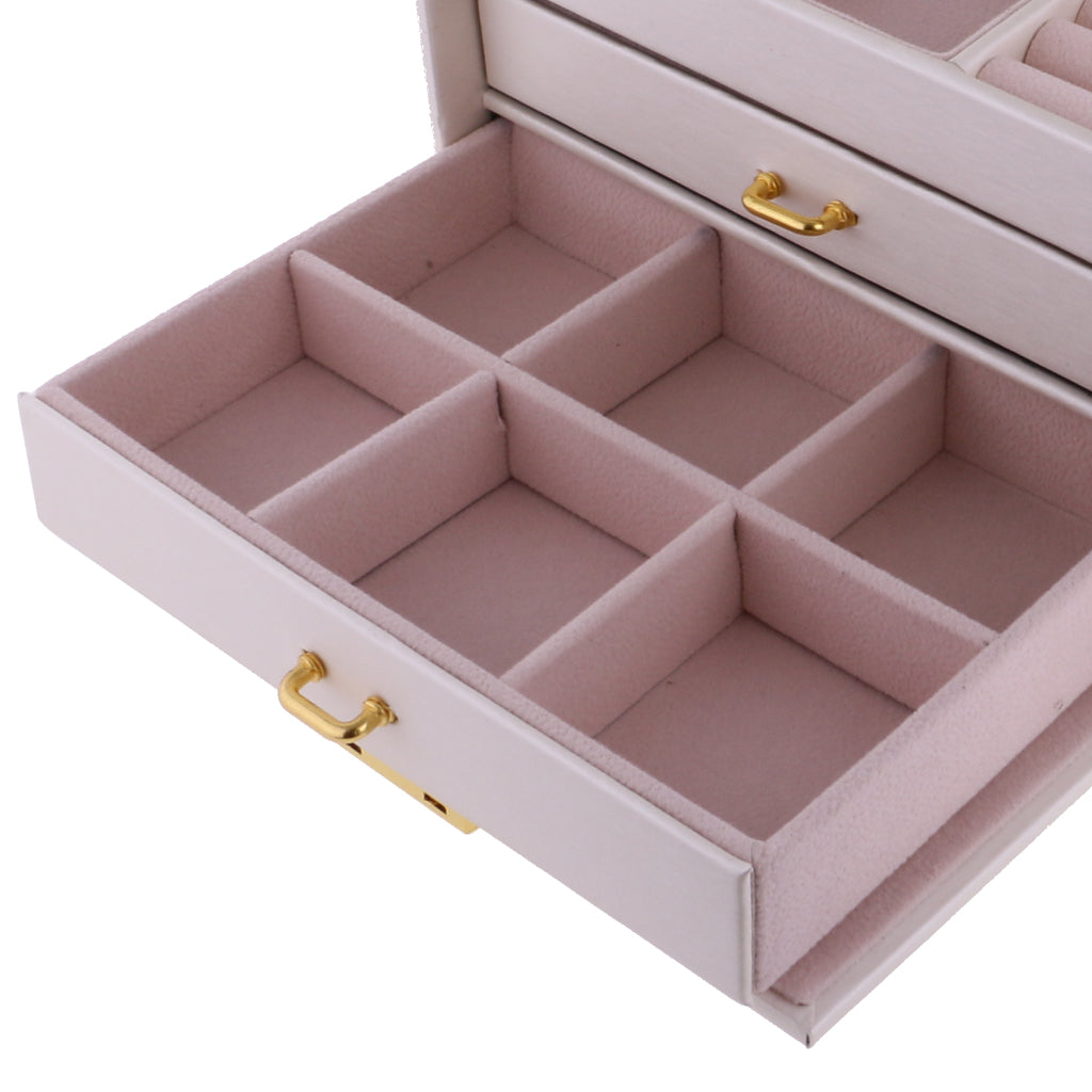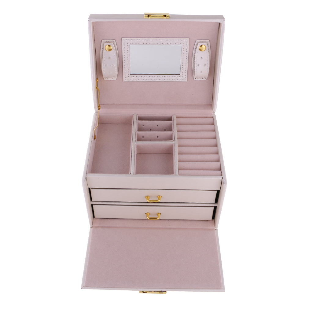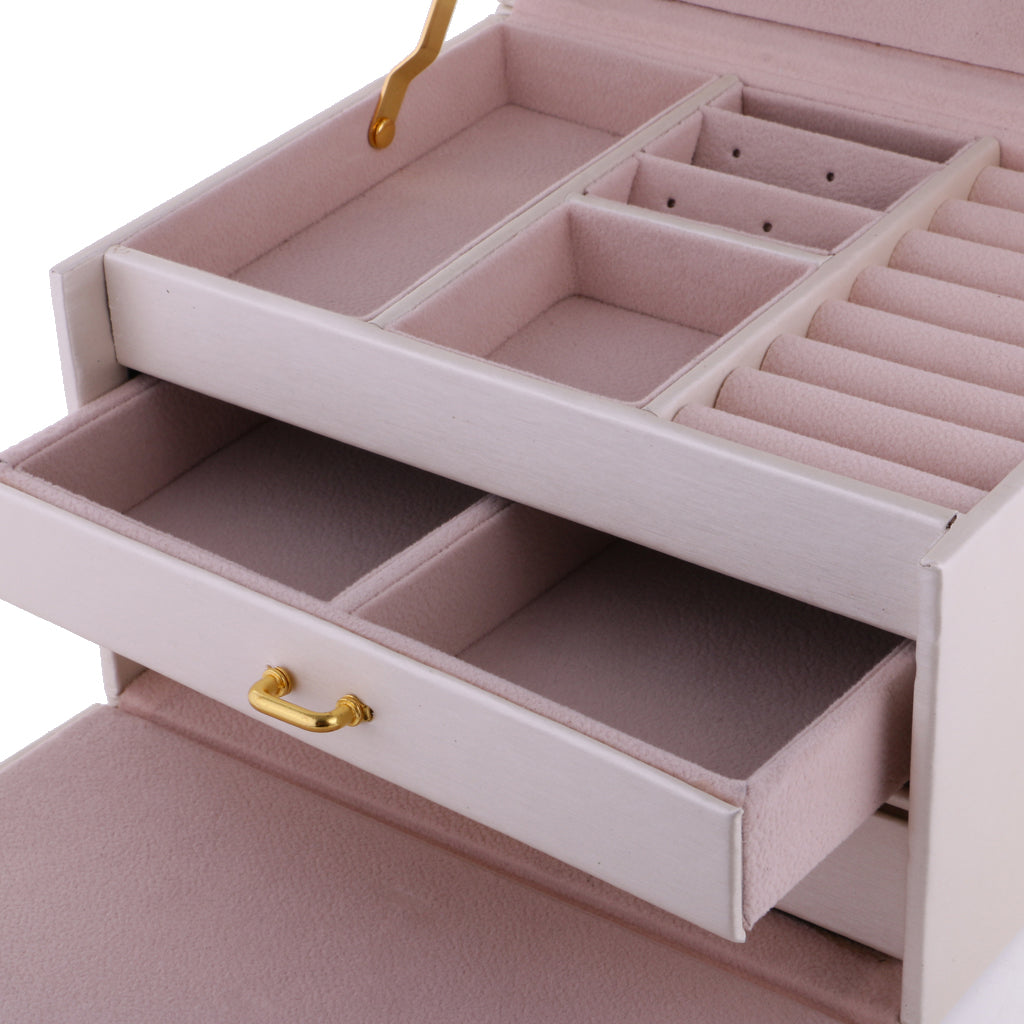 Three Layers jewellery storage box unit is crafted of soft artifical leather and a velvet lined interior