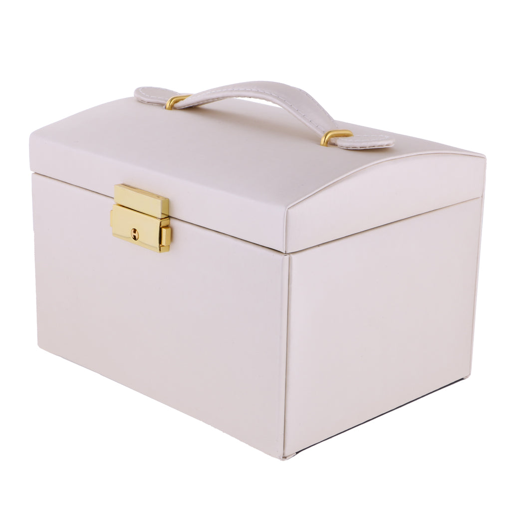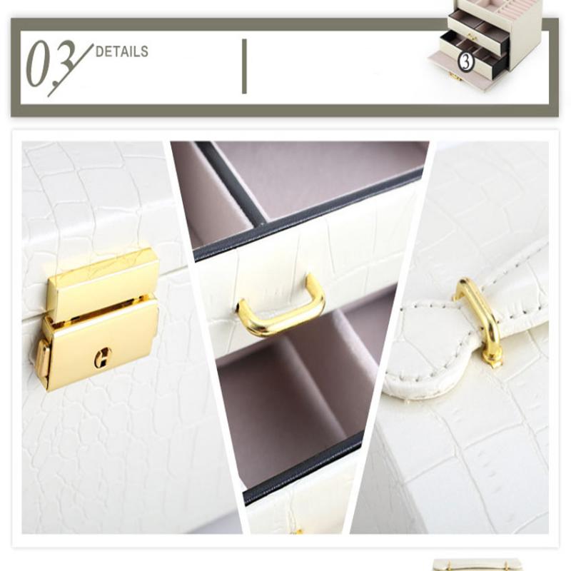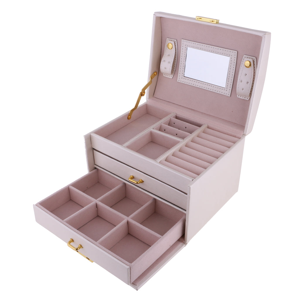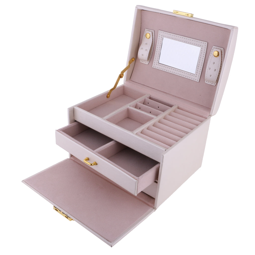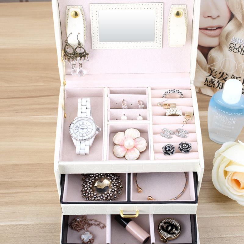 Three Layers jewellery storage box unit is crafted of soft artifical leather and a velvet lined interior