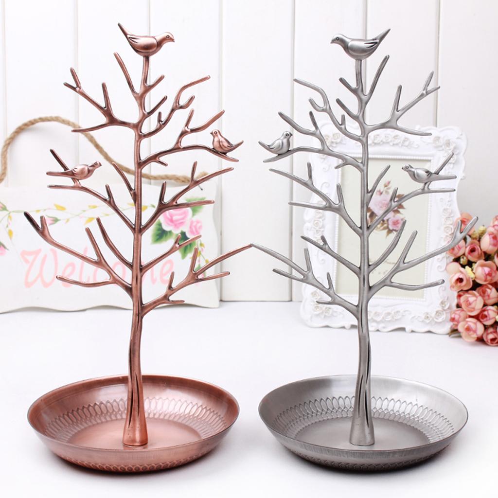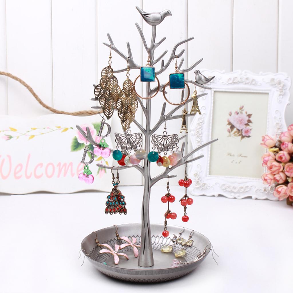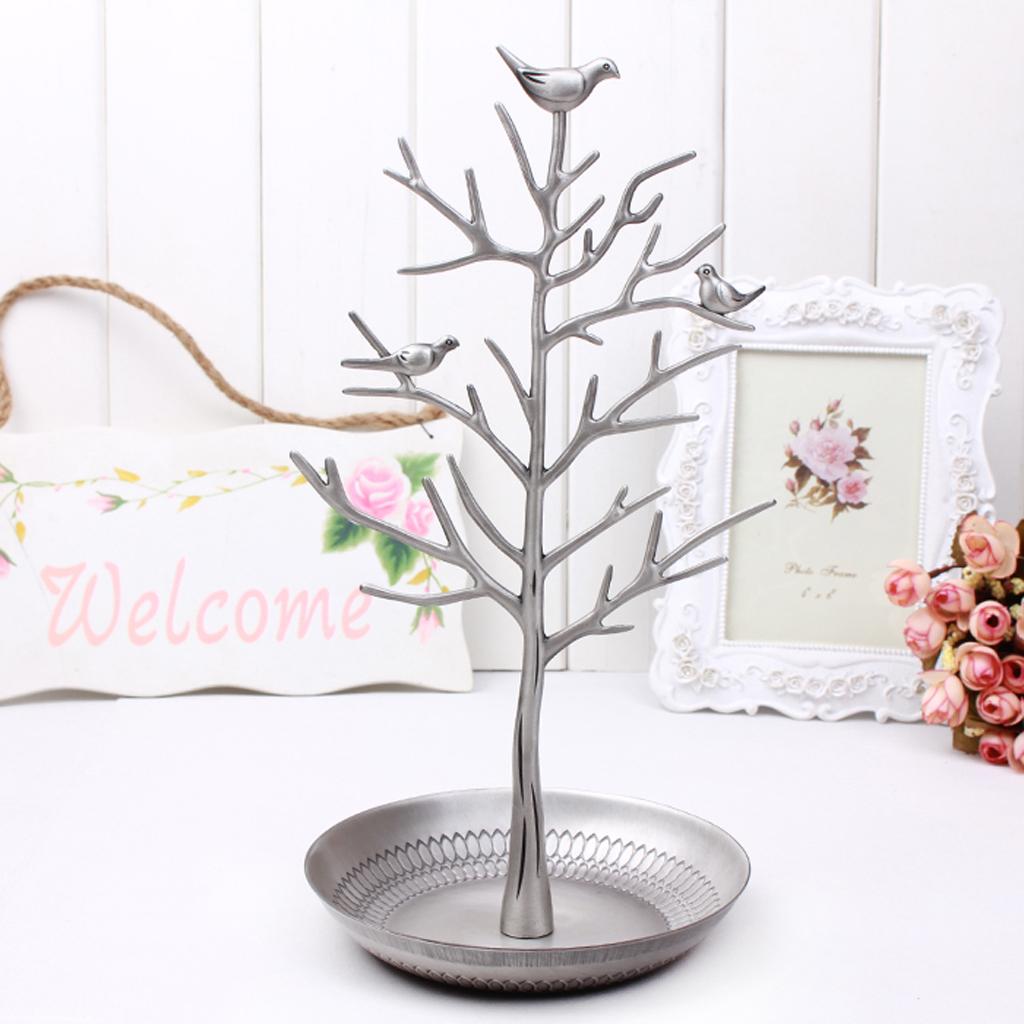 Bird Tree Earrings Bracelet Necklace Jewelry Holder Display Stand Silver