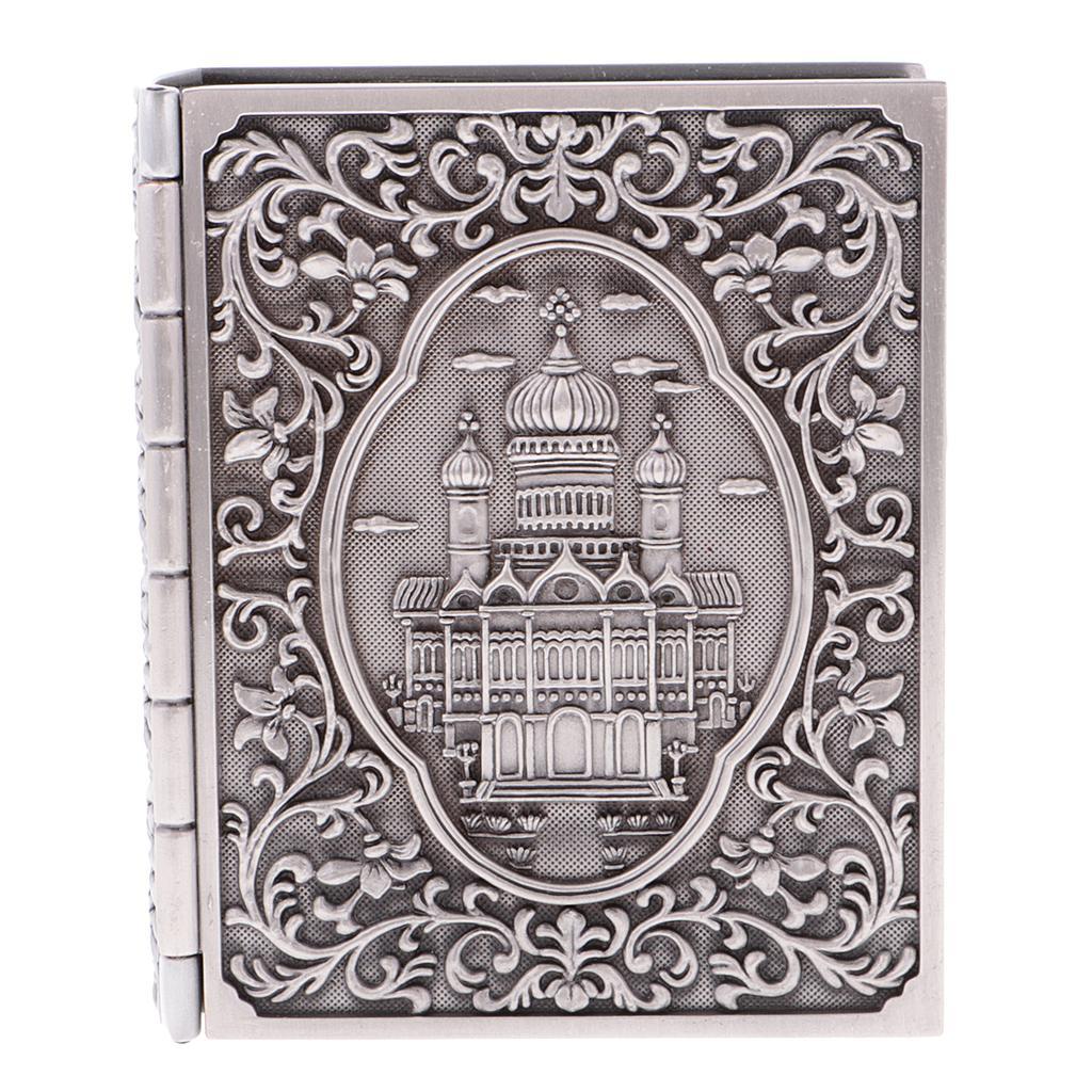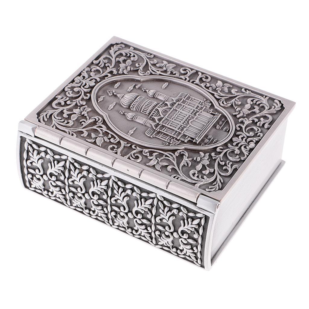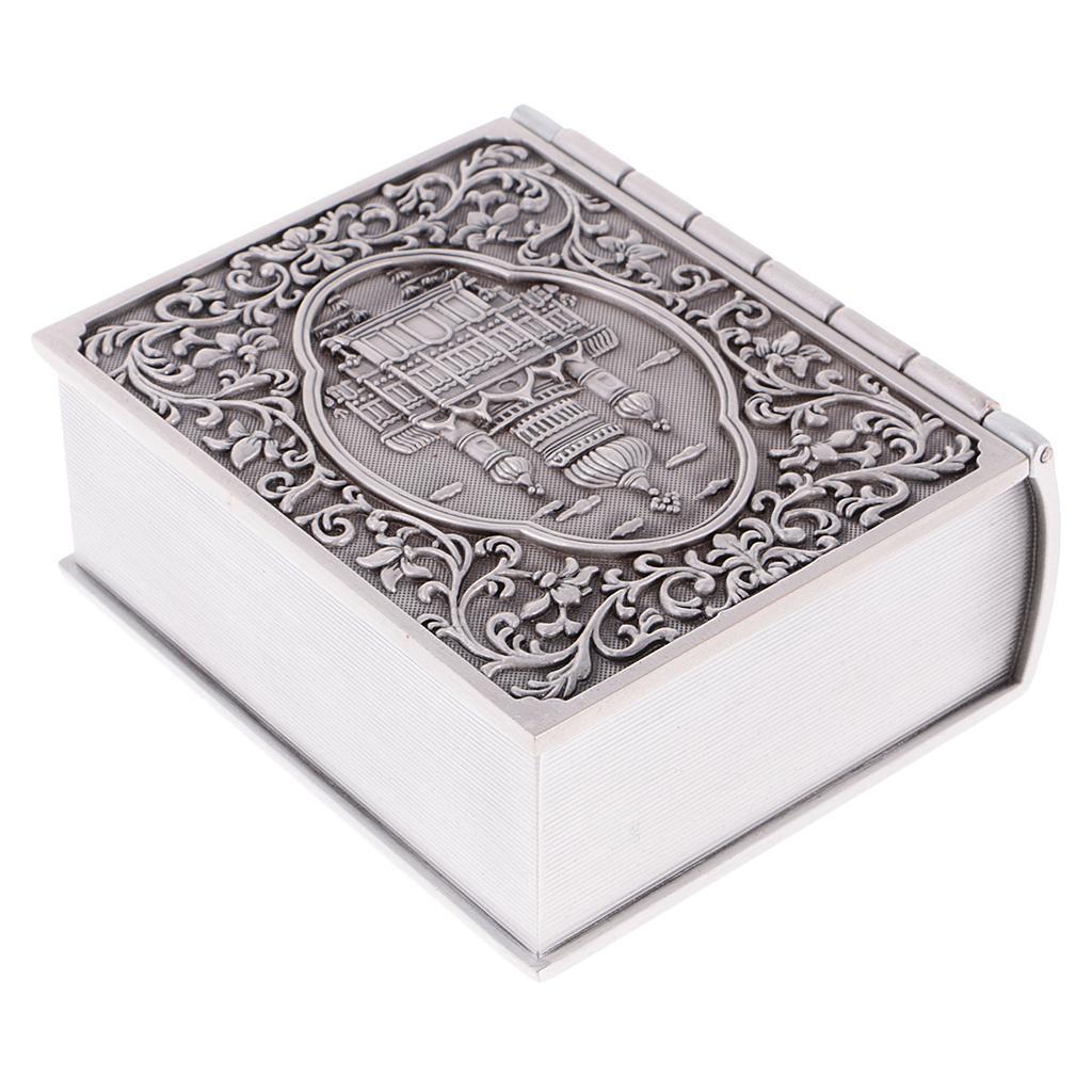 Beautiful book-shaped jewelry box engraved with filigree detailing & a castle