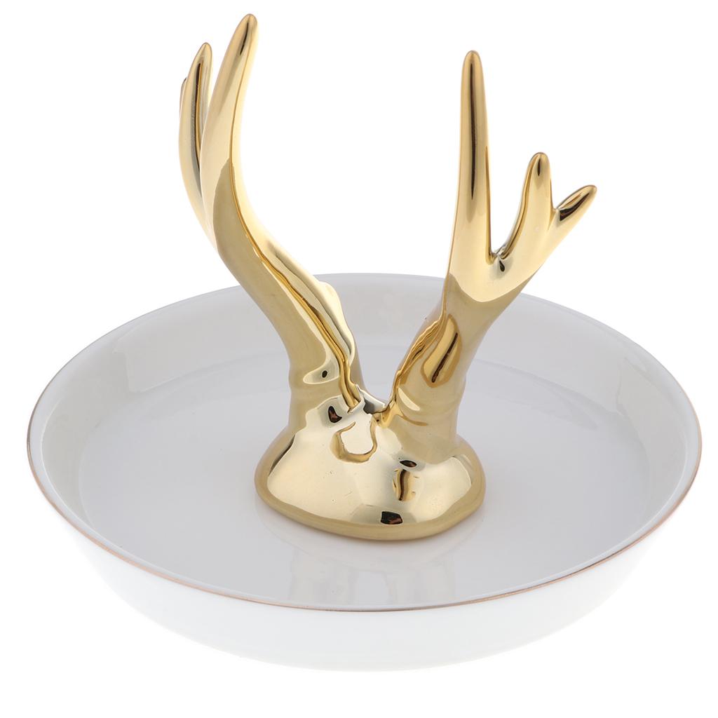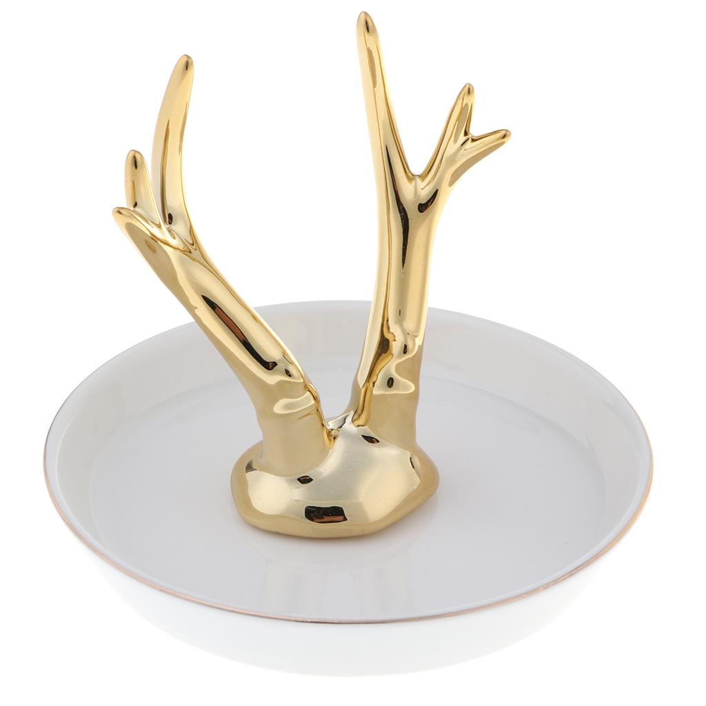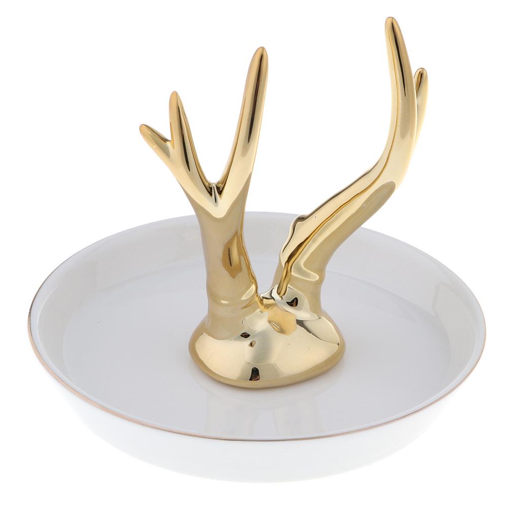 Ceramic Ring Holder Dish Jewelry Organizer Tray White Dish Antlers