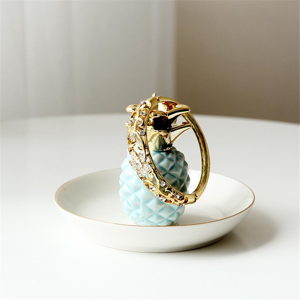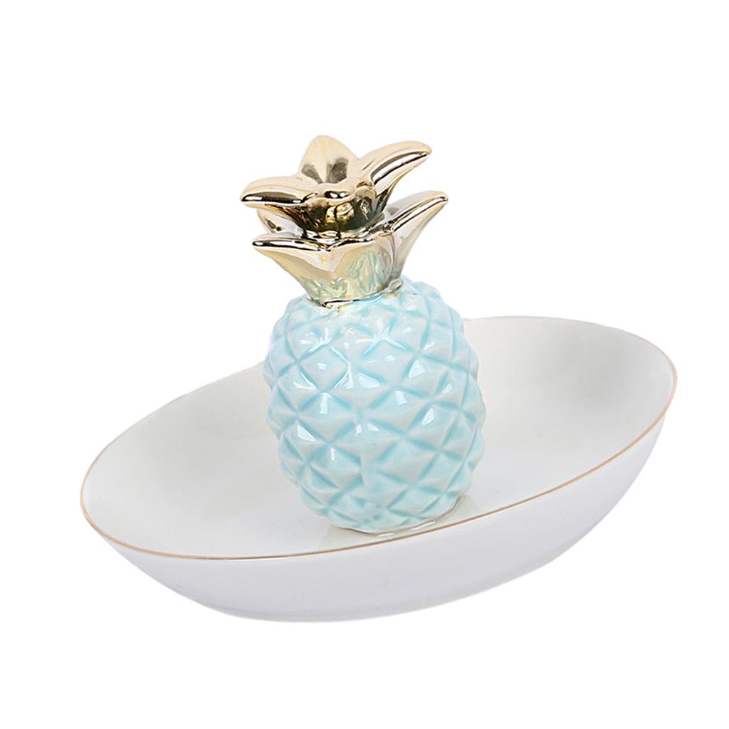 Ceramic Ring Necklace Trinkets Jewelry Holder Decor Dish Pineapple Blue