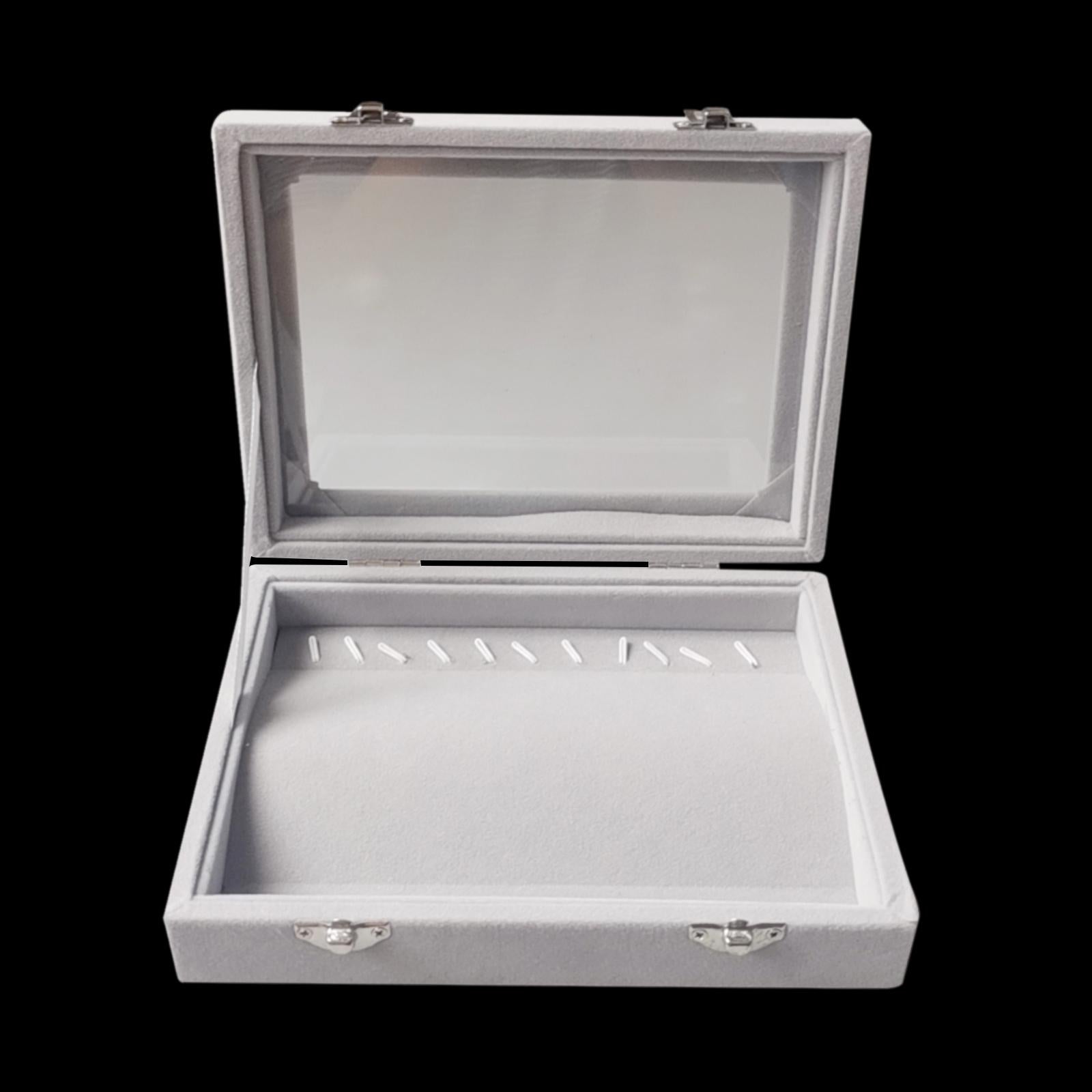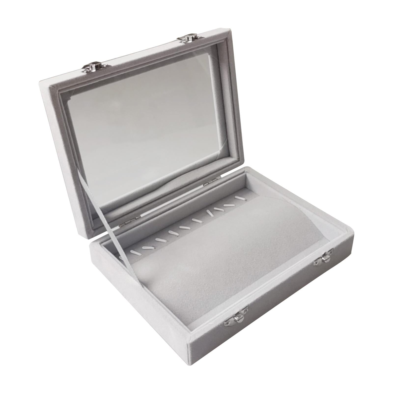 Glass Top Jewelry Showcase 10 Hooks Necklace Tray Display Organizer Gray