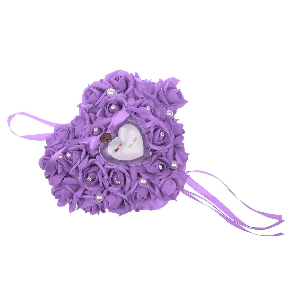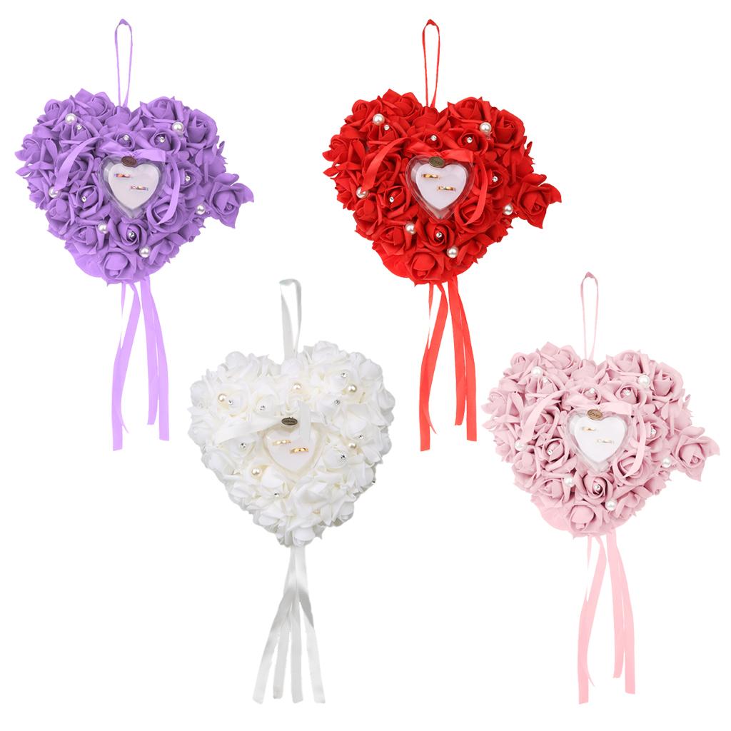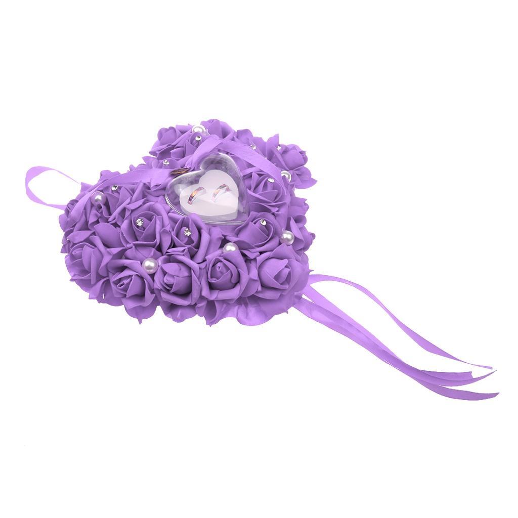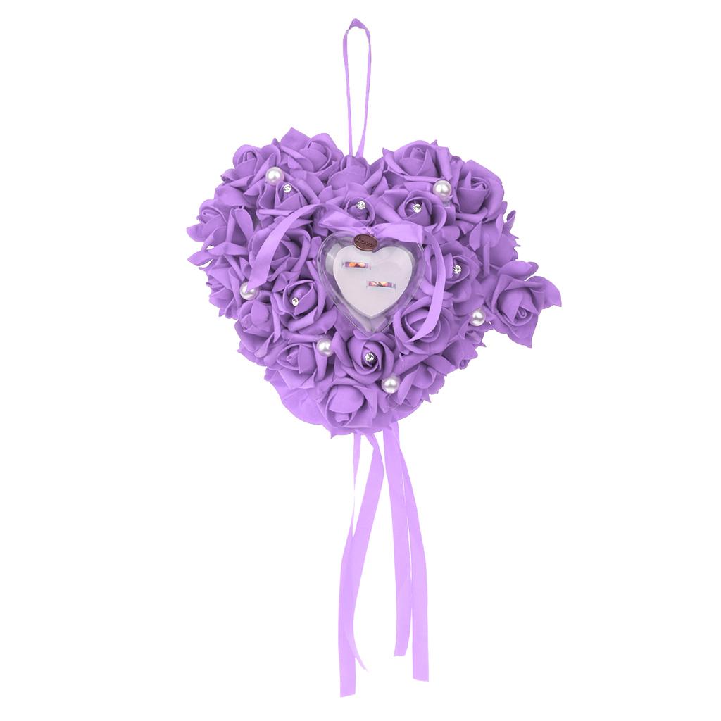 Heart Shape Flower Hanging Wedding Ring Pendant Jewelry Box Case Holder Purple