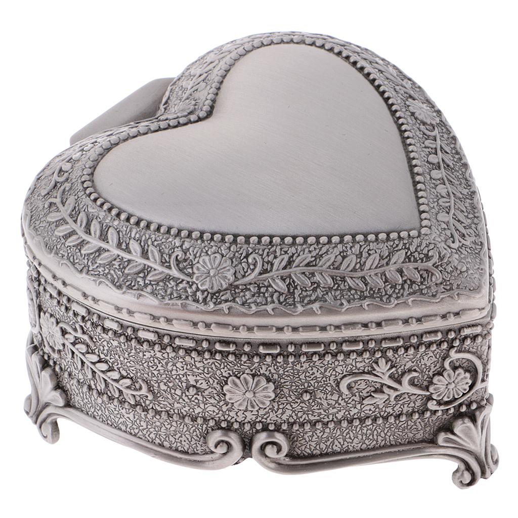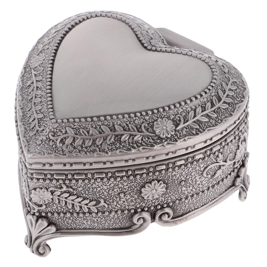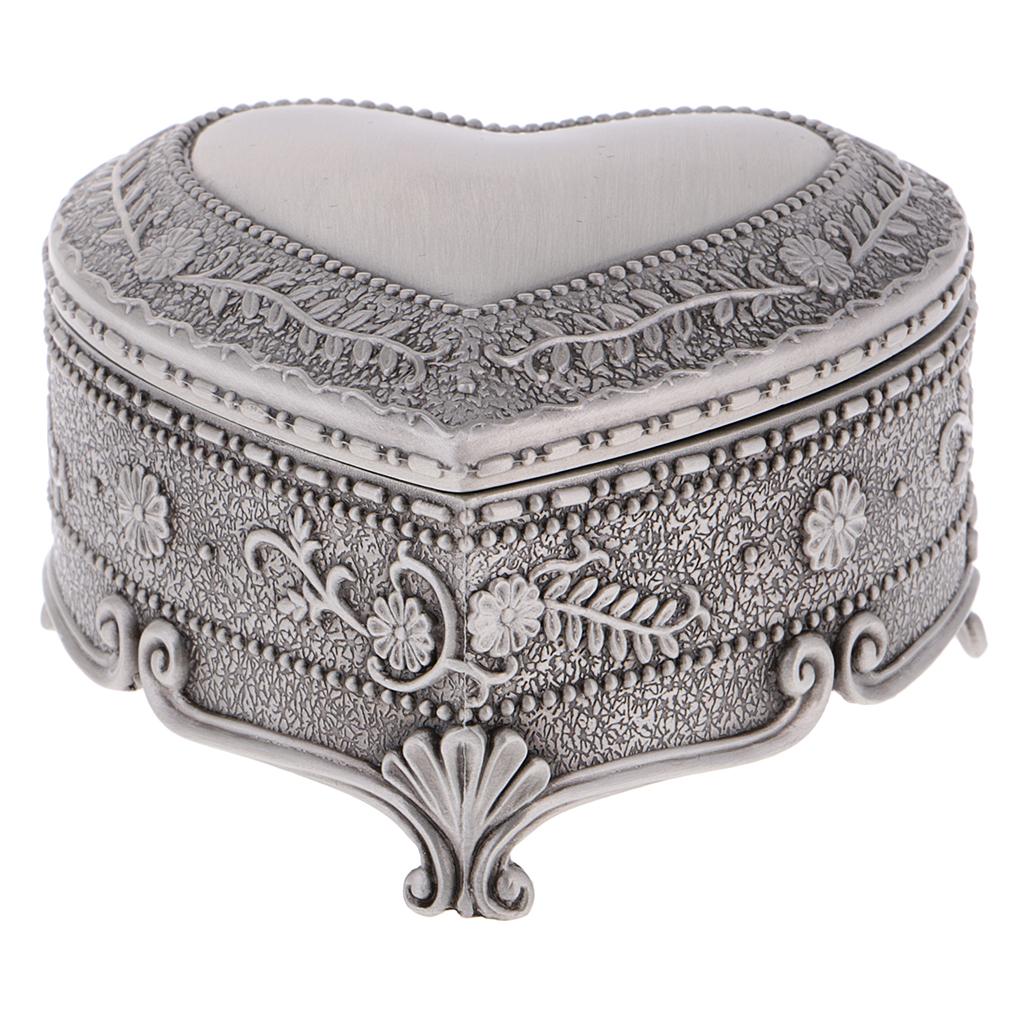 Beautiful heart-shaped jewelry box engraved with filigree detailing flower pattern.