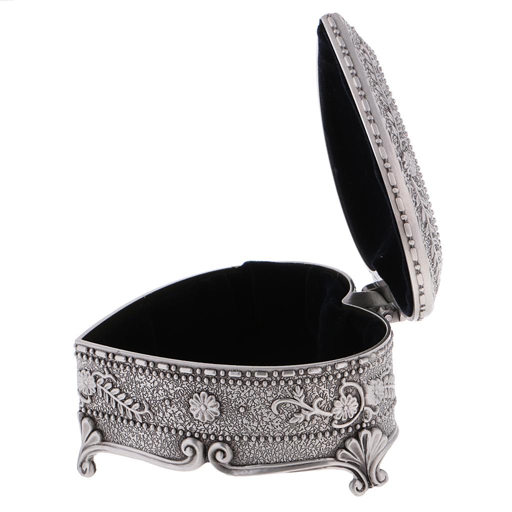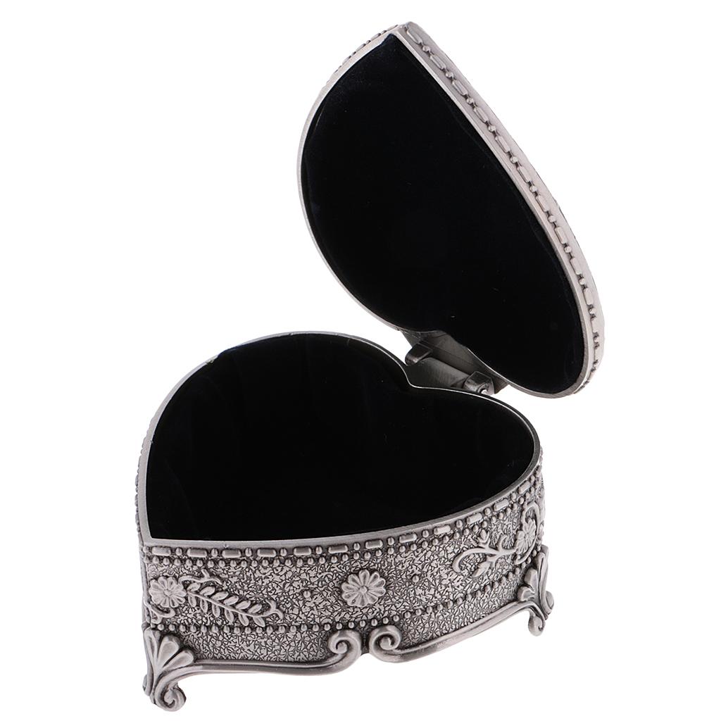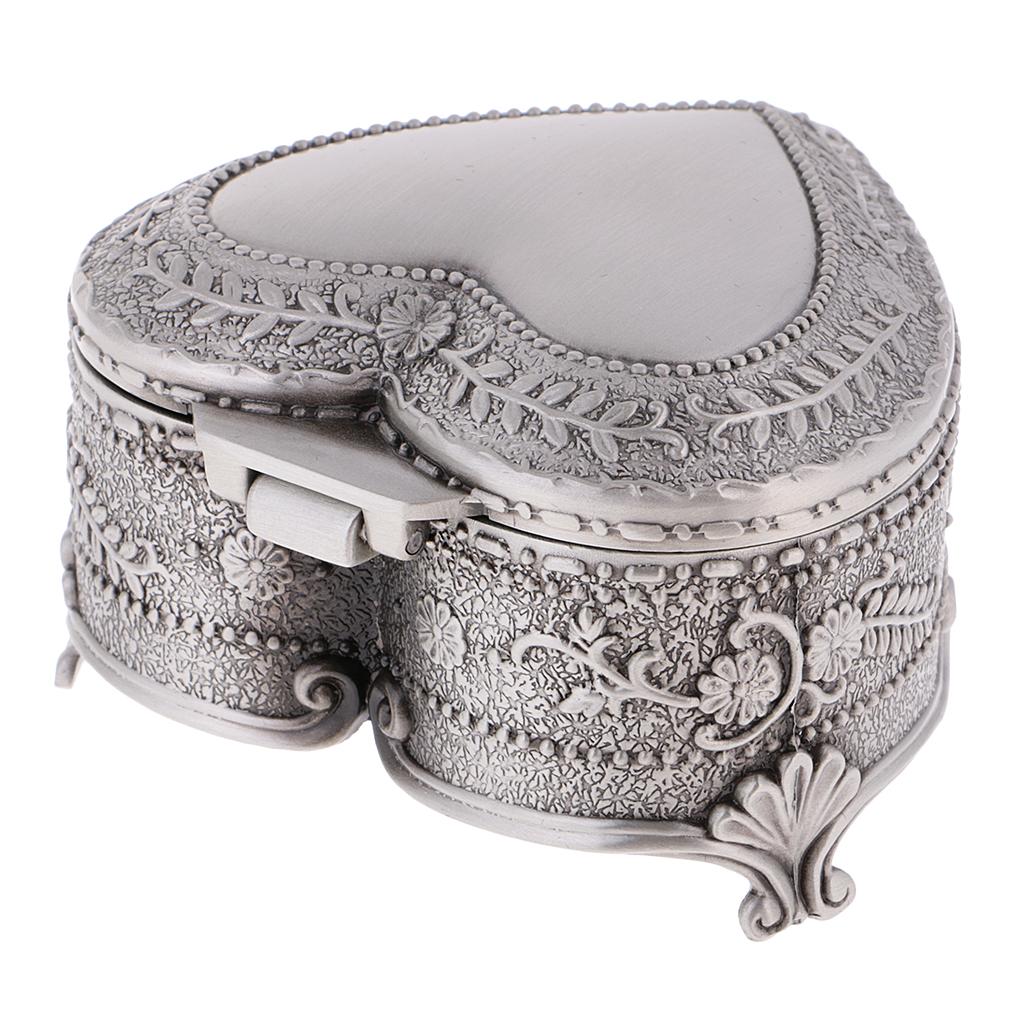 Beautiful heart-shaped jewelry box engraved with filigree detailing flower pattern.