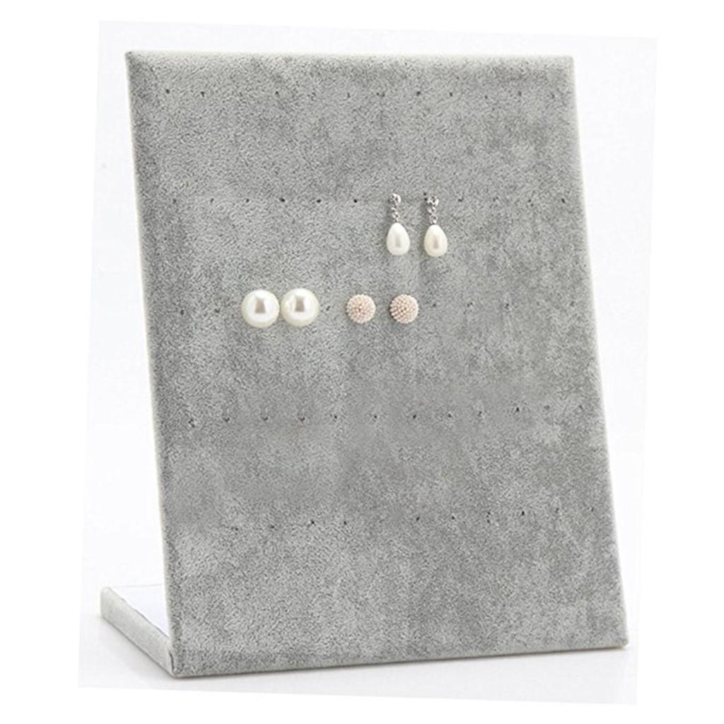 L-shape Stand Velvet Board Earring Dangle Stud Holder Display Pad Gray