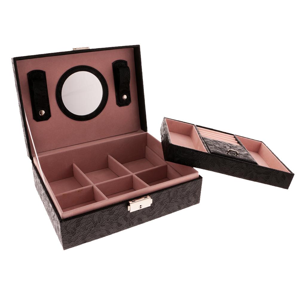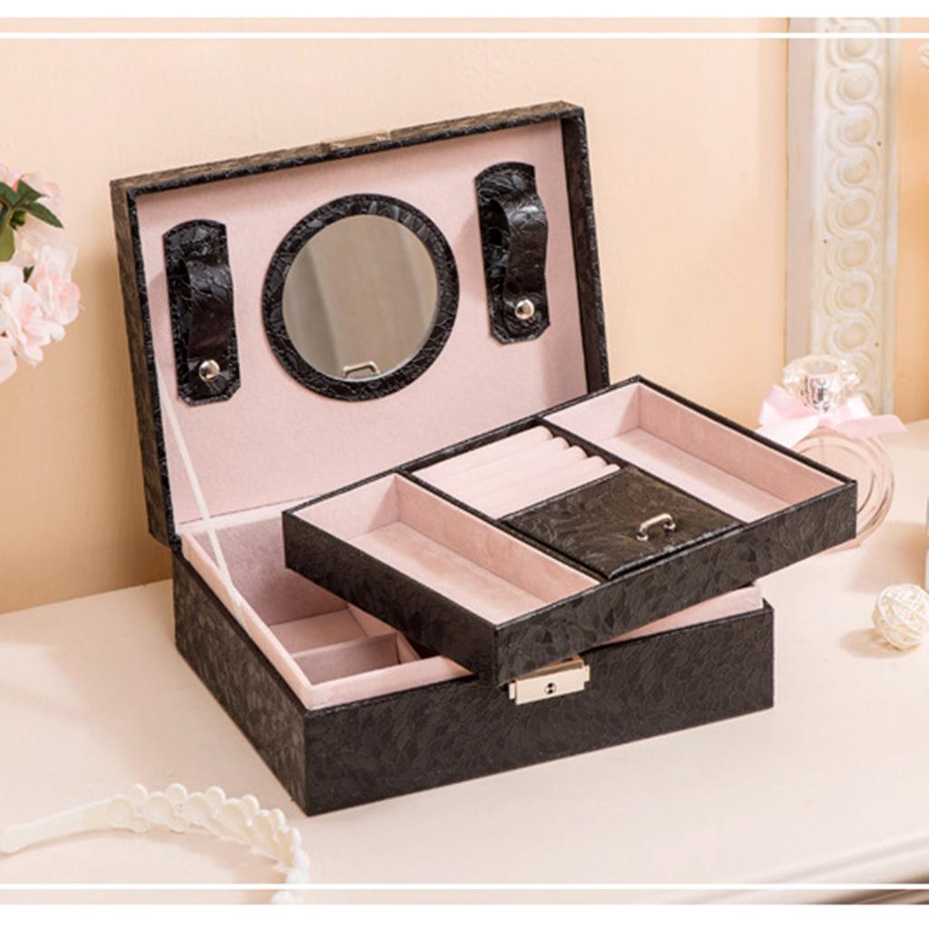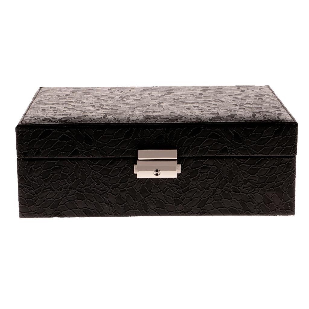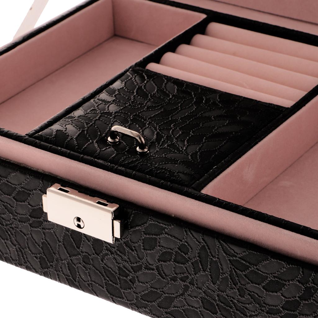 Large PU Covered Wooden Jewellery Box Case Ring Necklaces Organizer Black