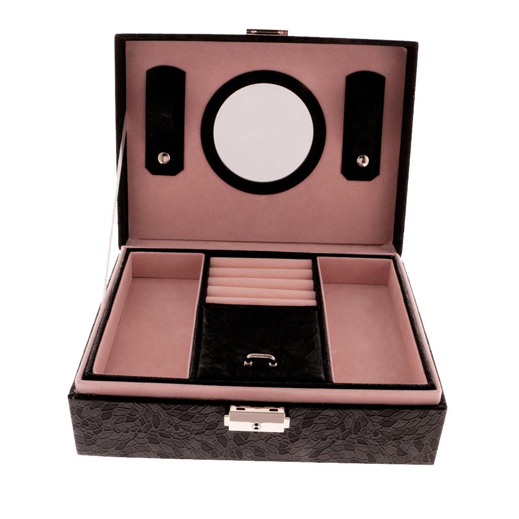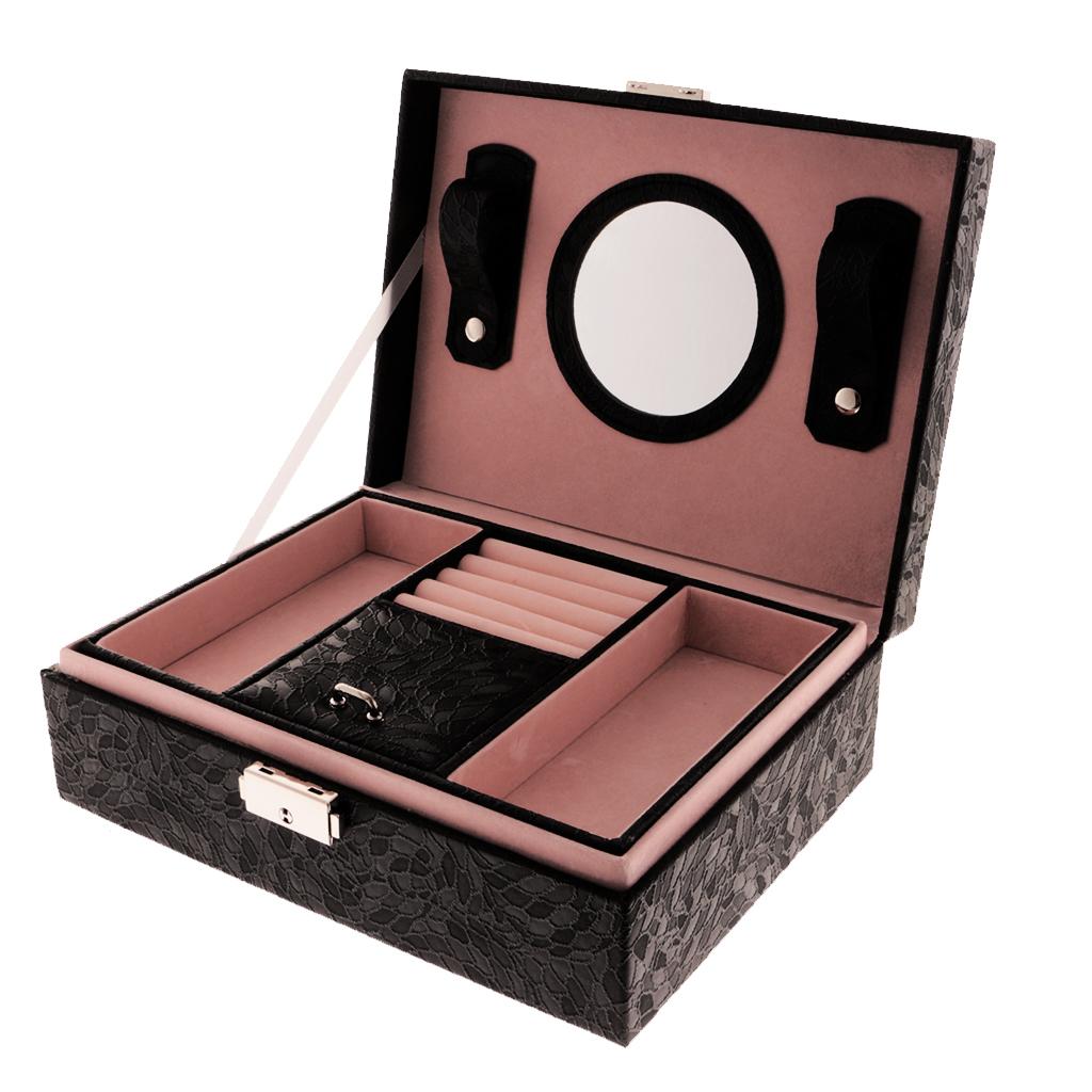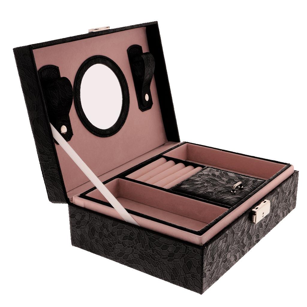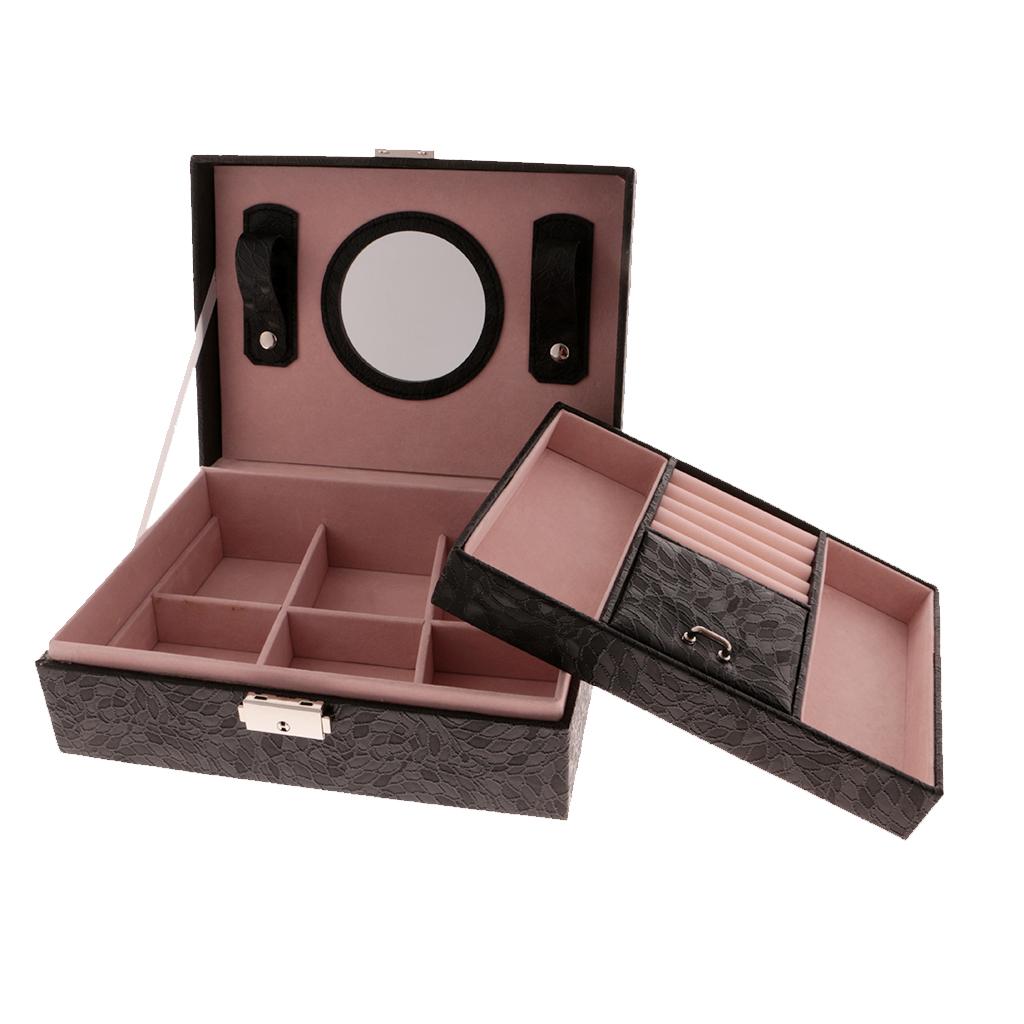 Large PU Covered Wooden Jewellery Box Case Ring Necklaces Organizer Black