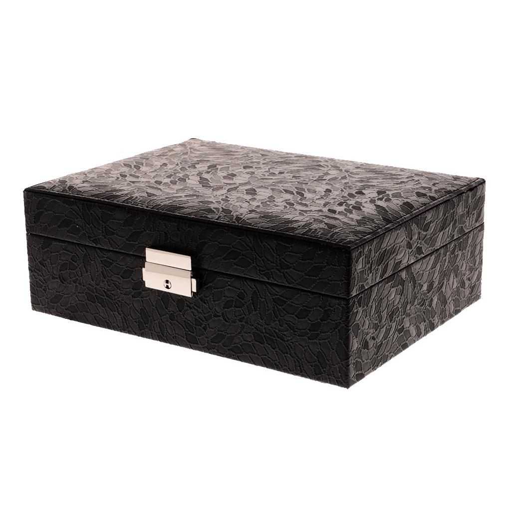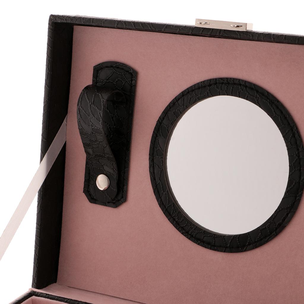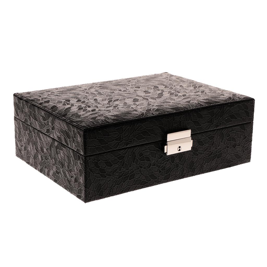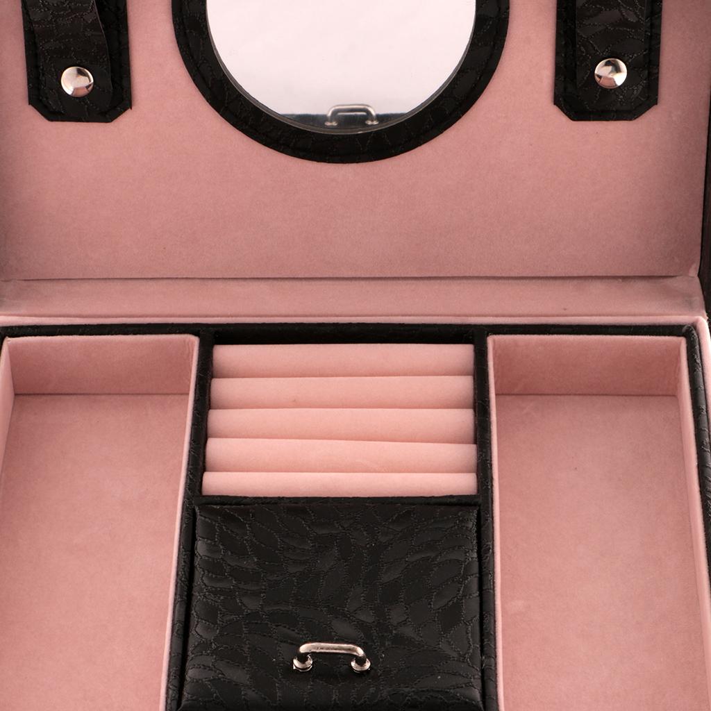 Large PU Covered Wooden Jewellery Box Case Ring Necklaces Organizer Black