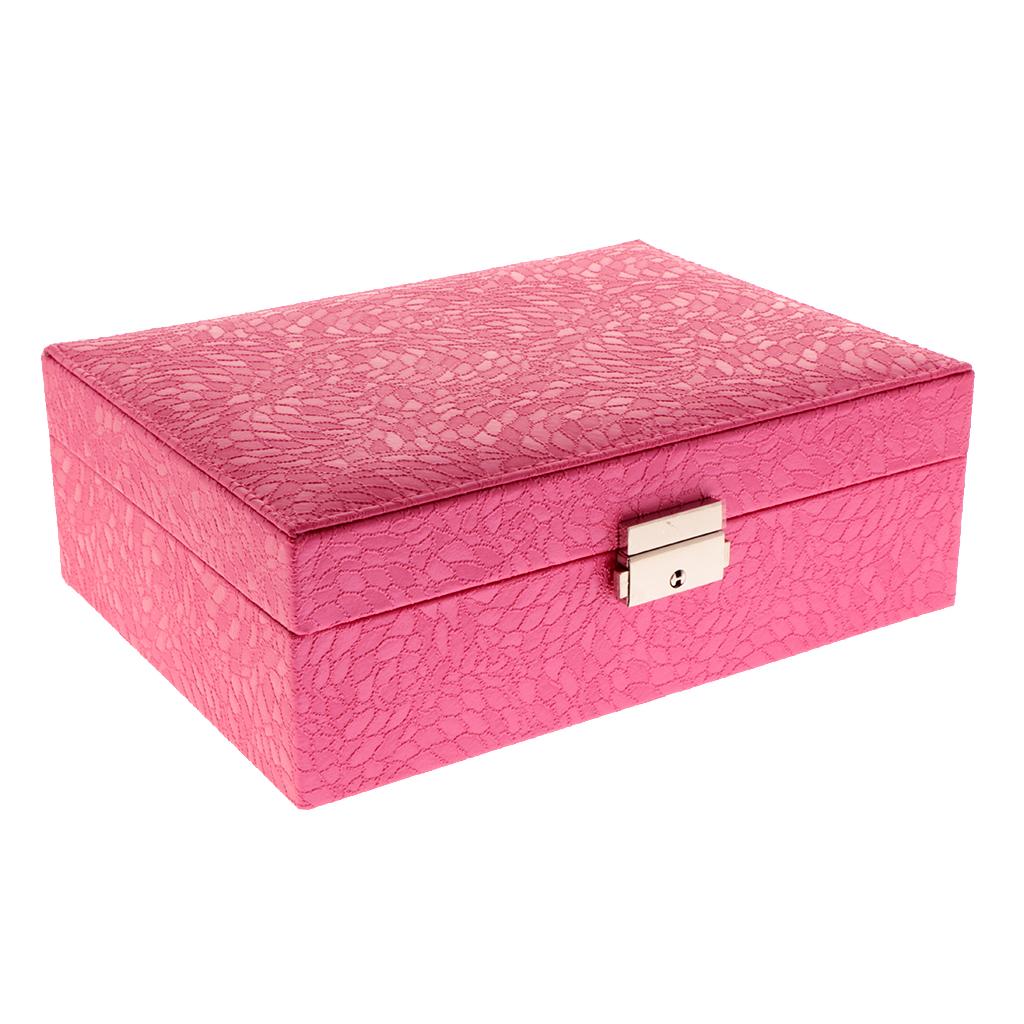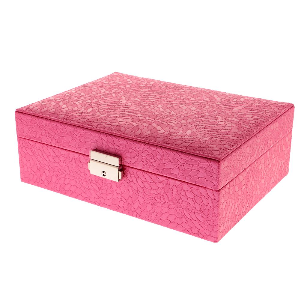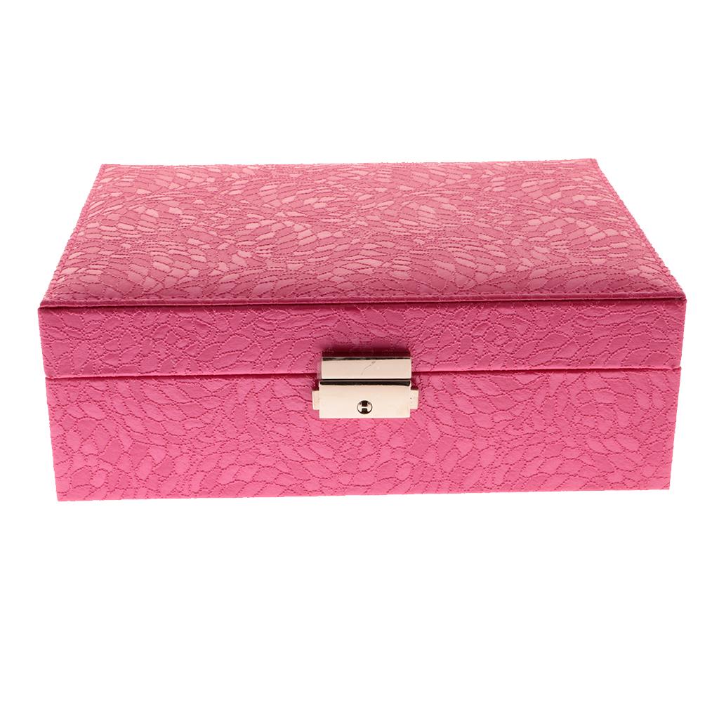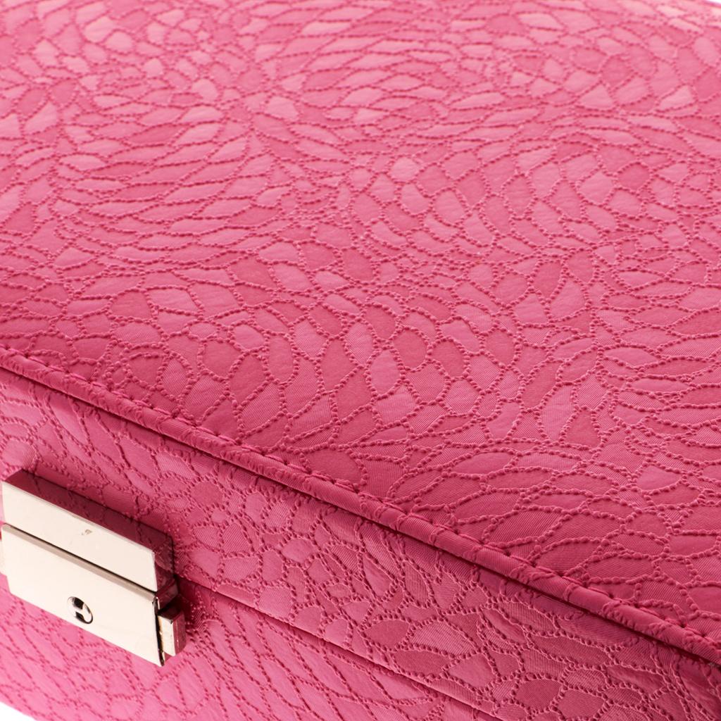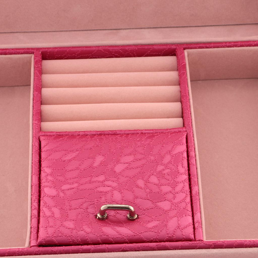 Large PU Covered Wooden Jewellery Box Case Ring Necklaces Organizer Rose Red