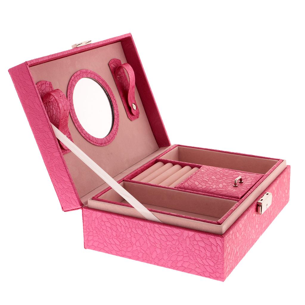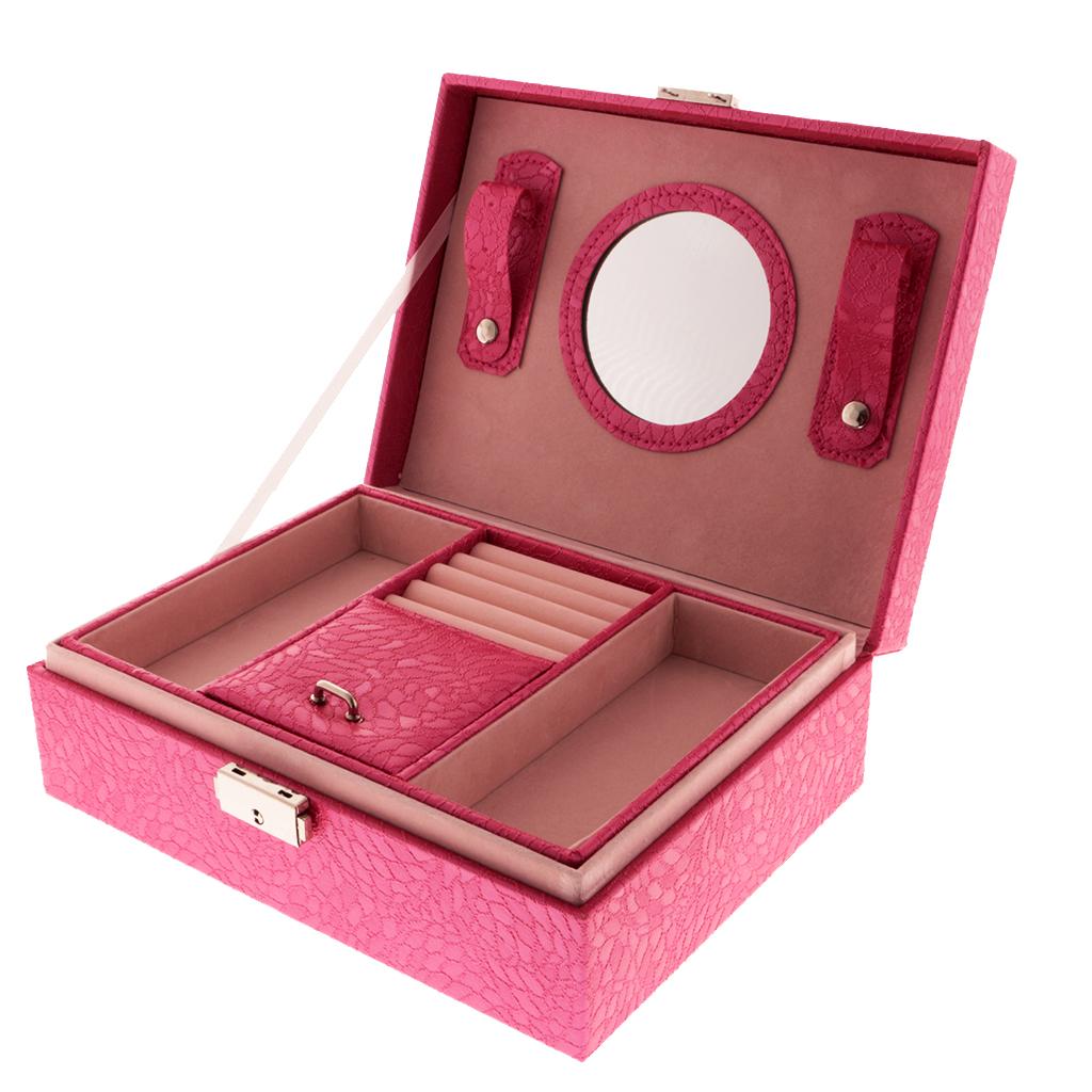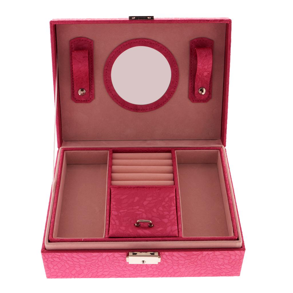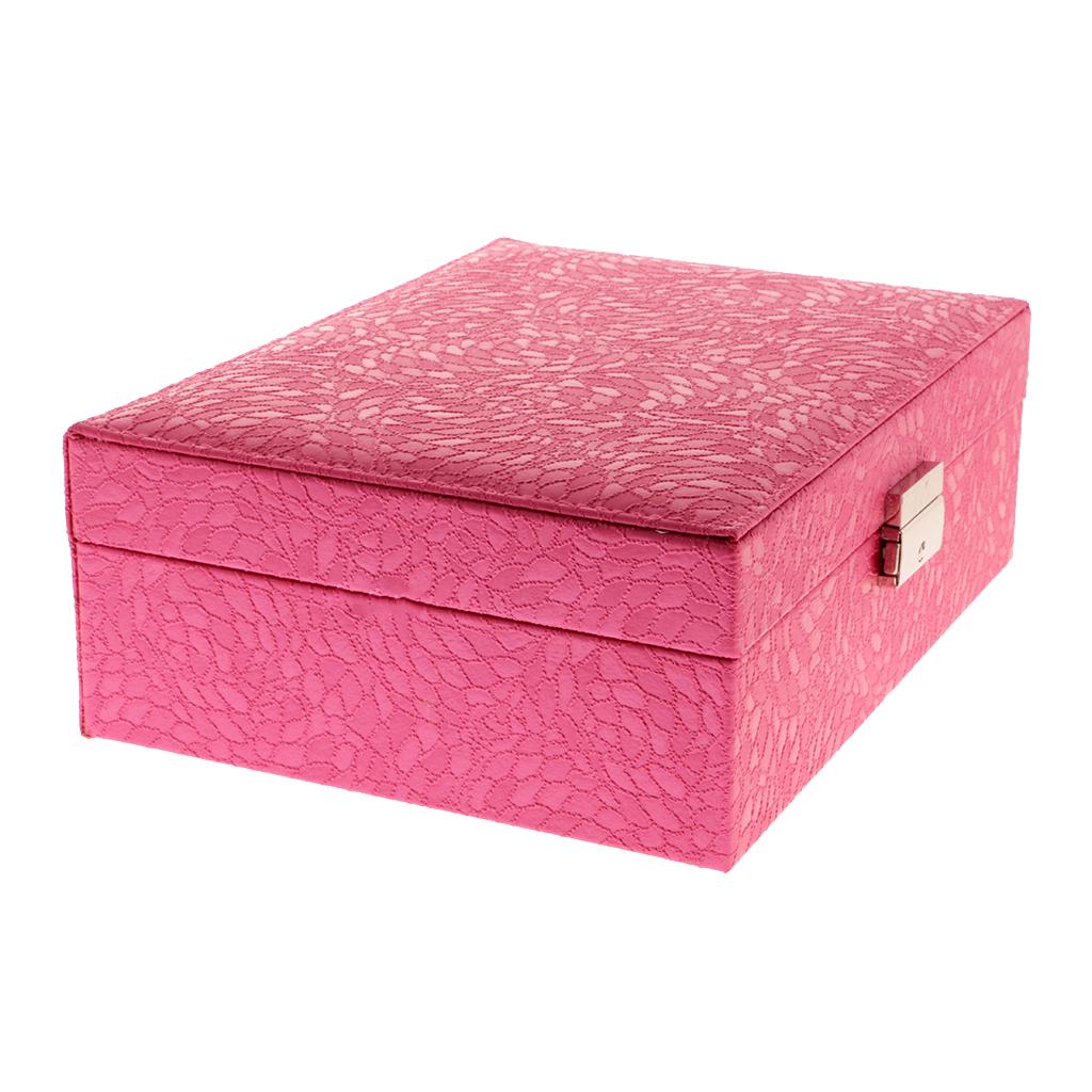 Large PU Covered Wooden Jewellery Box Case Ring Necklaces Organizer Rose Red