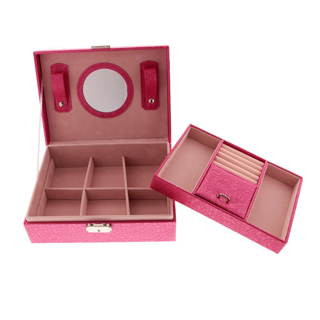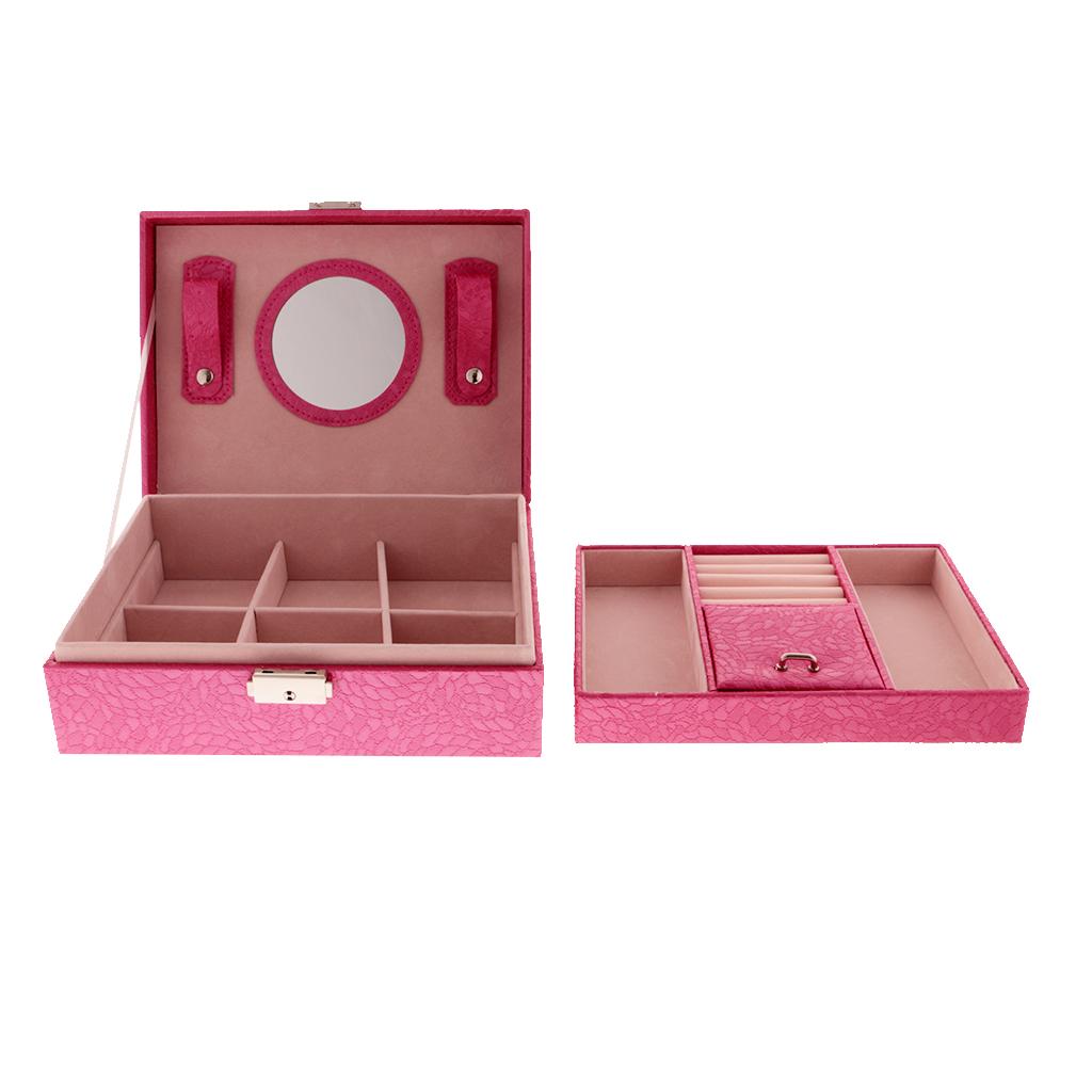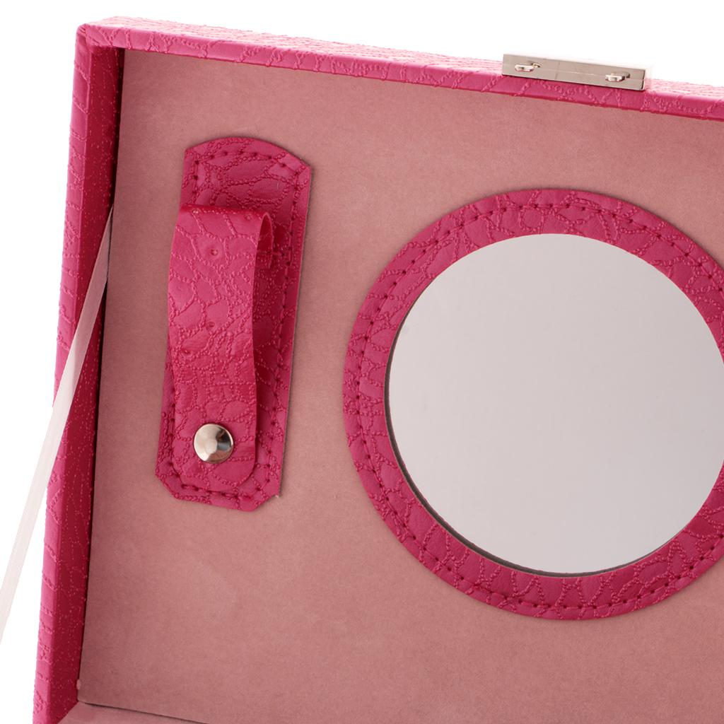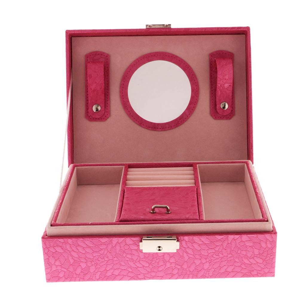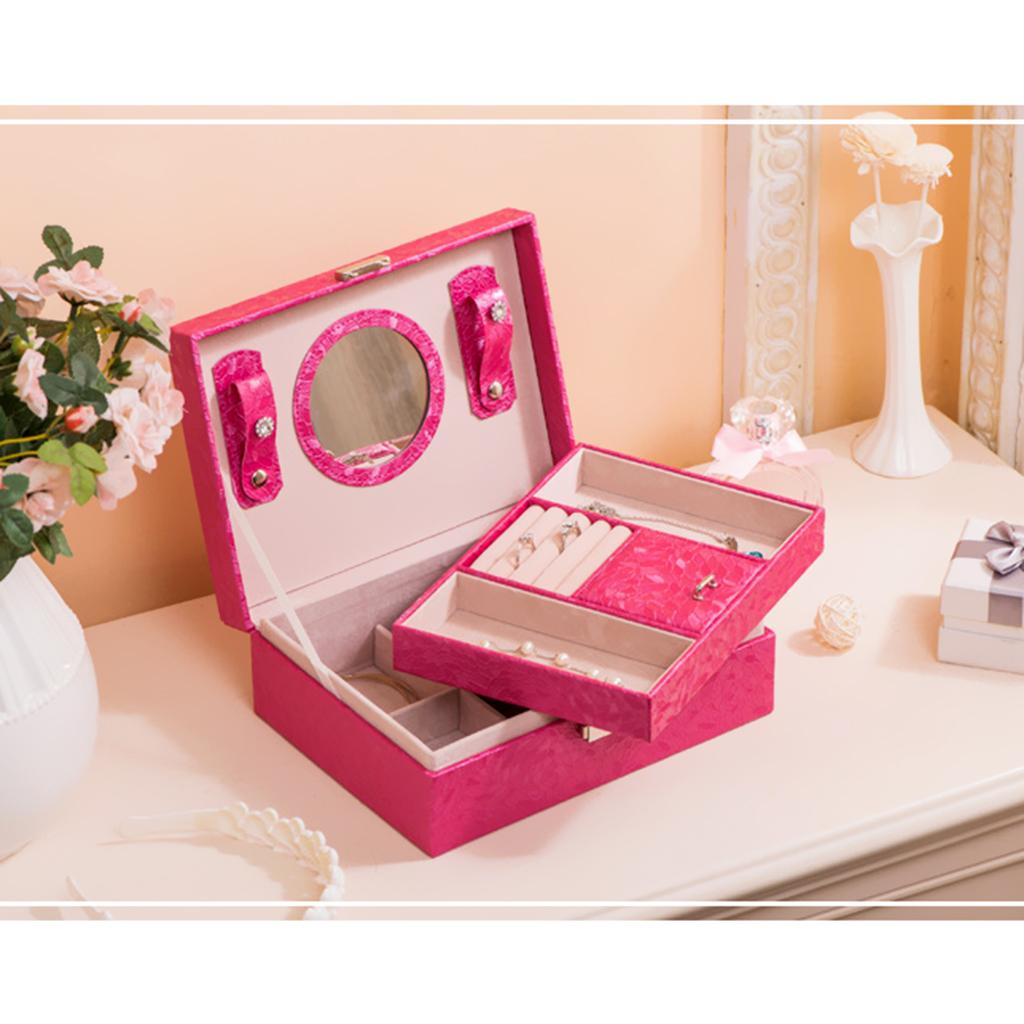 Large PU Covered Wooden Jewellery Box Case Ring Necklaces Organizer Rose Red