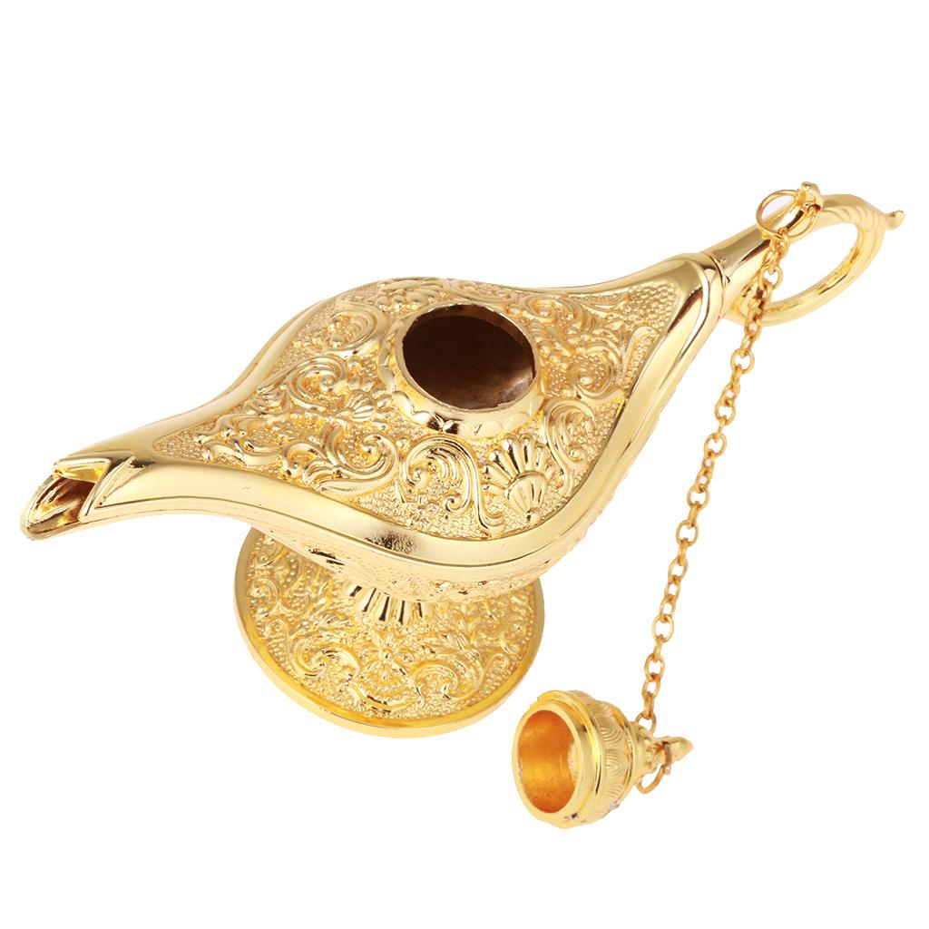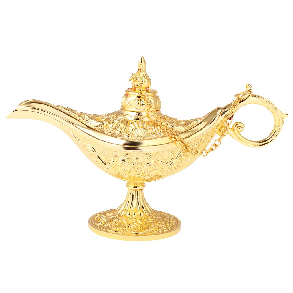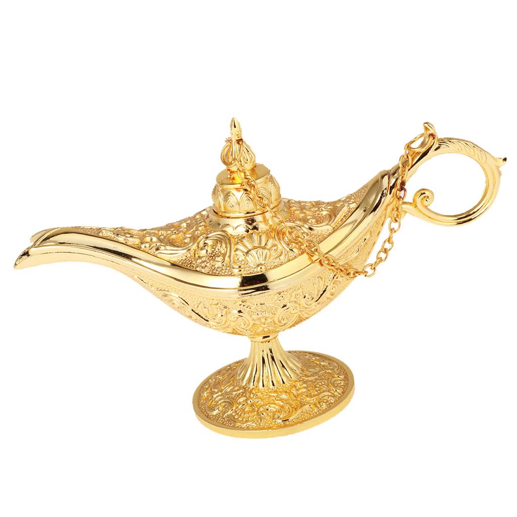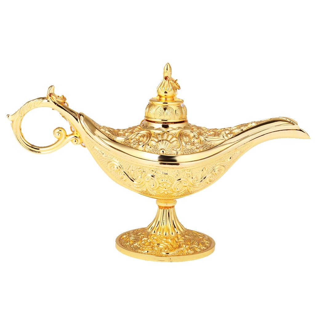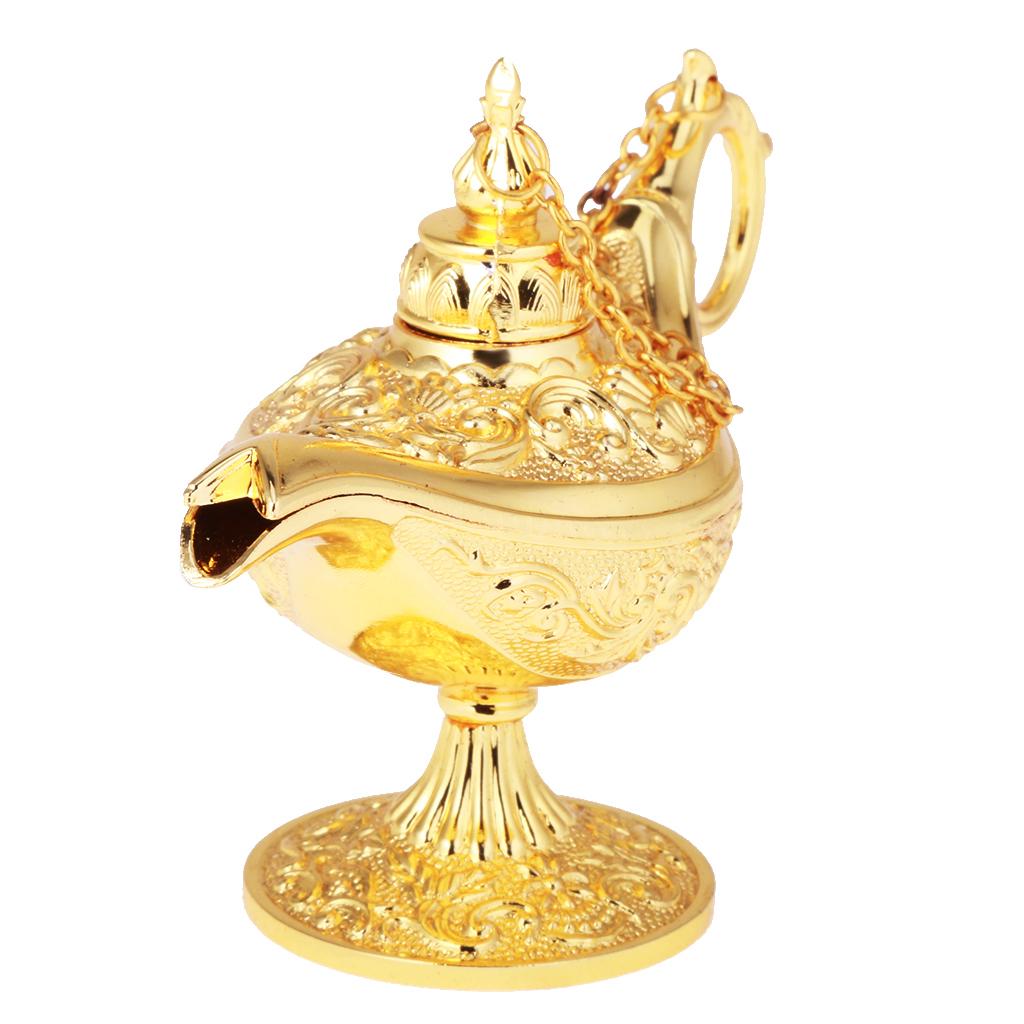 Metal Flower Craved Oil Lamp Light Aladdin Magic Genie Lamp Wishing Pot Party Prop Gold
