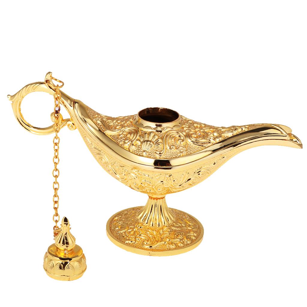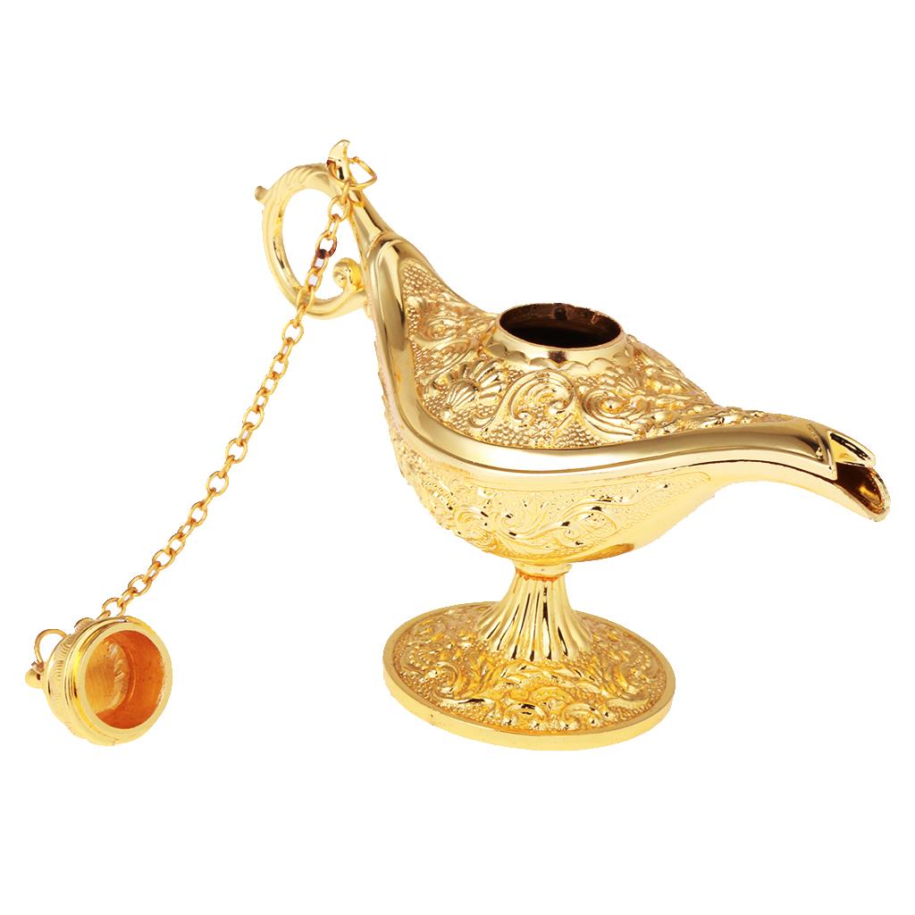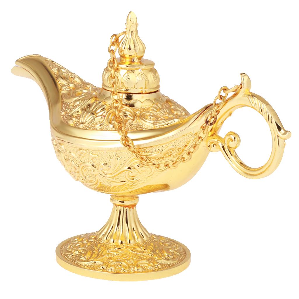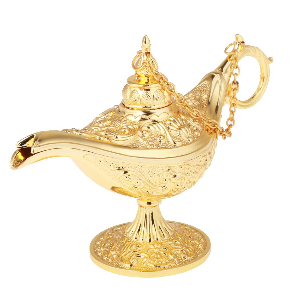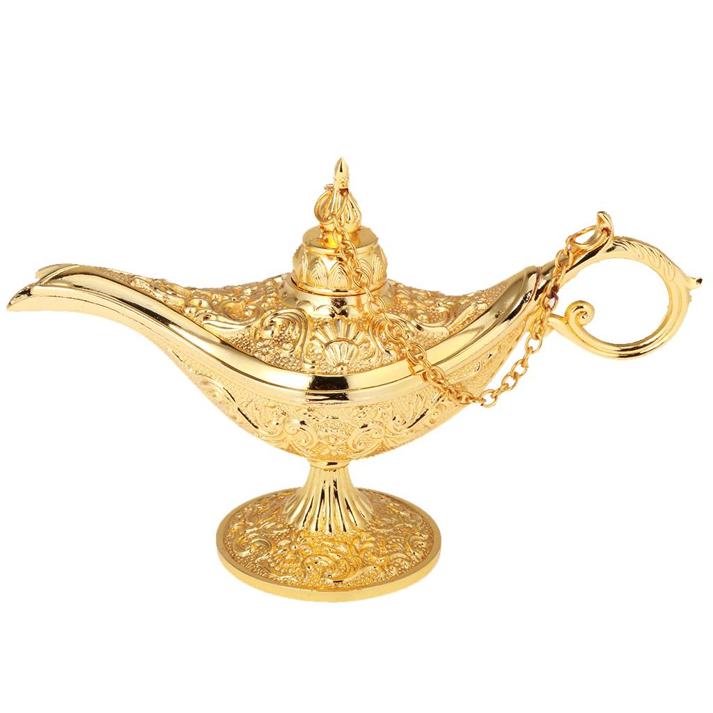 Metal Flower Craved Oil Lamp Light Aladdin Magic Genie Lamp Wishing Pot Party Prop Gold