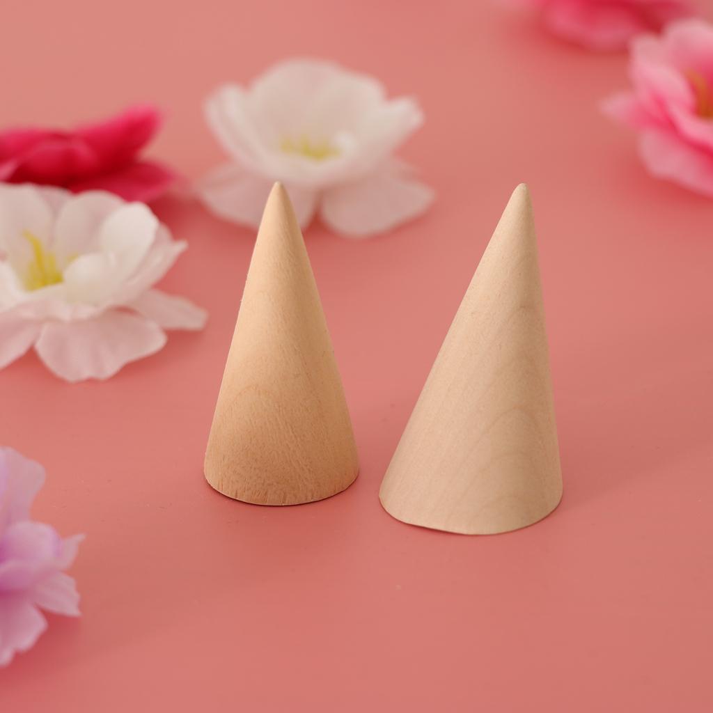Mini Small Wood Cone Ring Jewelry Display Stands Organizer Holders M Style 1