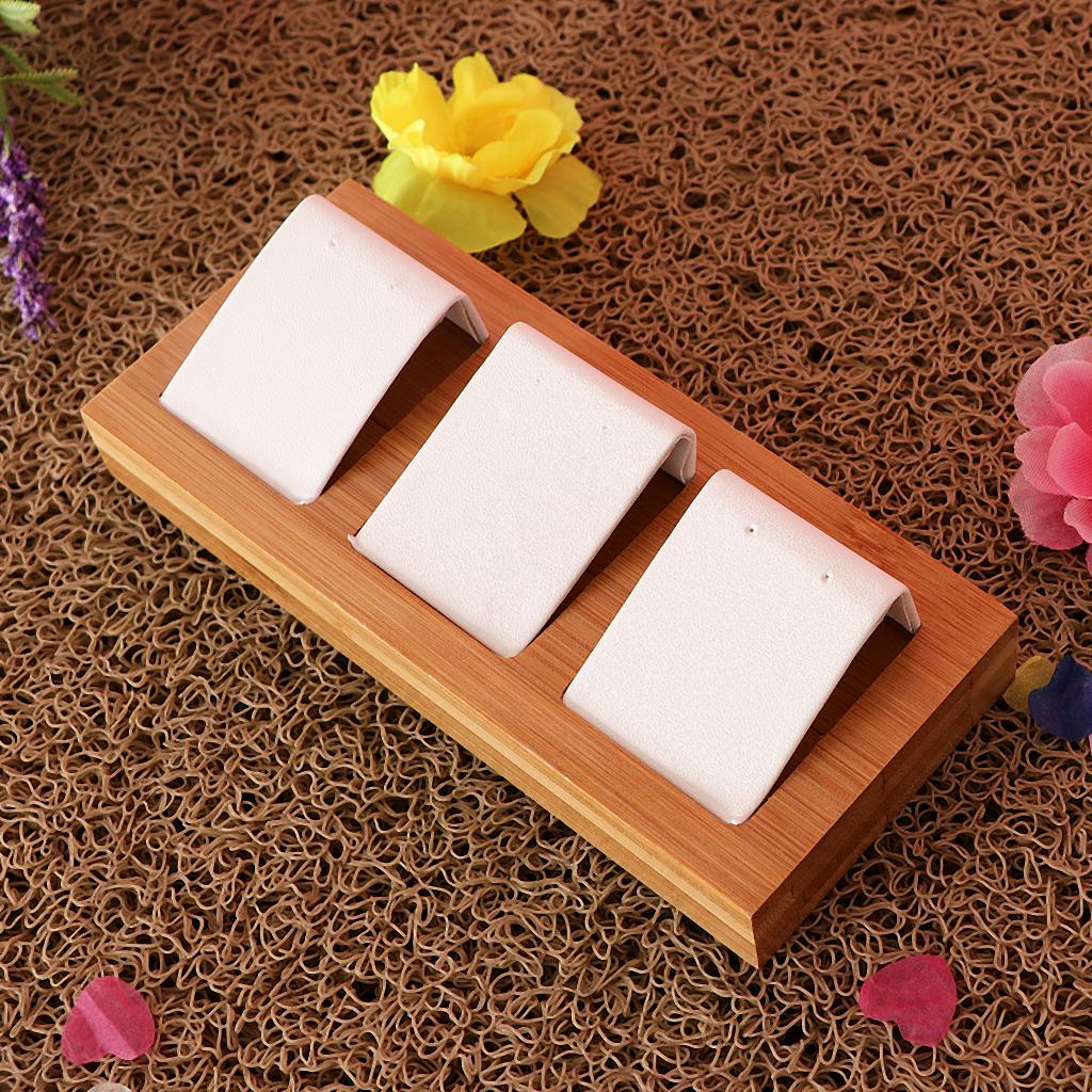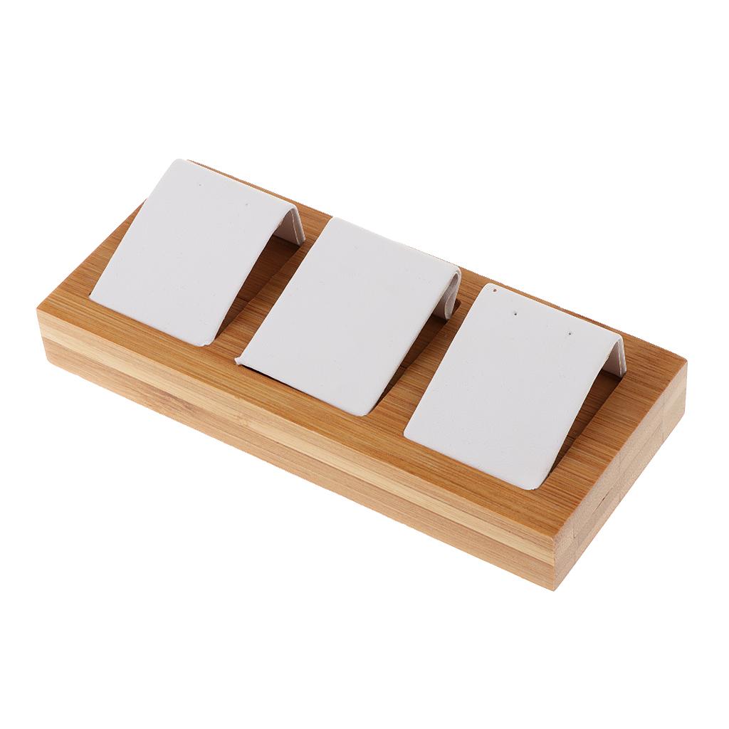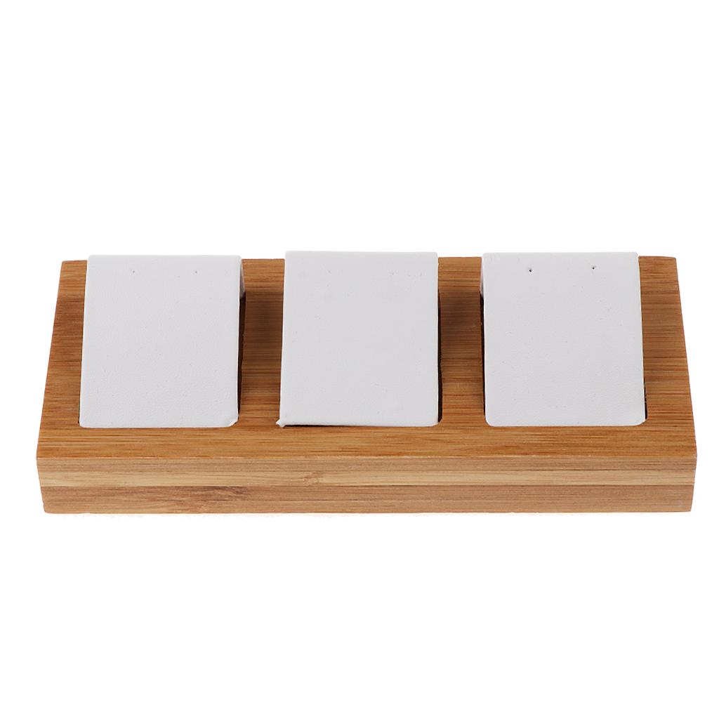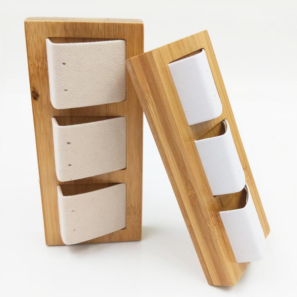 Natural Bamboo Wooden EarringsEar Studs Display Rack Organizer White 3 Slot