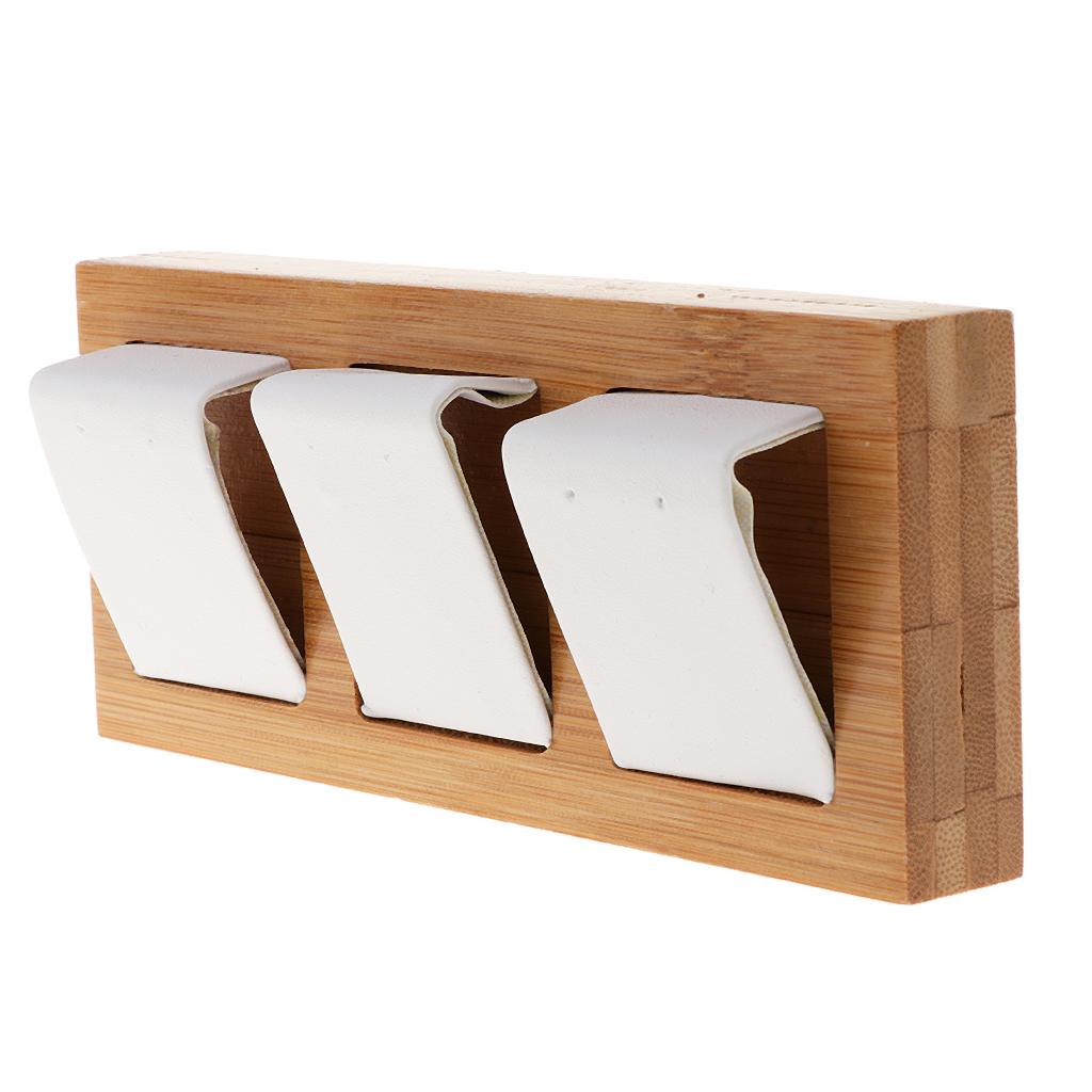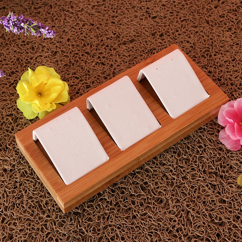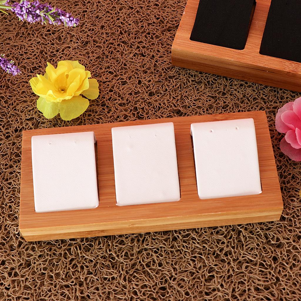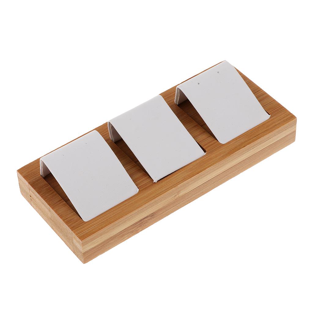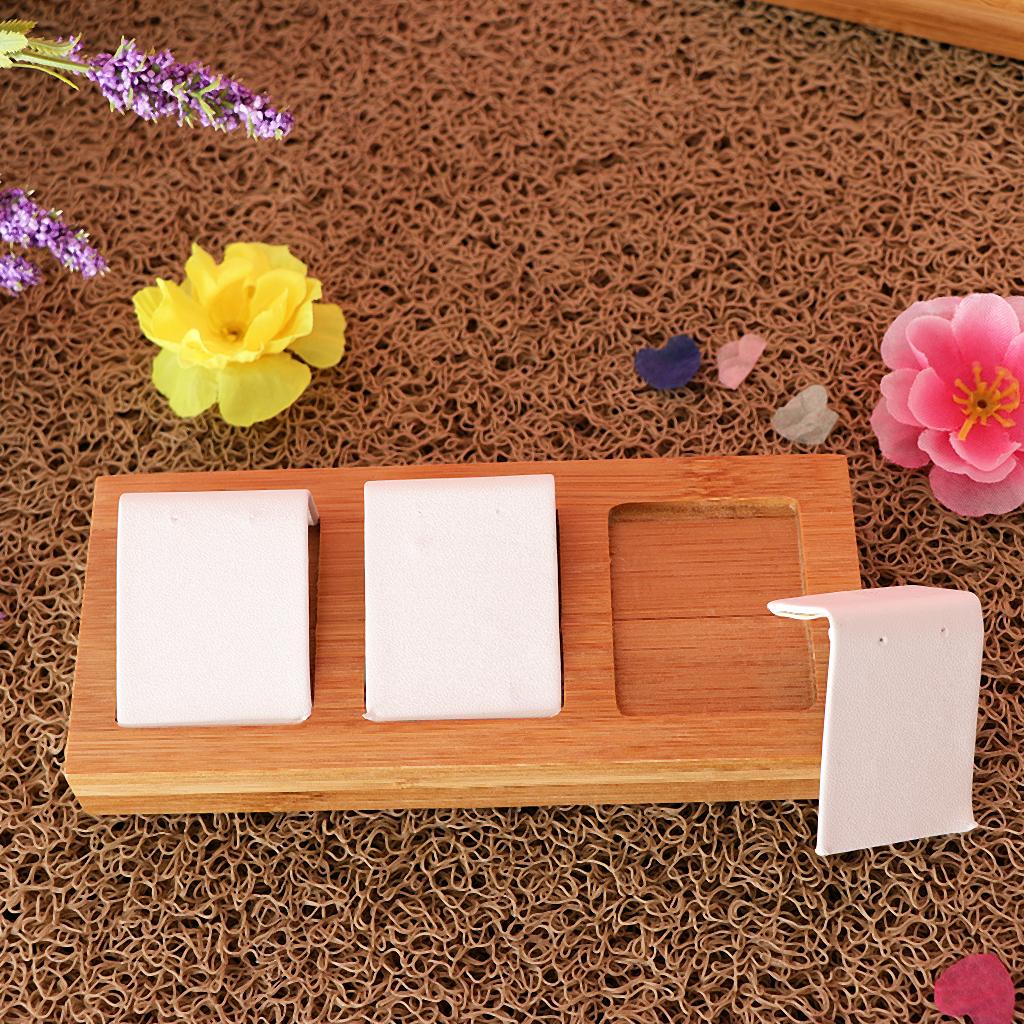 Natural Bamboo Wooden EarringsEar Studs Display Rack Organizer White 3 Slot