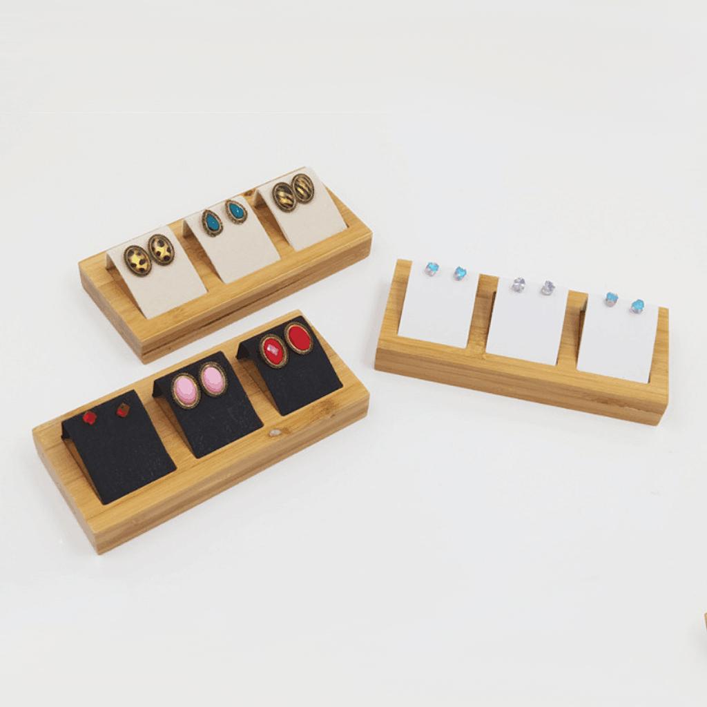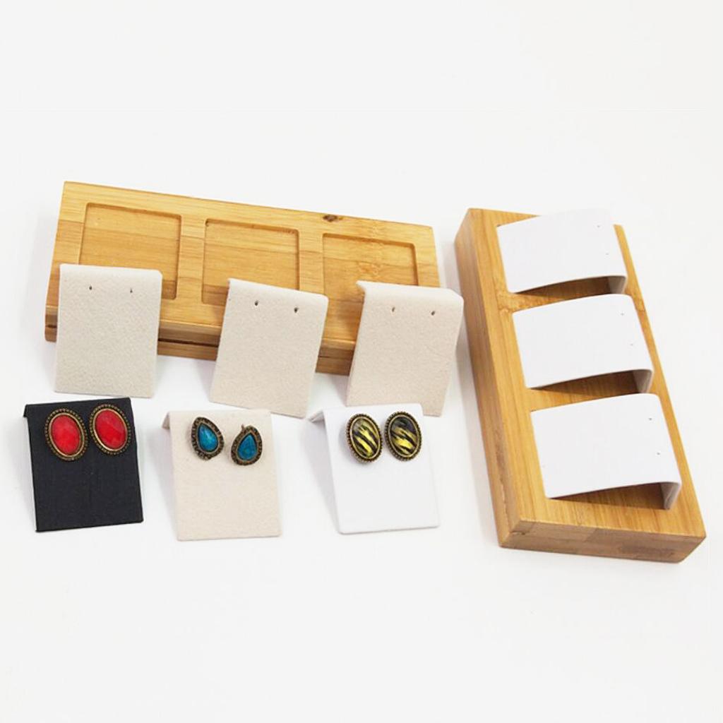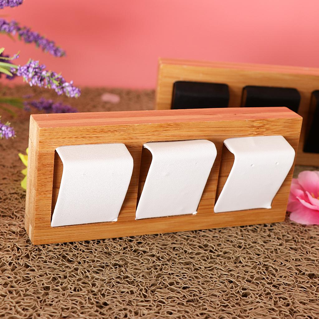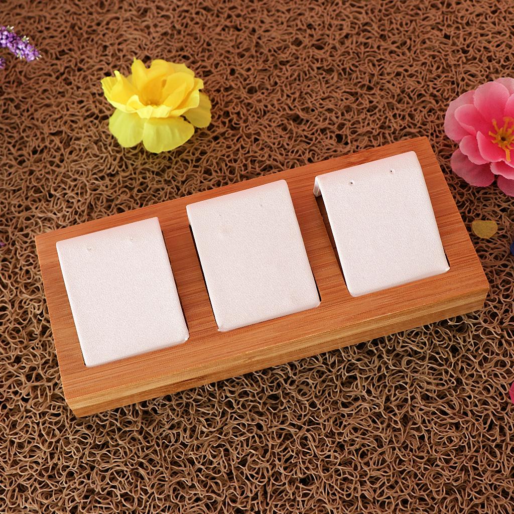 Natural Bamboo Wooden EarringsEar Studs Display Rack Organizer White 3 Slot