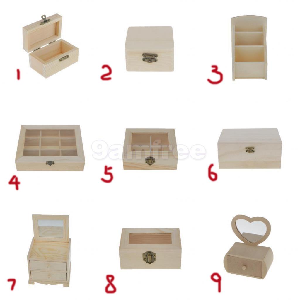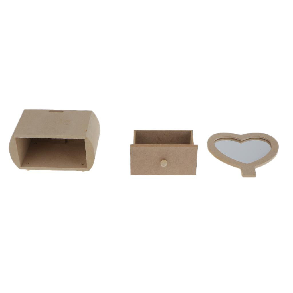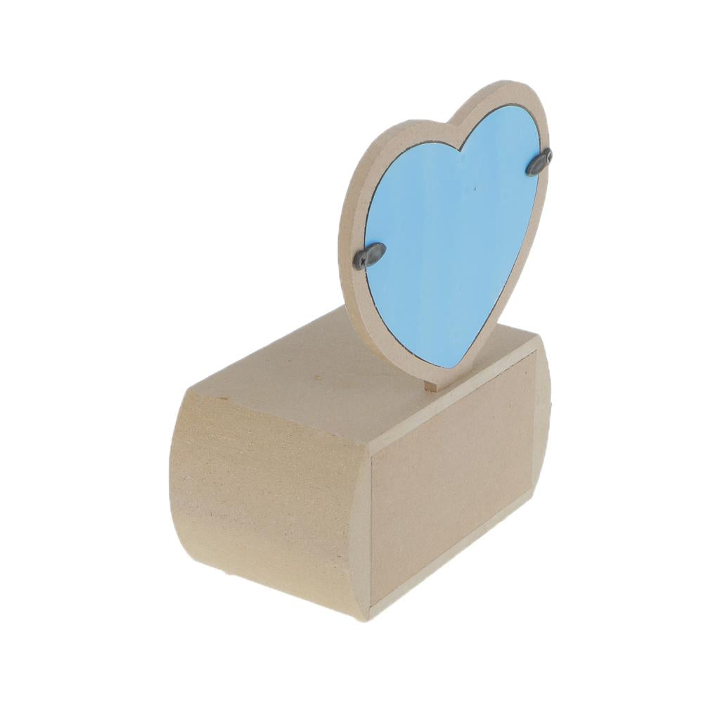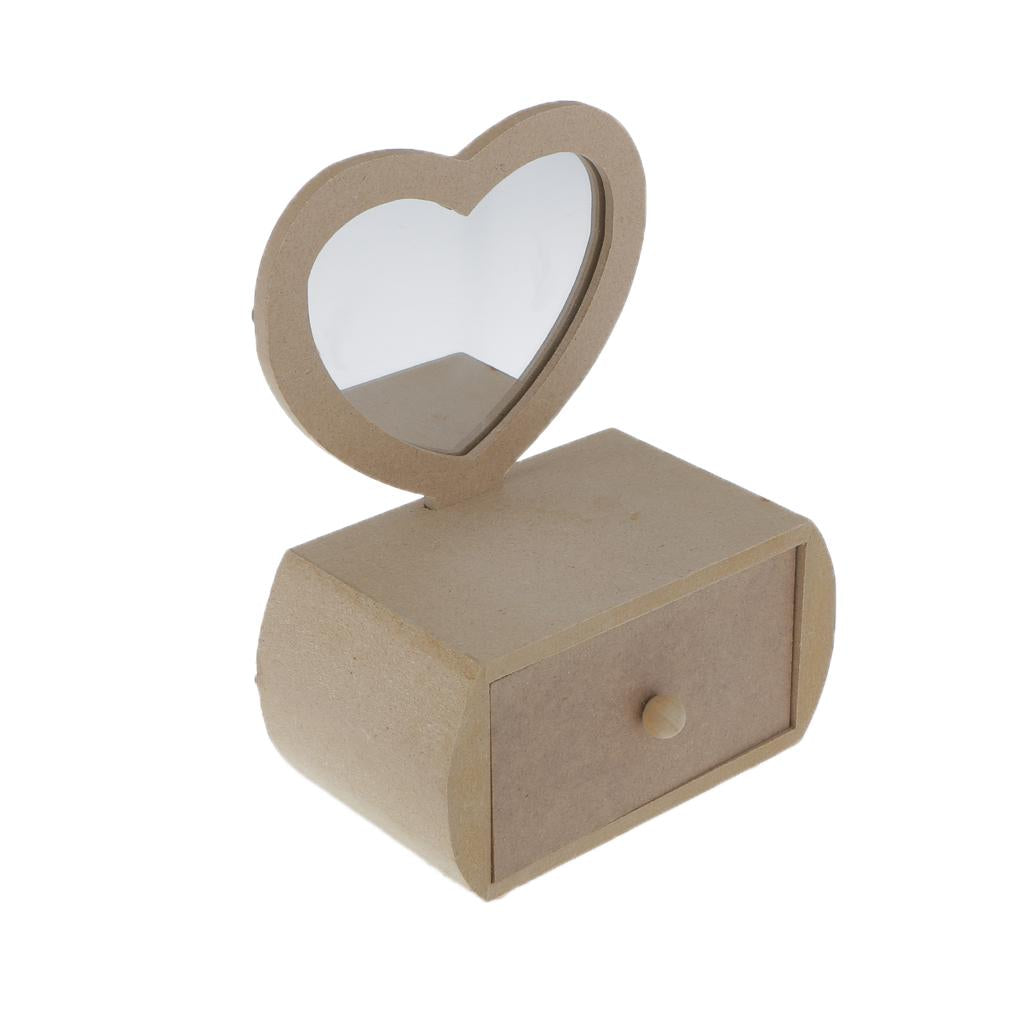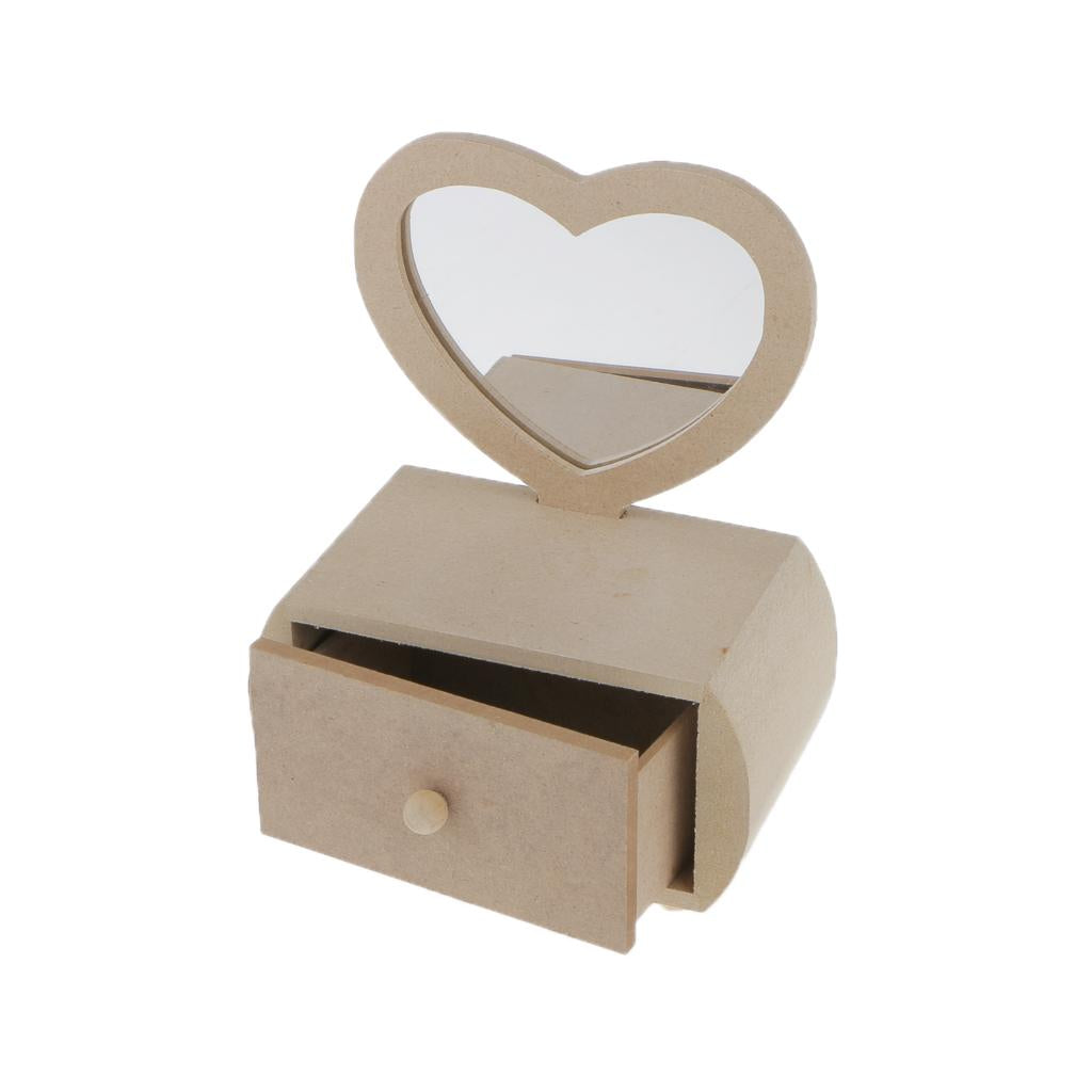 • Plain unfinished wooden jewellery case/ storage box with Heart Shape Glass Mirror