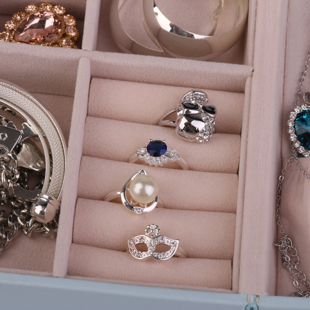 • Folding design with 5 separated storage areas and one little bag, velvet flocked
