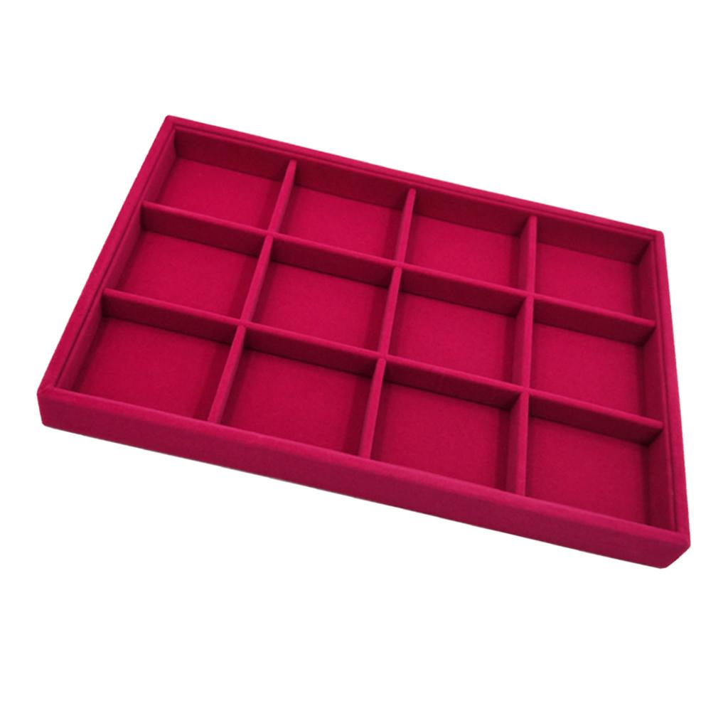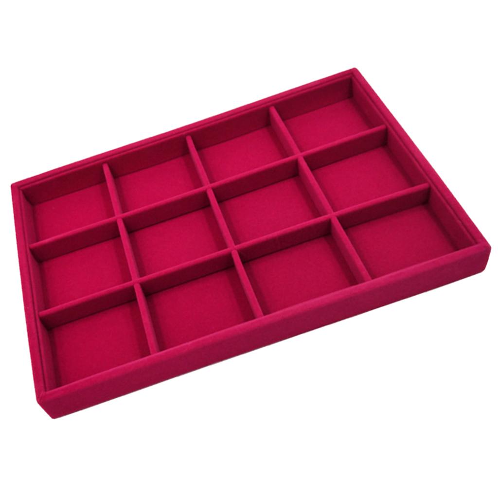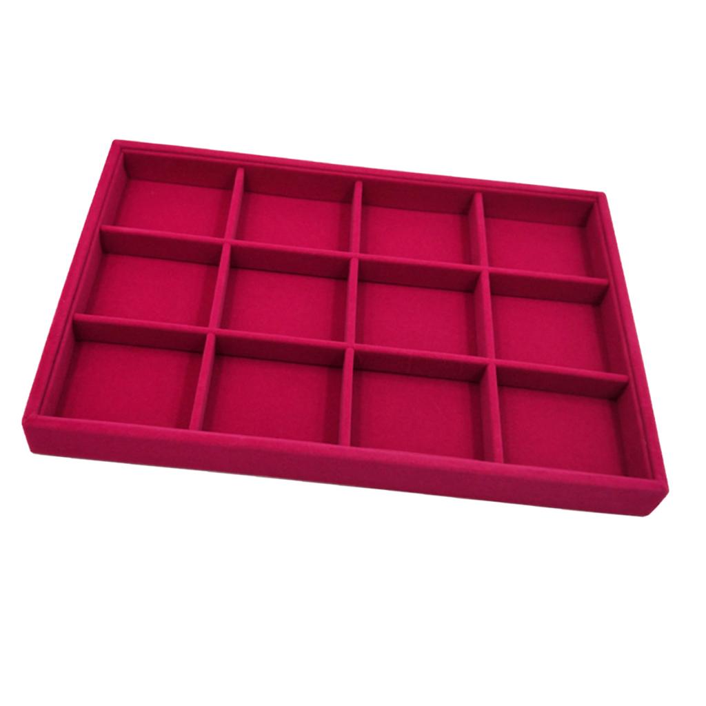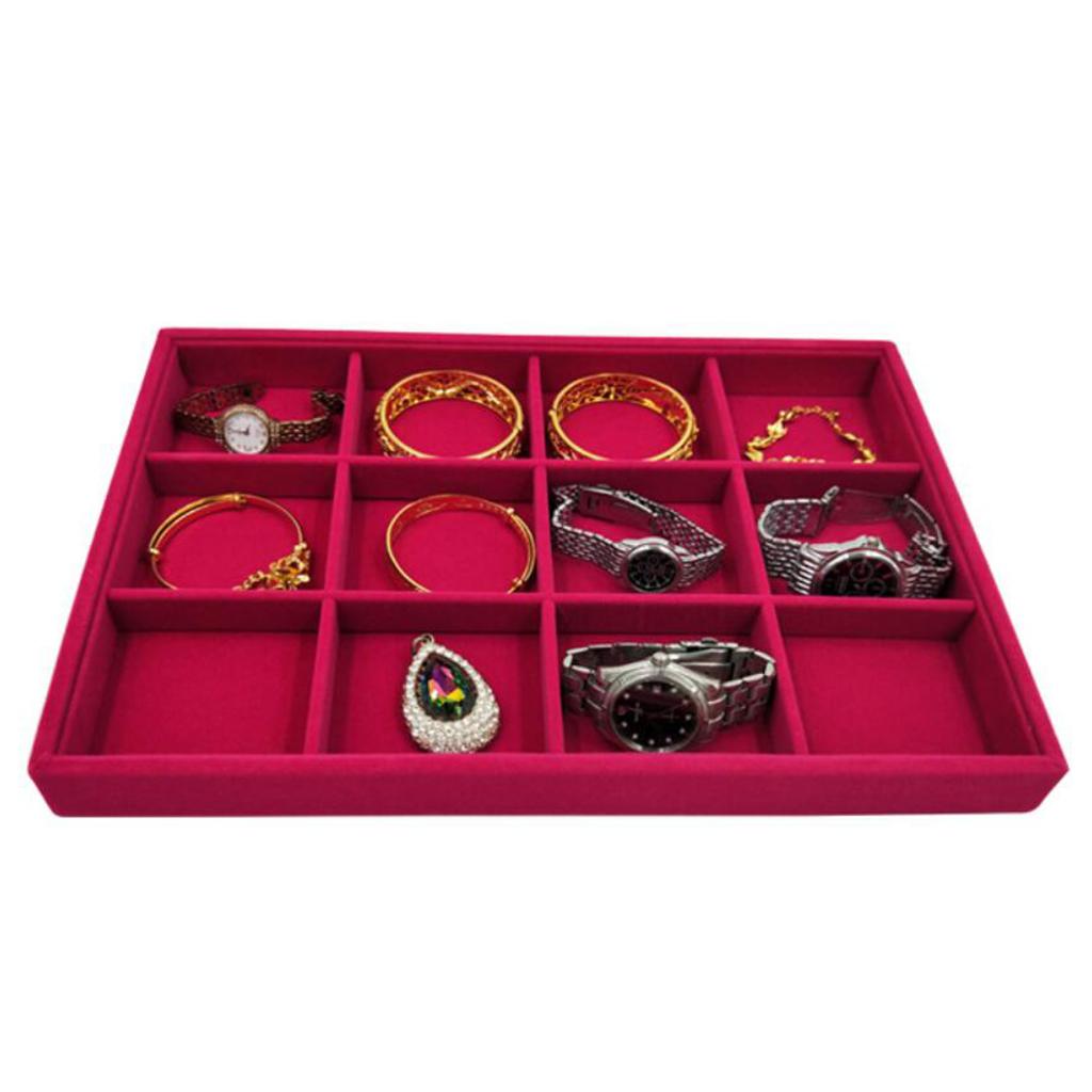 Rose Pink Velvet Jewelry Display Organizer Box Tray Showcase 12 Grids