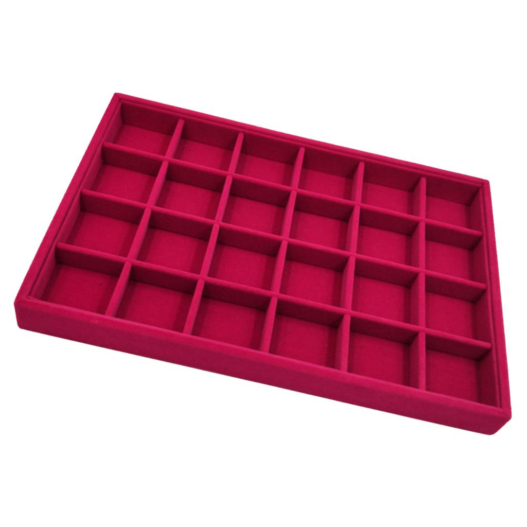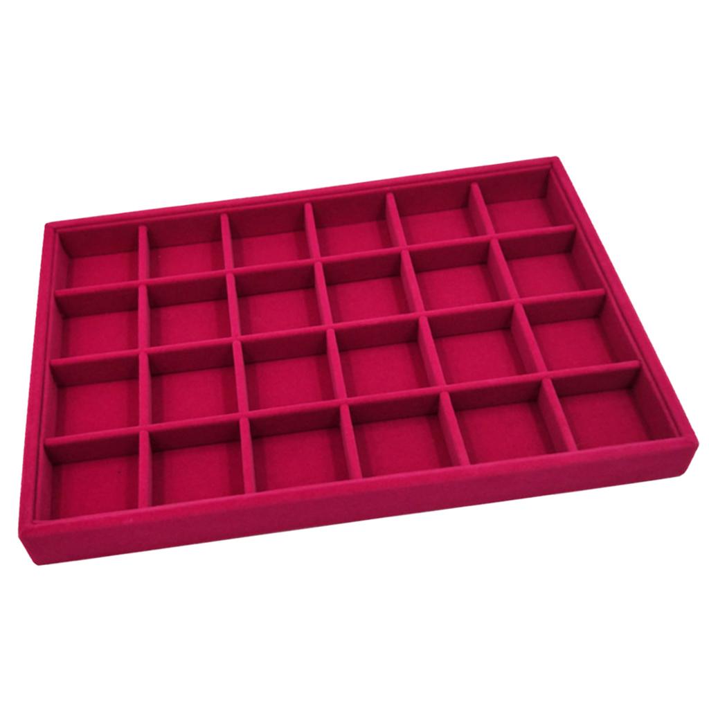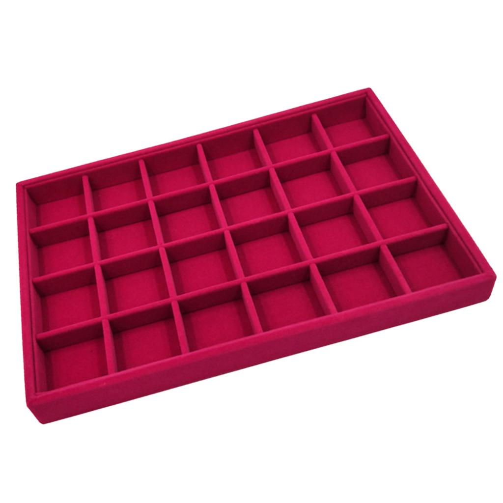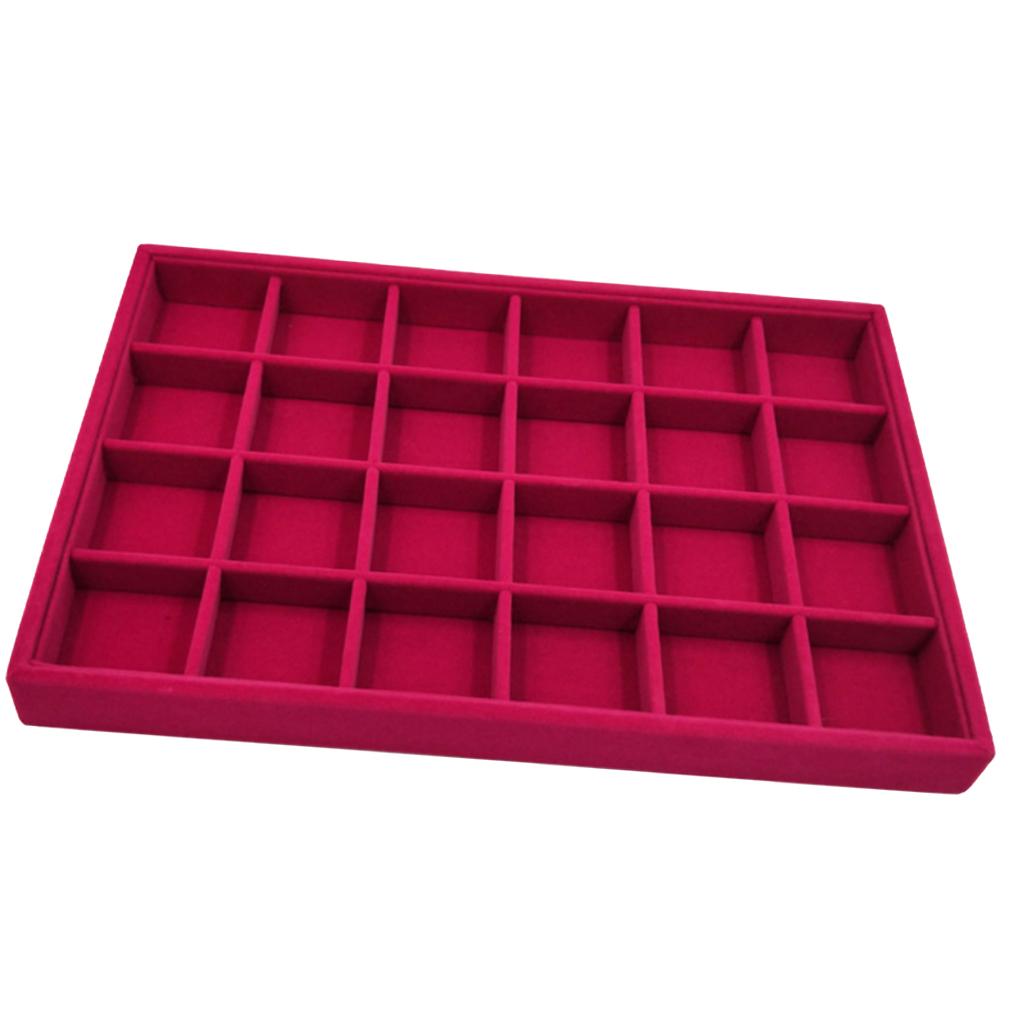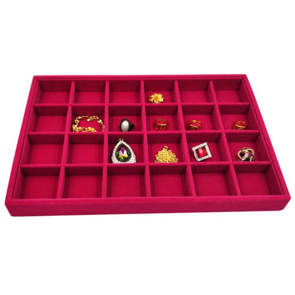 Rose Pink Velvet Jewelry Display Organizer Box Tray Showcase 24 Grids
