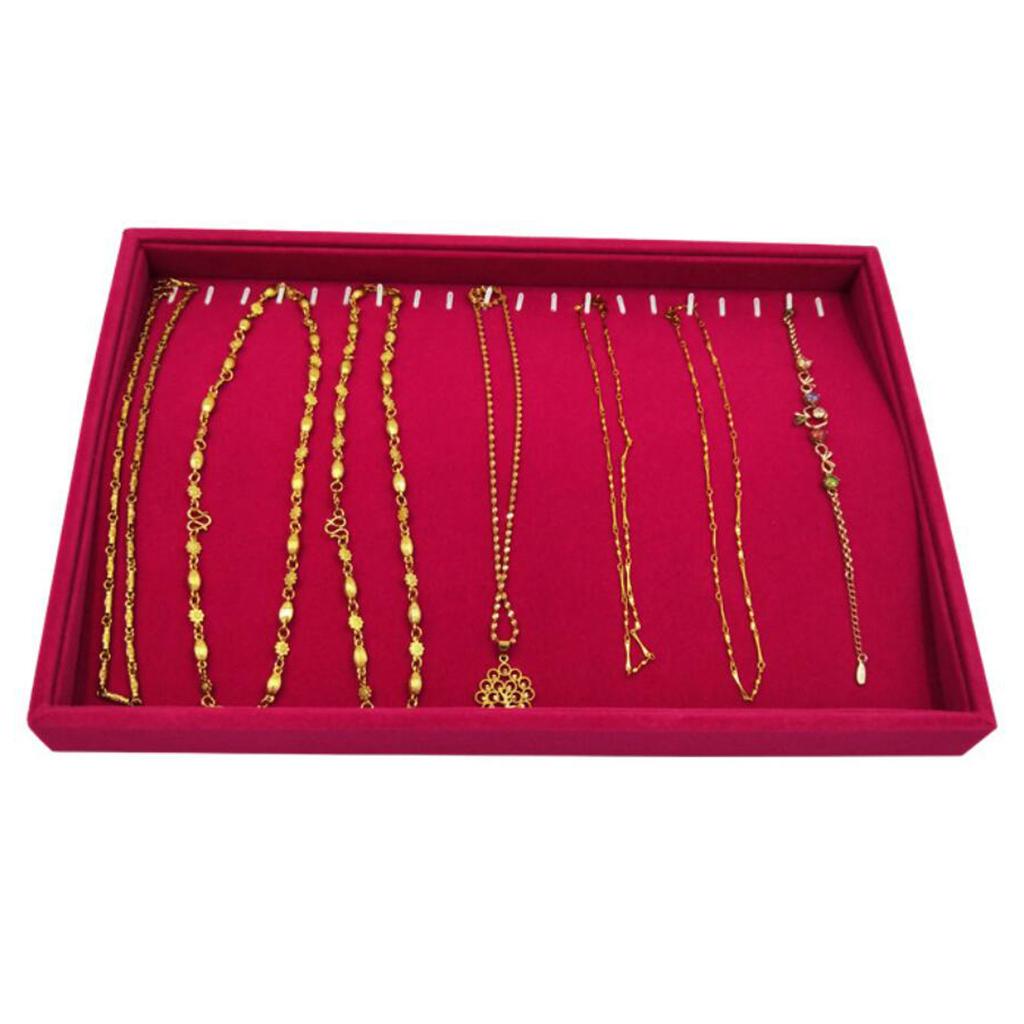 Rose Pink Velvet Jewelry Display Organizer Box Tray Showcase Necklace Tray