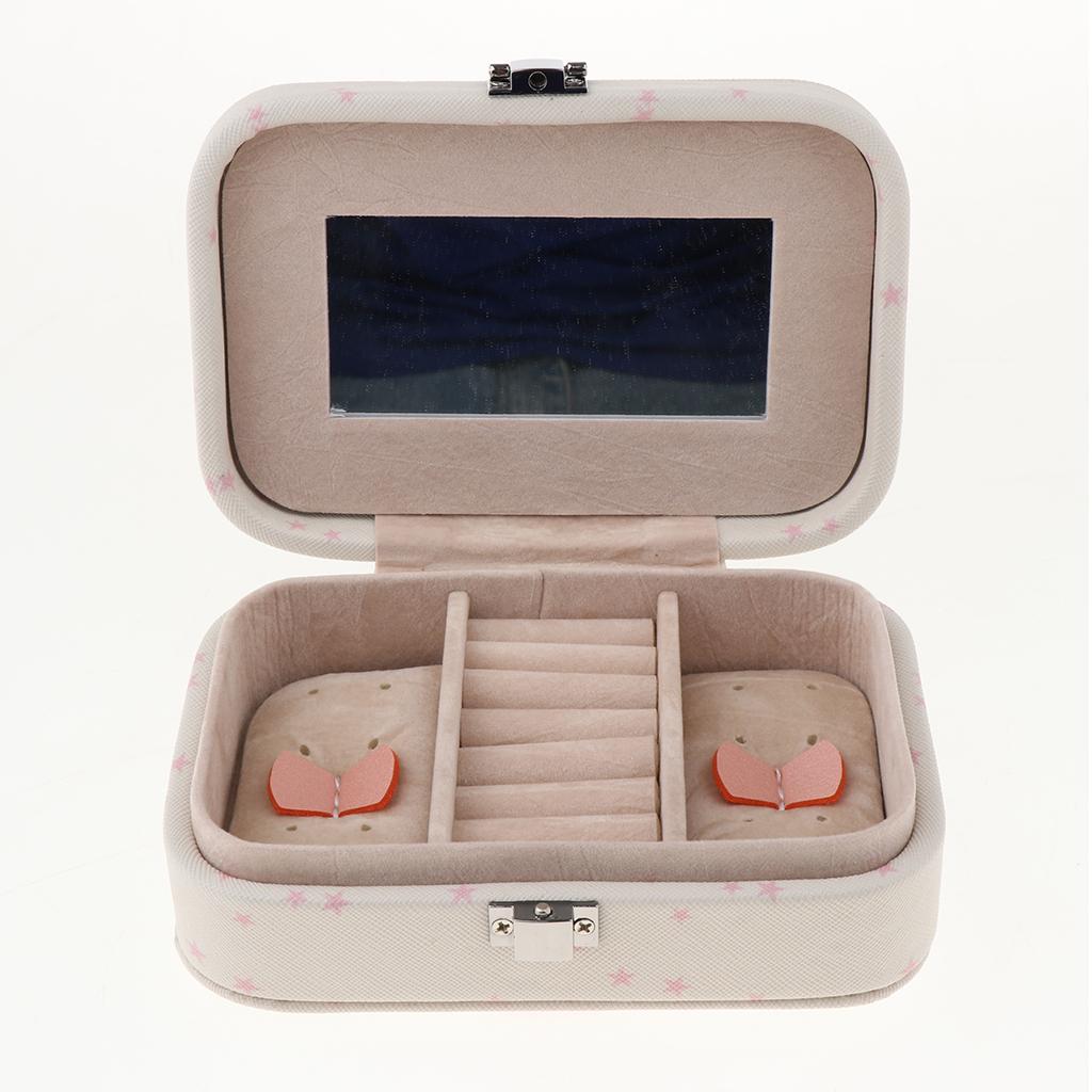 High quality jewely storage box unit is crafted of soft artifical leather and a velvet lined interior,Small Mirror inside