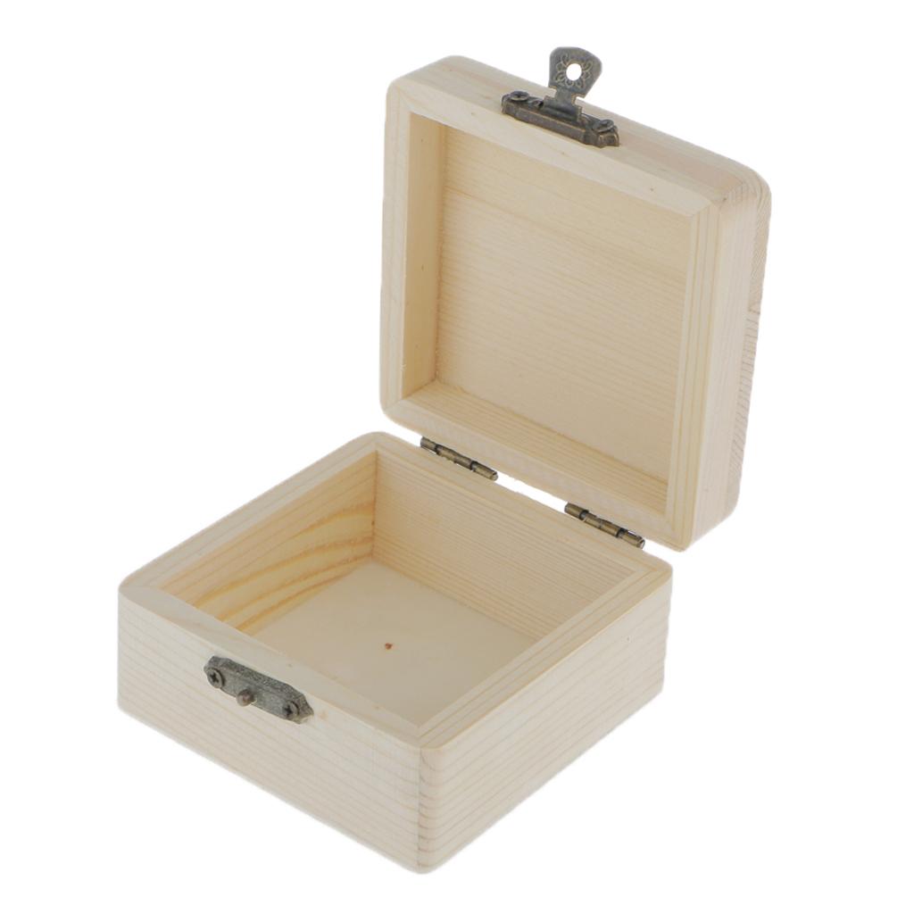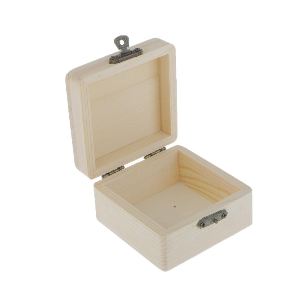 Unfinished Unpainted Plain Wooden Square Jewellery Box Keepsake Gift