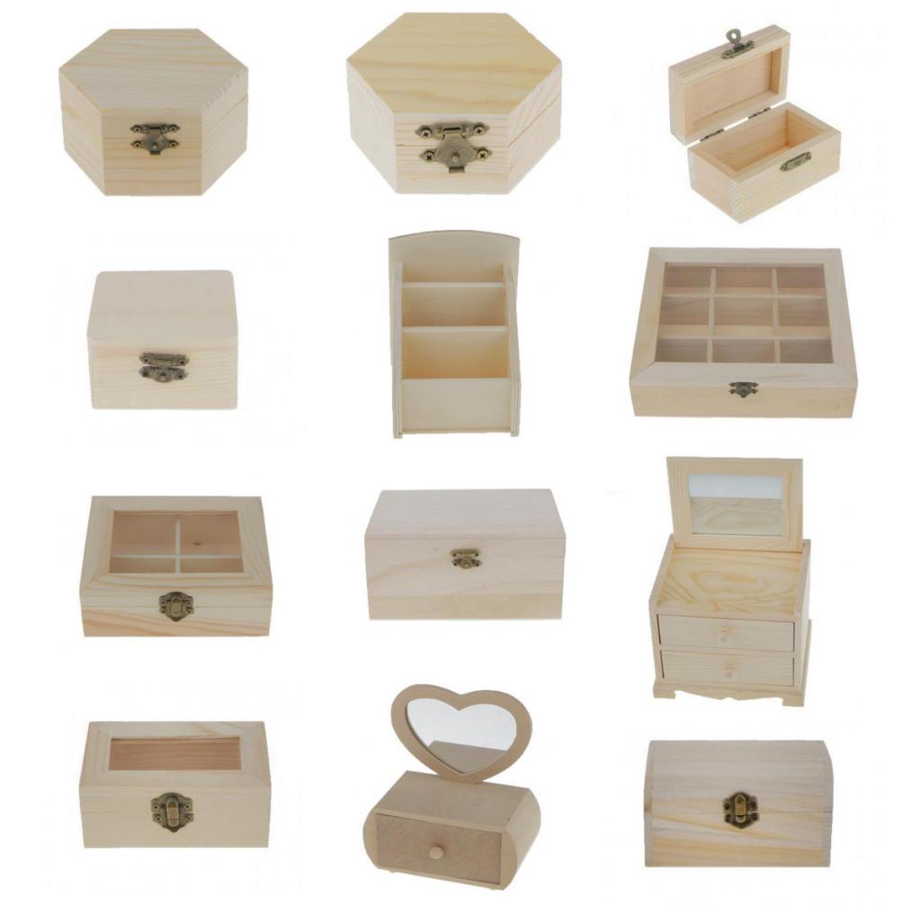 Plain unfinished wooden jewellery case/ storage box with transparent glass door