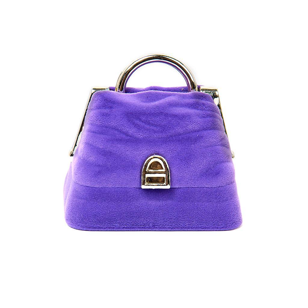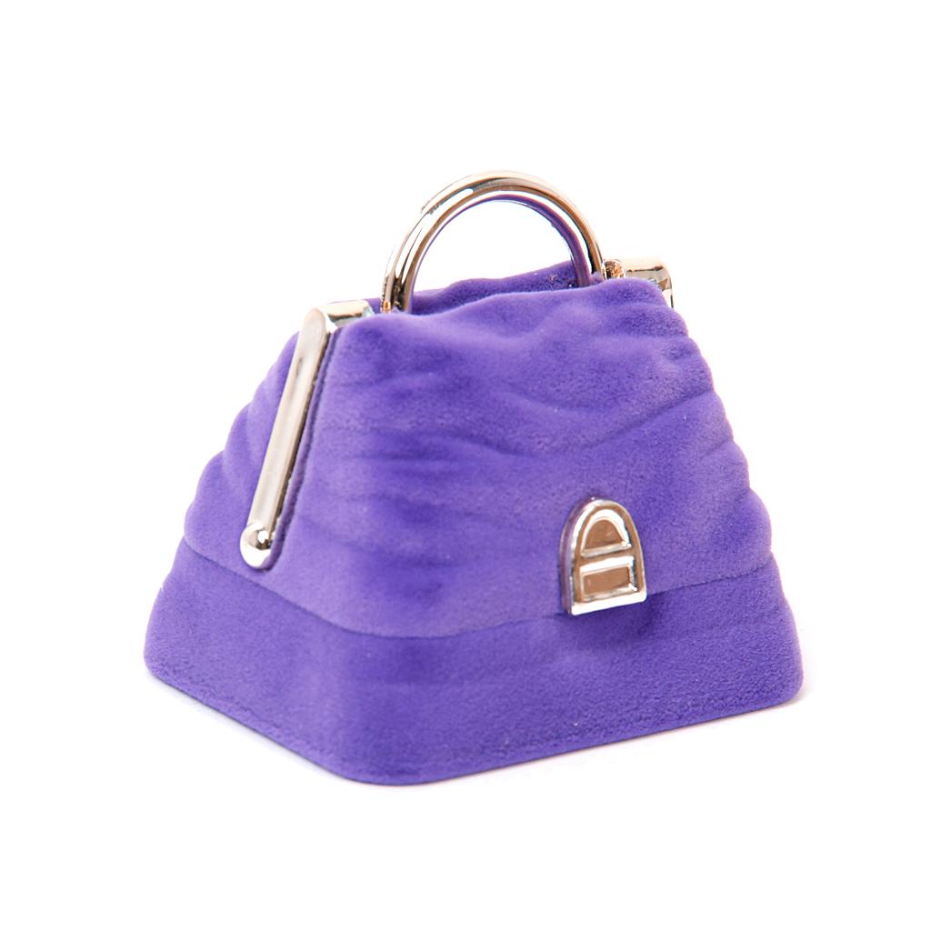 Velvet Ring Jewelry Display Storage Box Gift Case Holder Organizer - Purple Handbag Shape