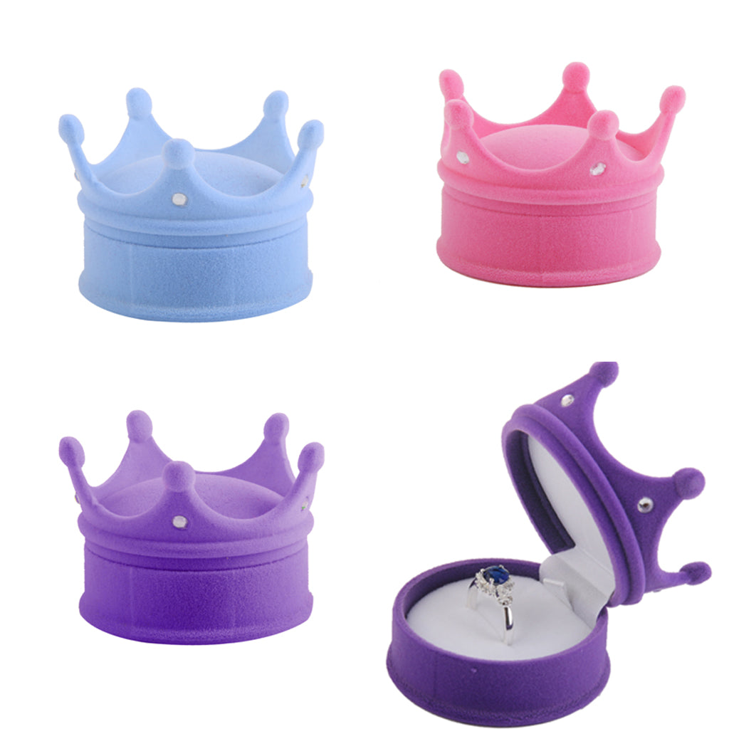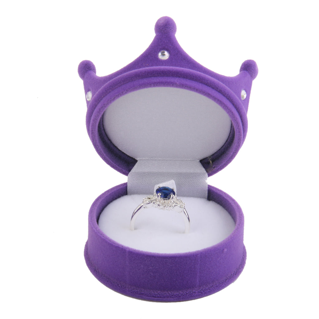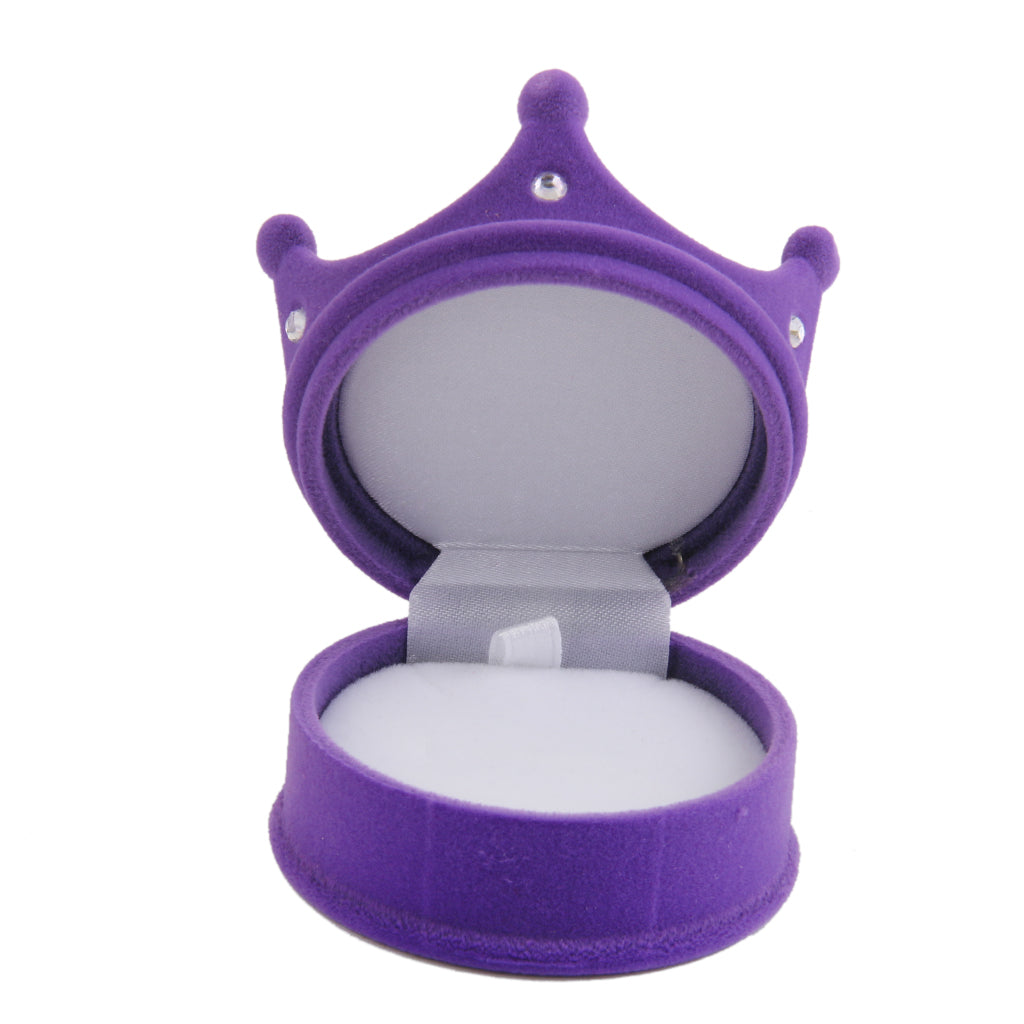 Velvet Ring Jewelry Display Storage Box Gift Case Organizer Purple Crown S