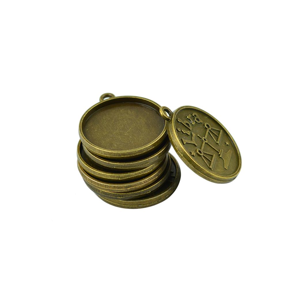 This blank pendant is feartured a Round Plate shaped bezel setting, where you can perform an great DIY peoject, simplely glue on 25 mm or 1 inch resin, gemstone, photo, cameo or something else you like, and Zodiac Constellation engraved on the other side, make it a different pendant for you jewelry;